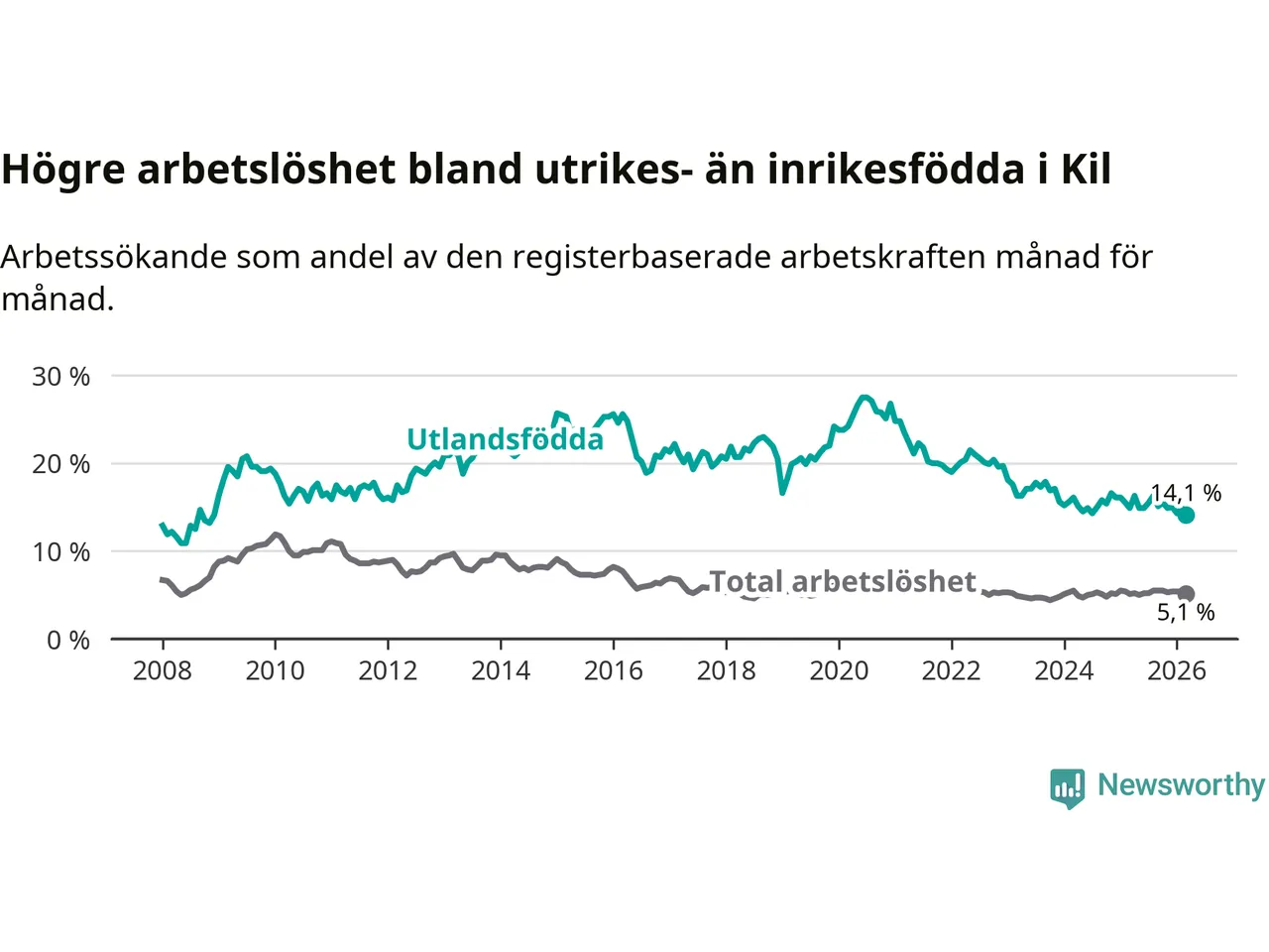 Läs mer om arbetslösheten bland utlandsfödda längre ner i den här texten.