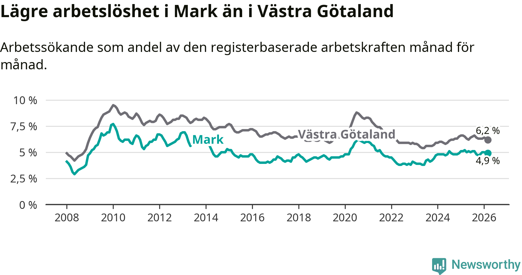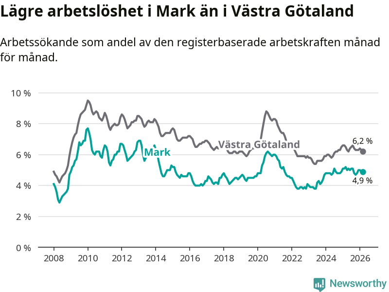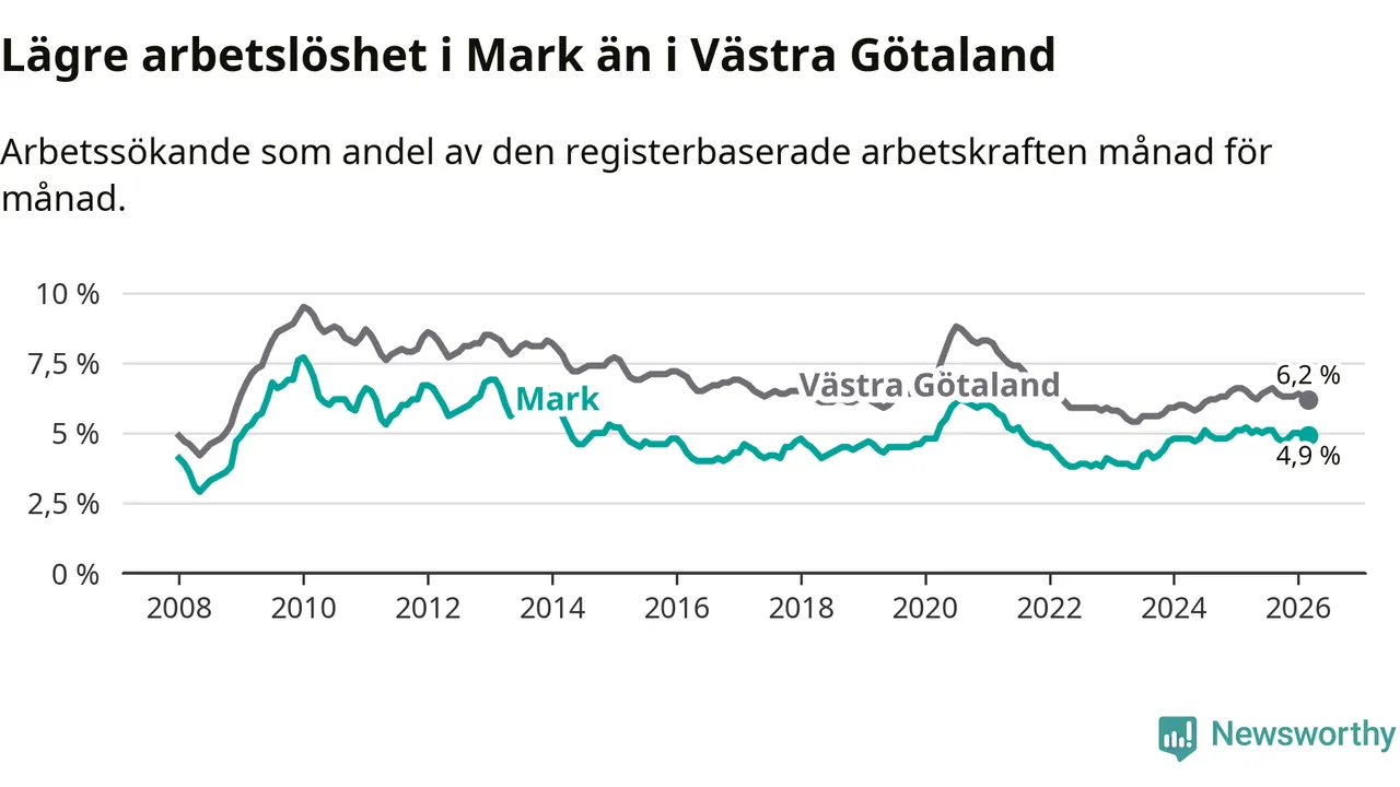 Graf: Arbetslöshet i Marks kommun och Västra Götalands län