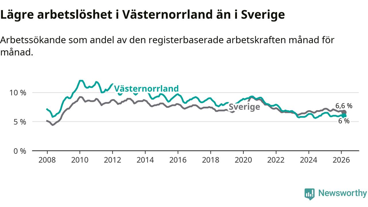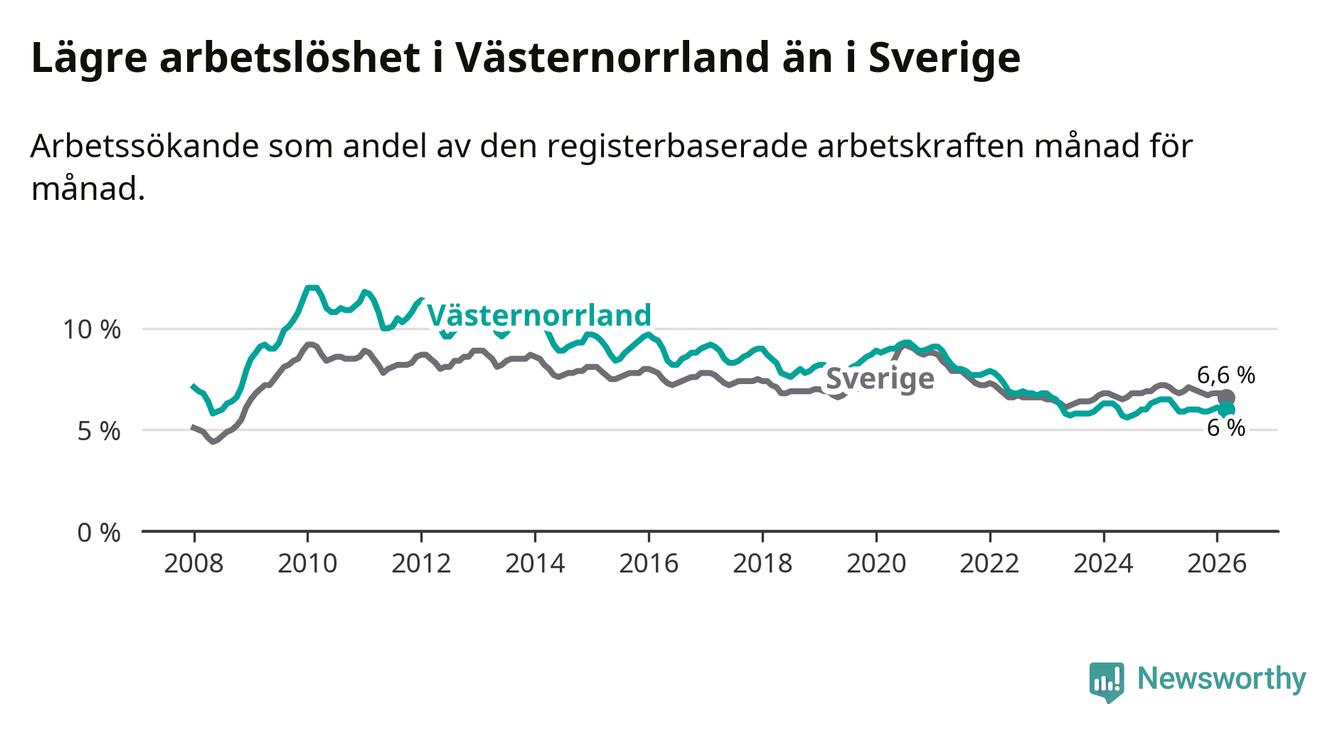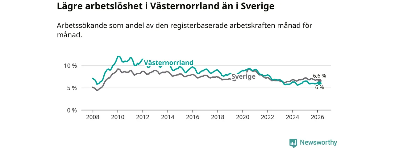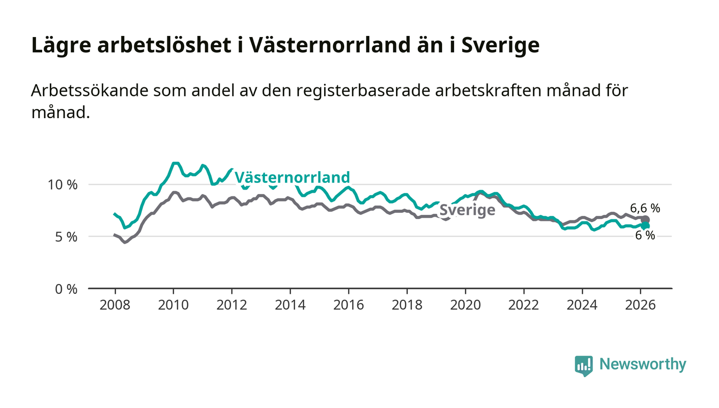 Graf: Arbetslöshet i Västernorrlands län och Sverige