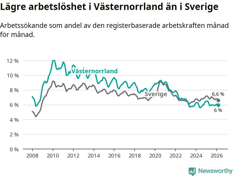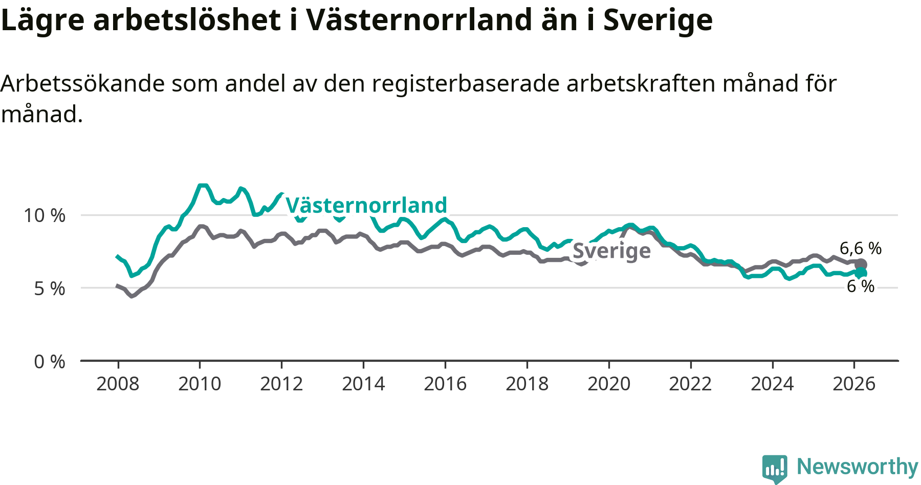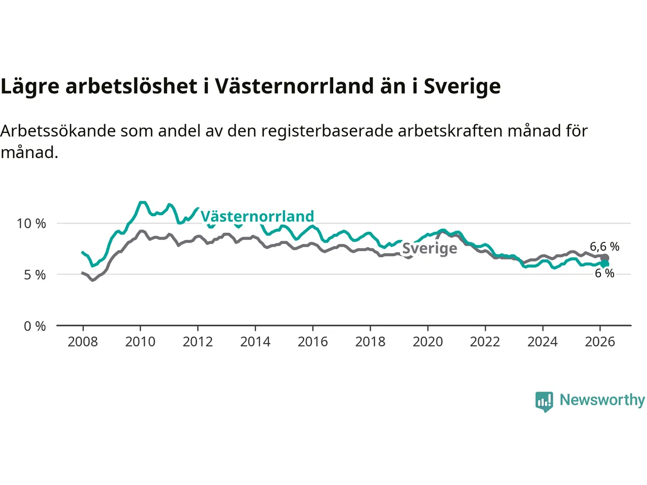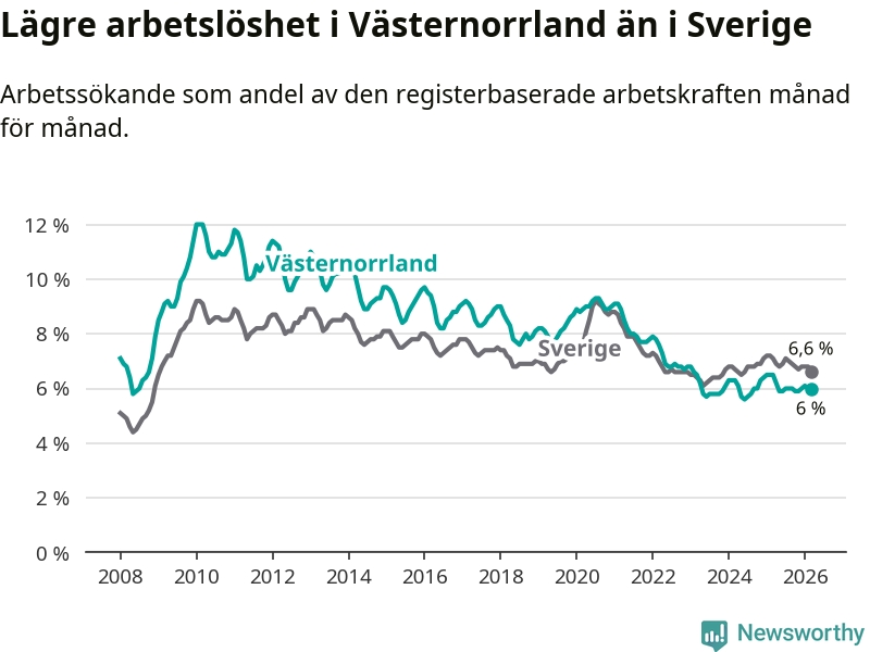 Graf: Arbetslöshet i Västernorrlands län och Sverige