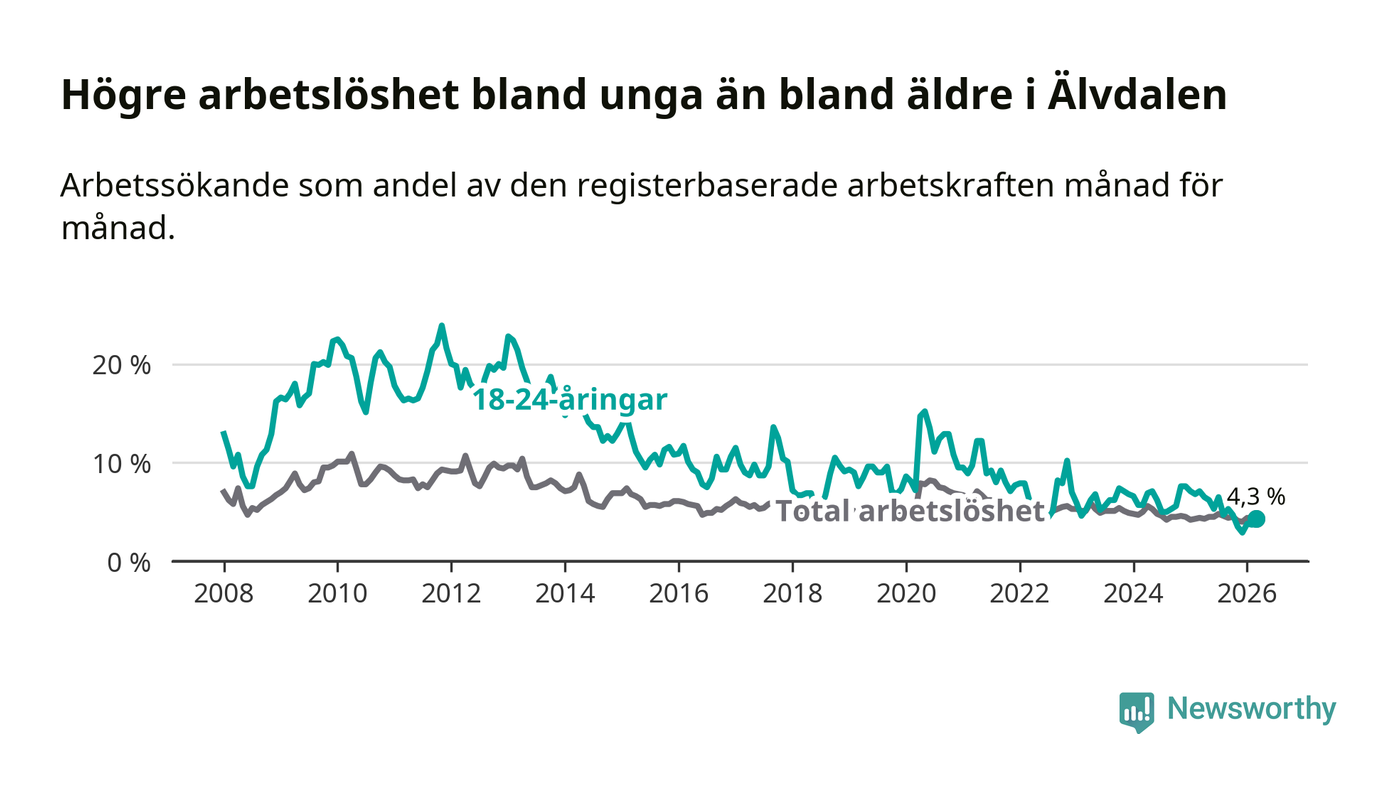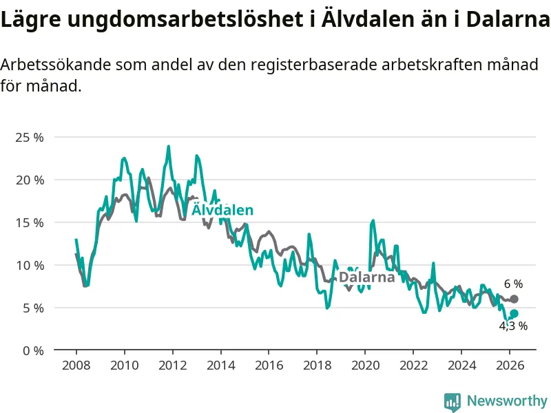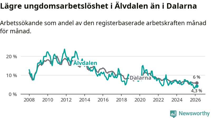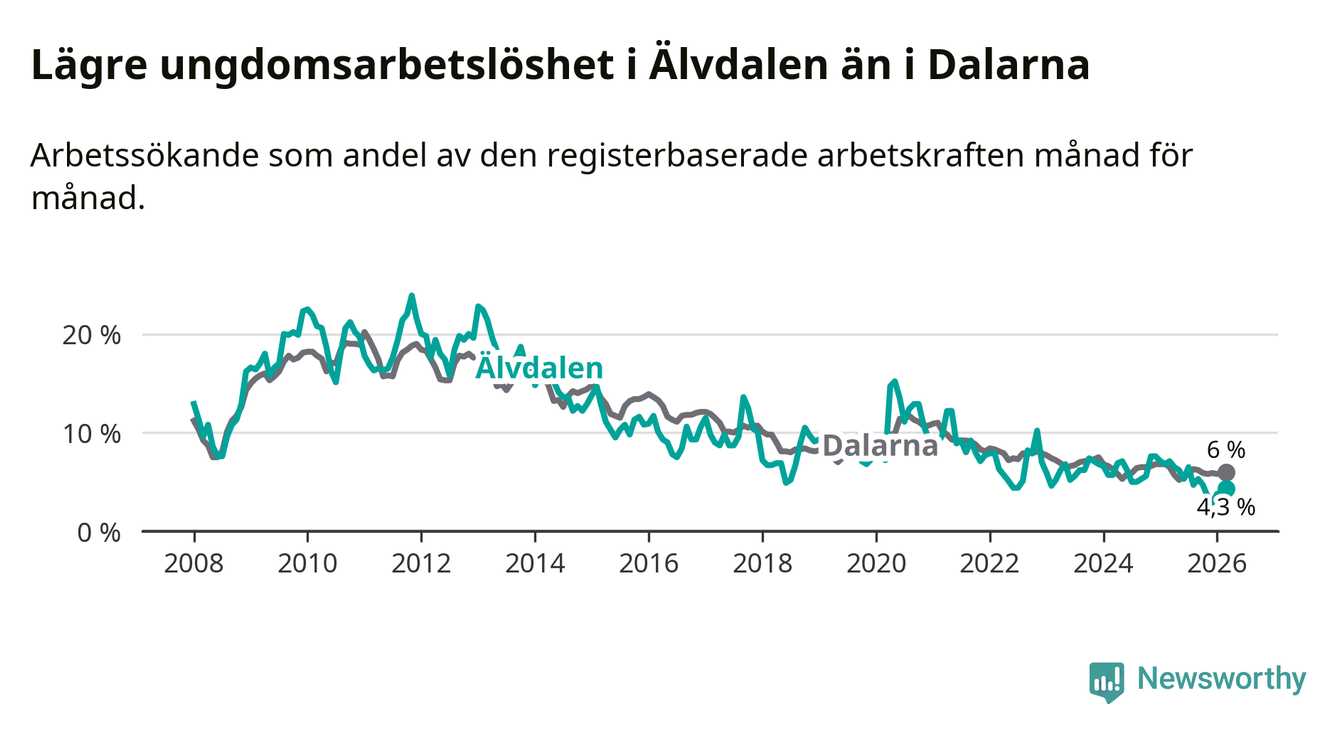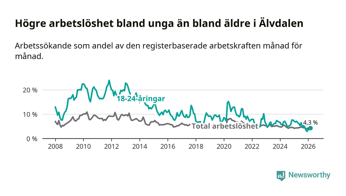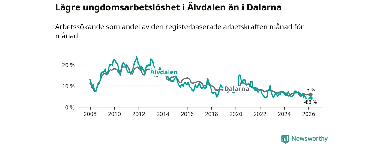 Graf: Arbetslöshet bland unga i Älvdalens kommun och Dalarnas län