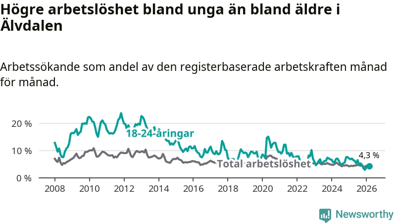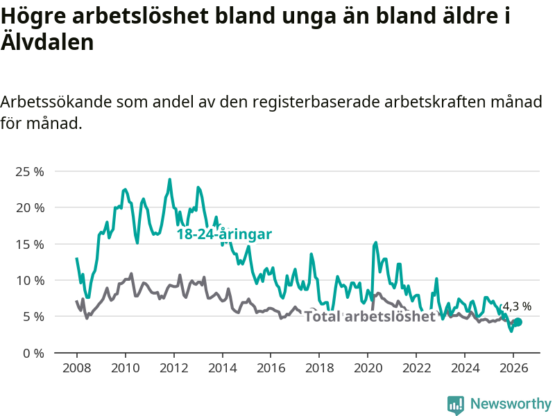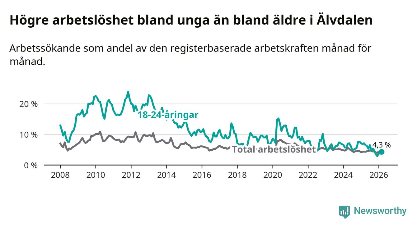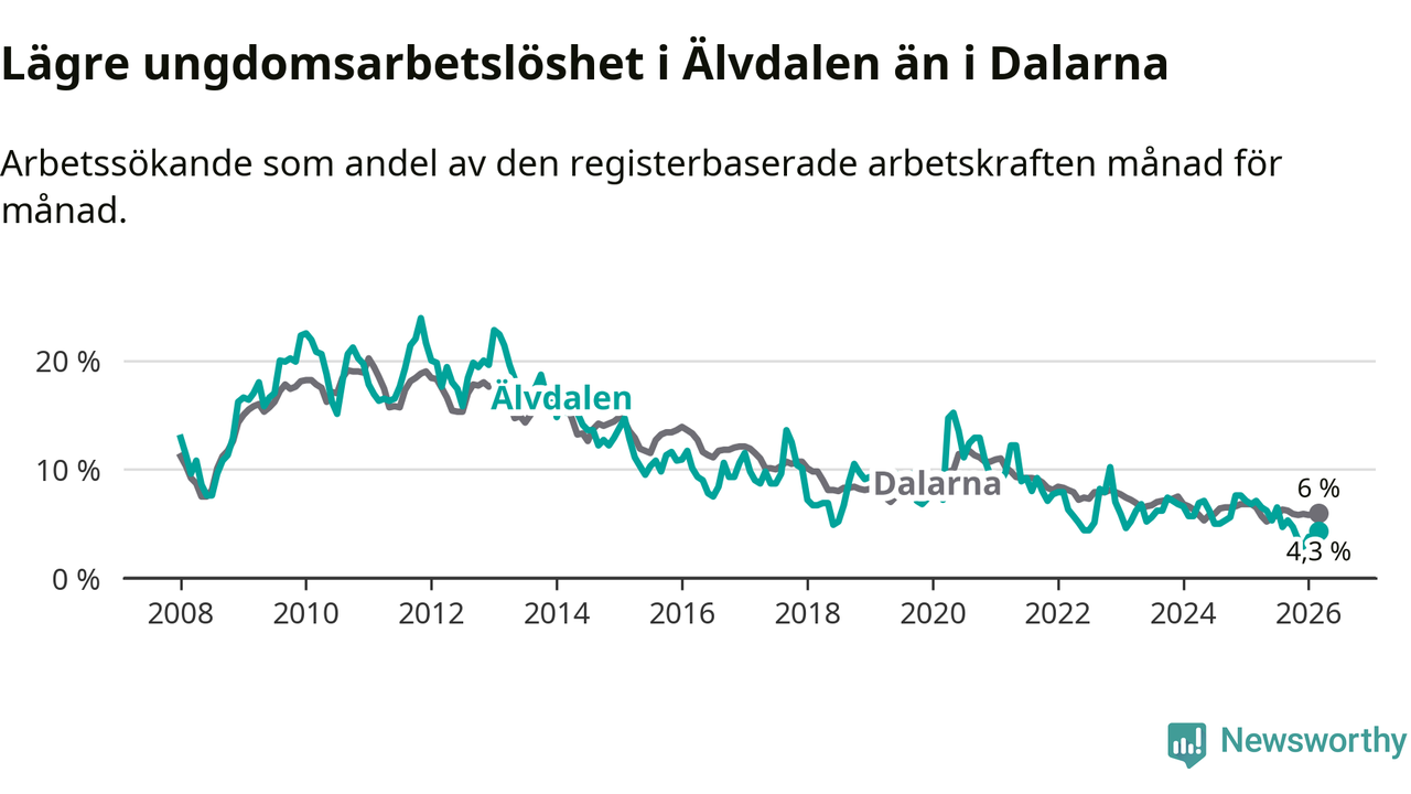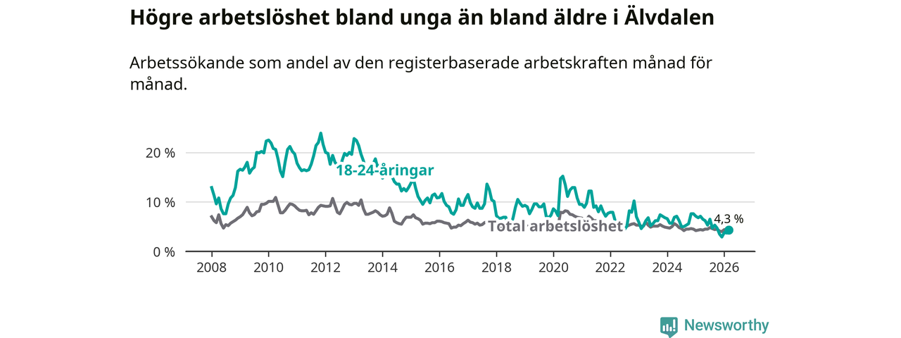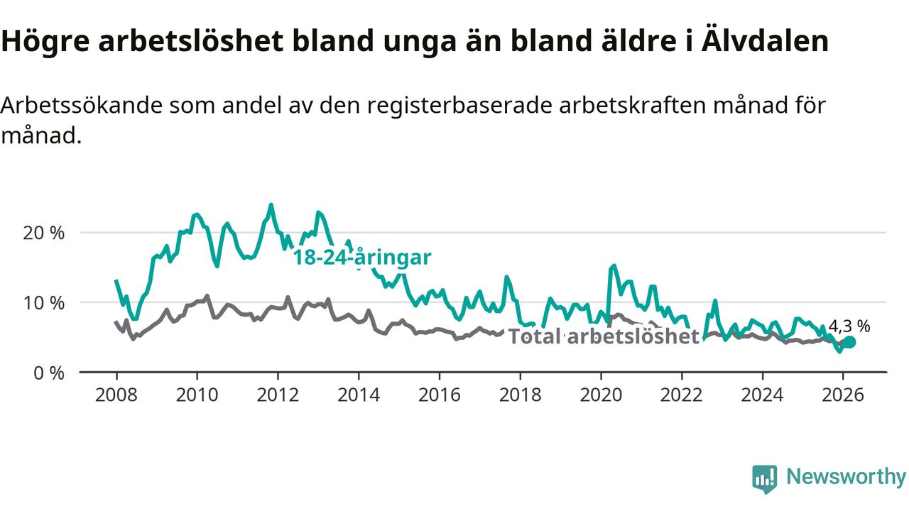 Graf: Arbetslöshet bland unga i Älvdalens kommun och Dalarnas län