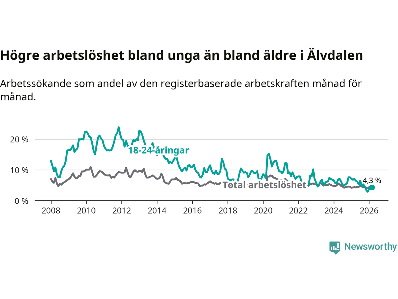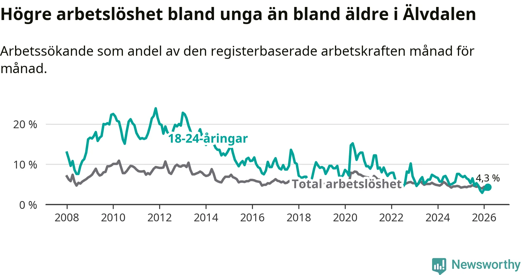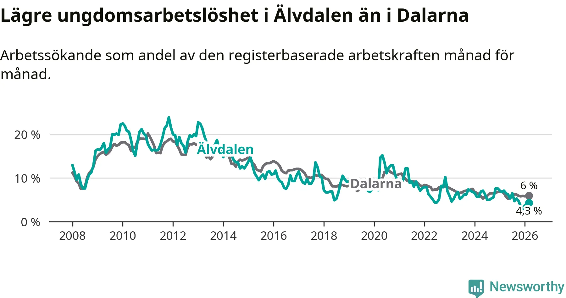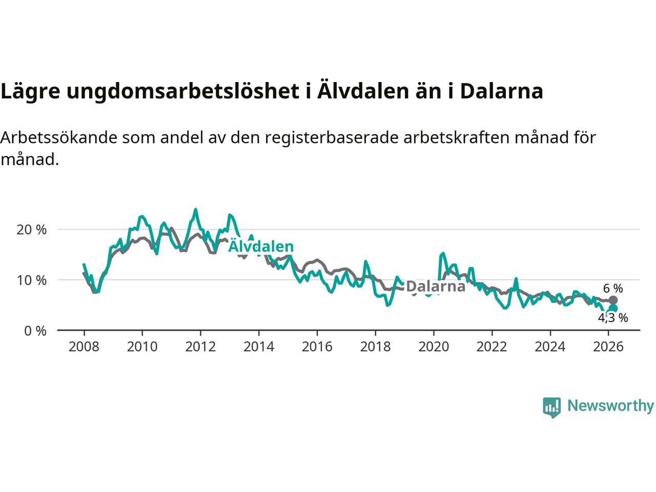 Graf: Arbetslöshet bland unga i Älvdalens kommun och Dalarnas län