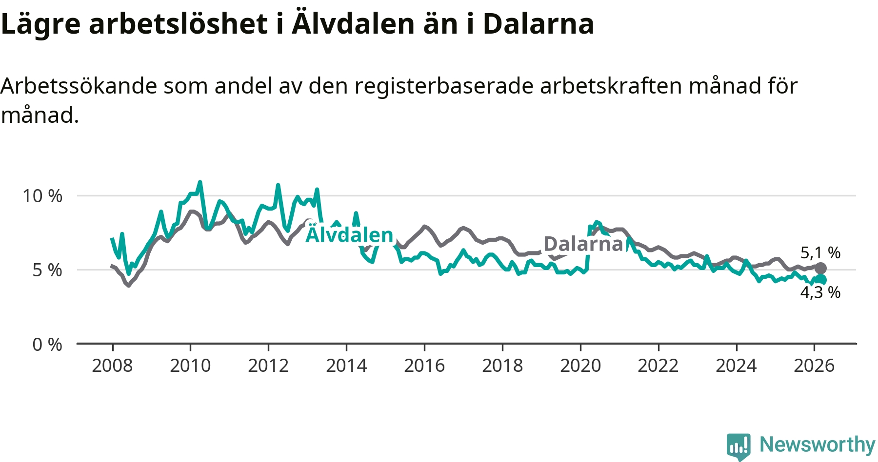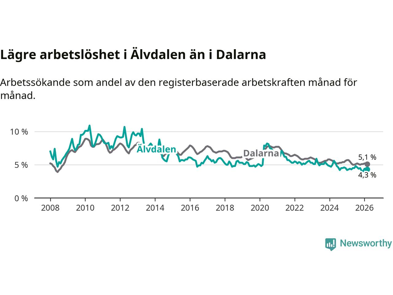 Graf: Arbetslöshet i Älvdalens kommun och Dalarnas län