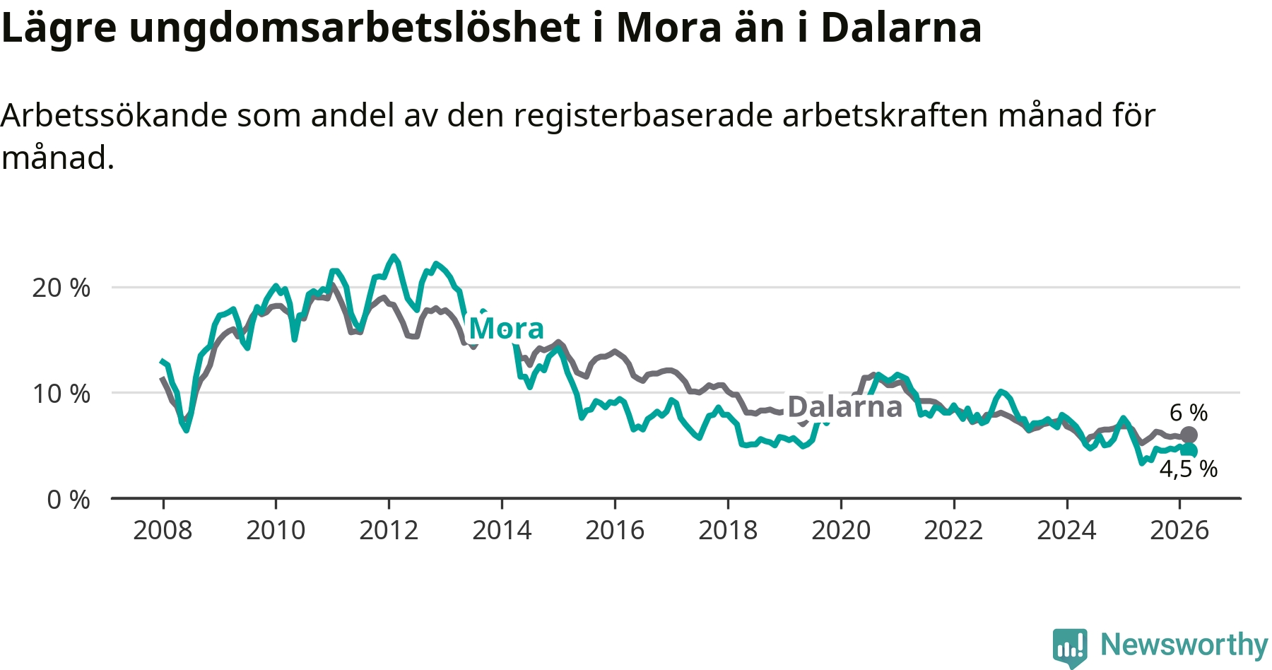 Graf: Arbetslöshet bland unga i Mora kommun och Dalarnas län