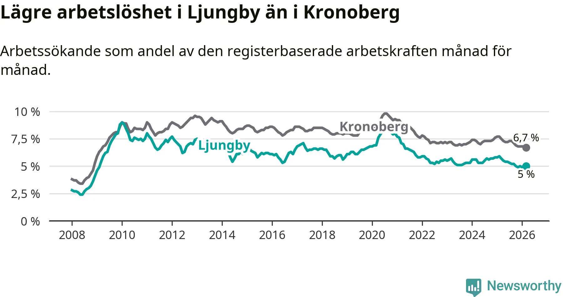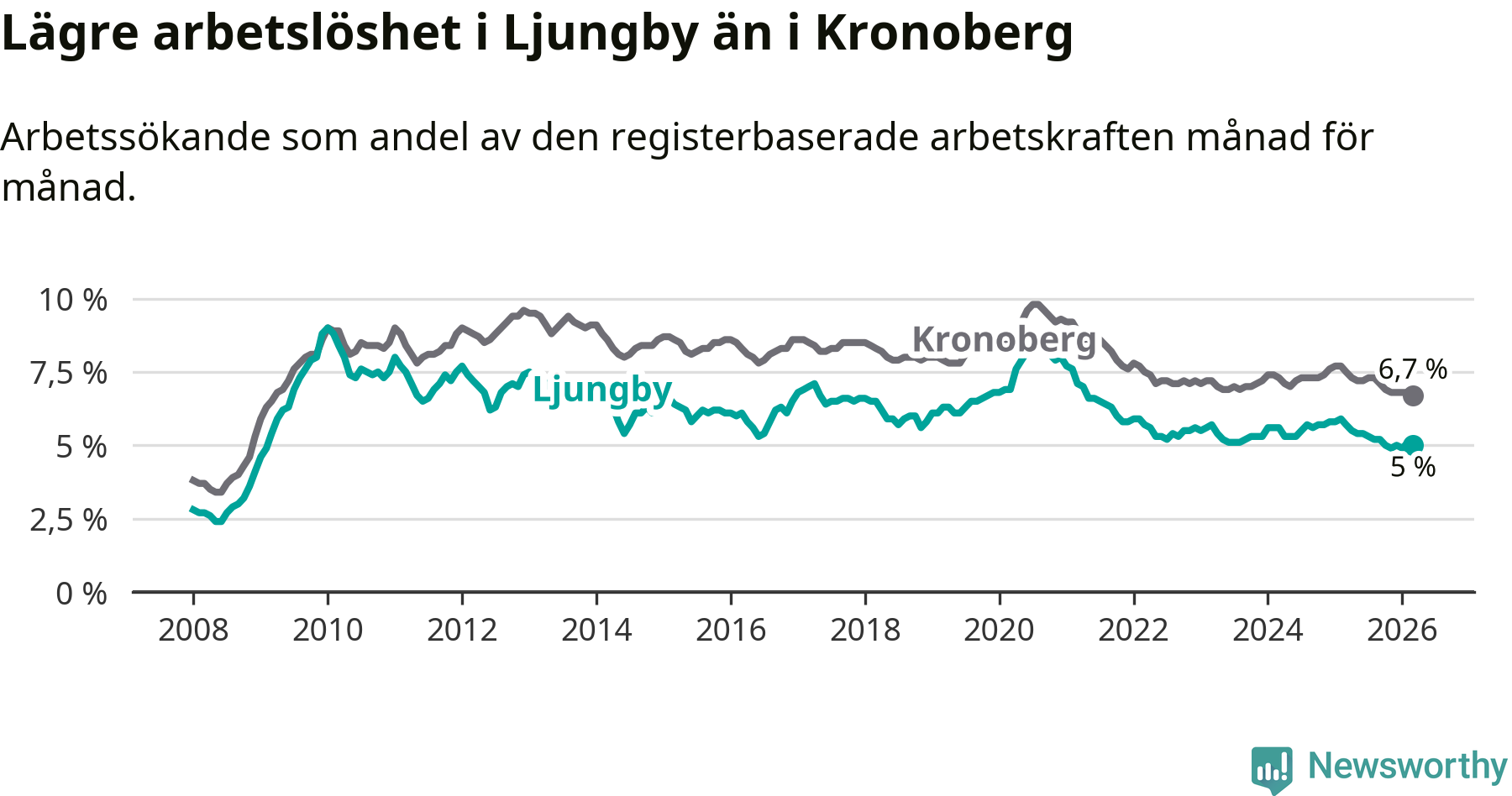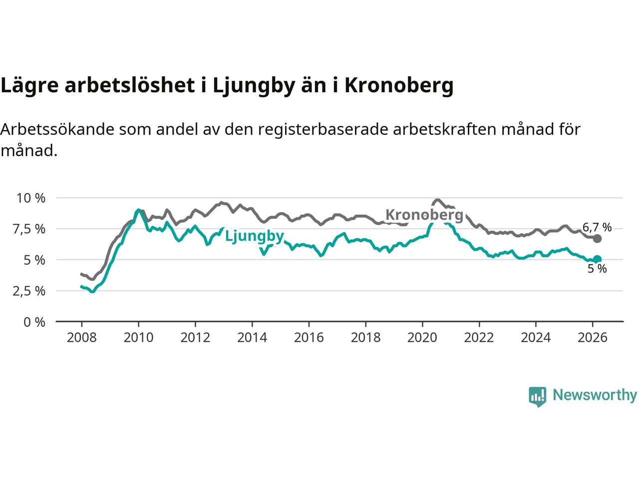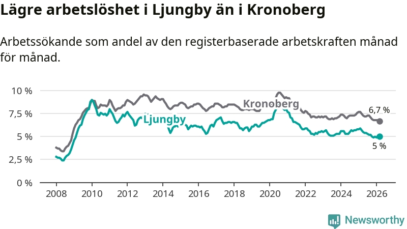 Graf: Arbetslöshet i Ljungby kommun och Kronobergs län
