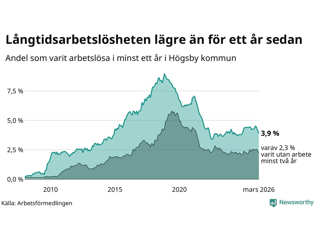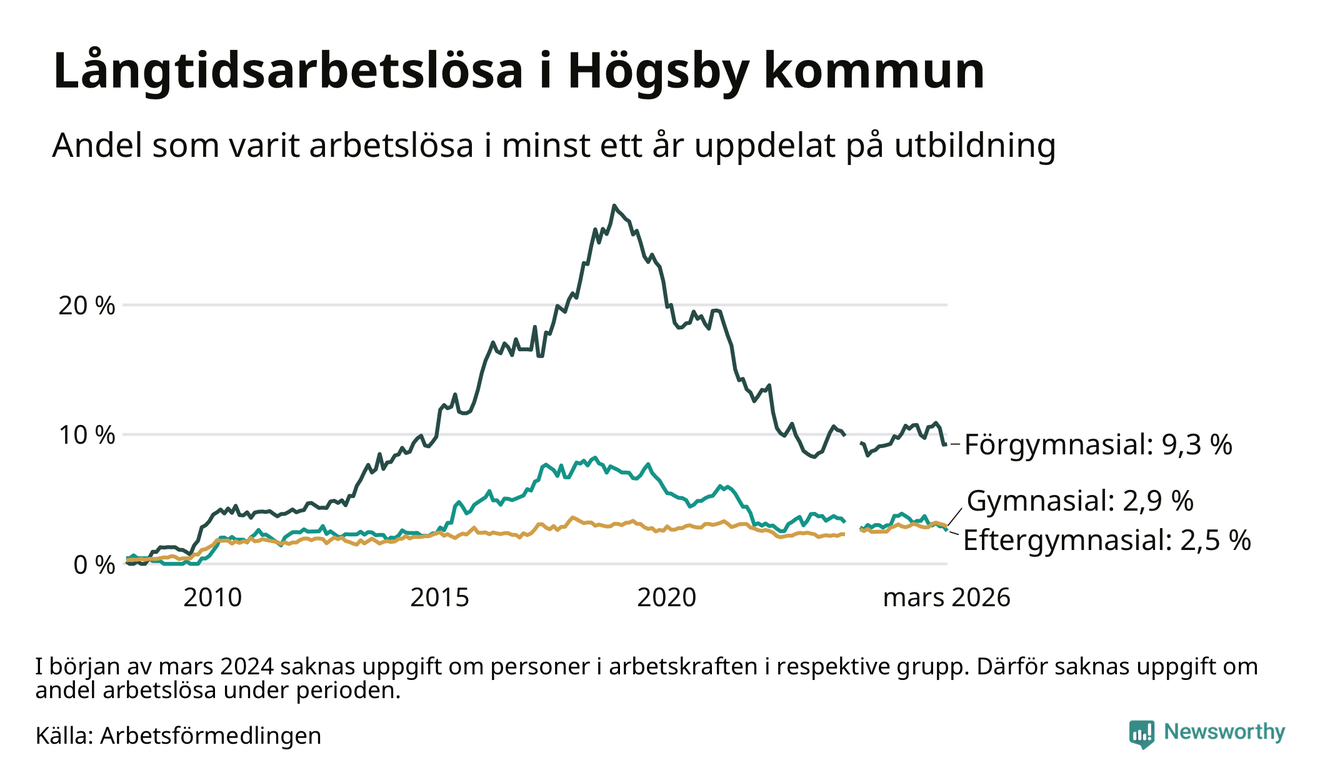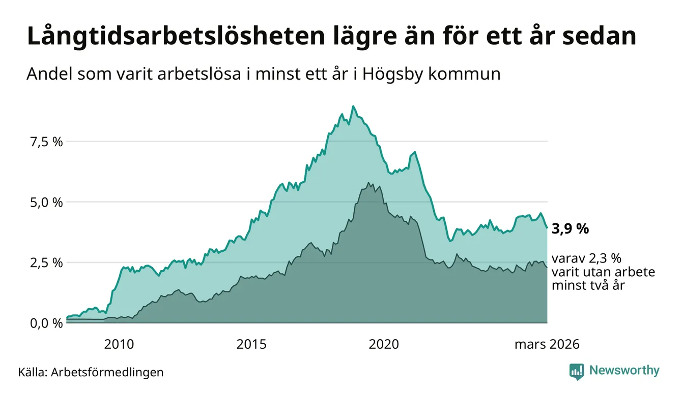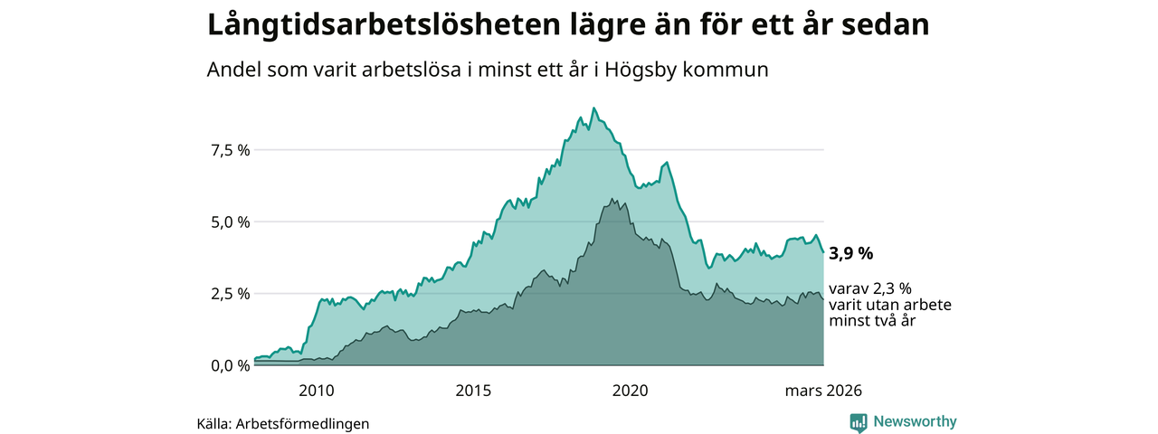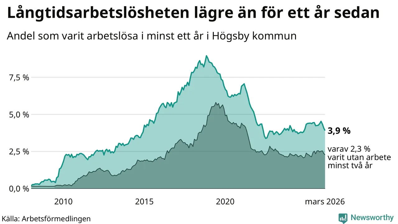 Långtidsarbetslöshet i Högsby i mars 2026