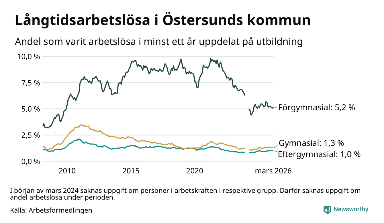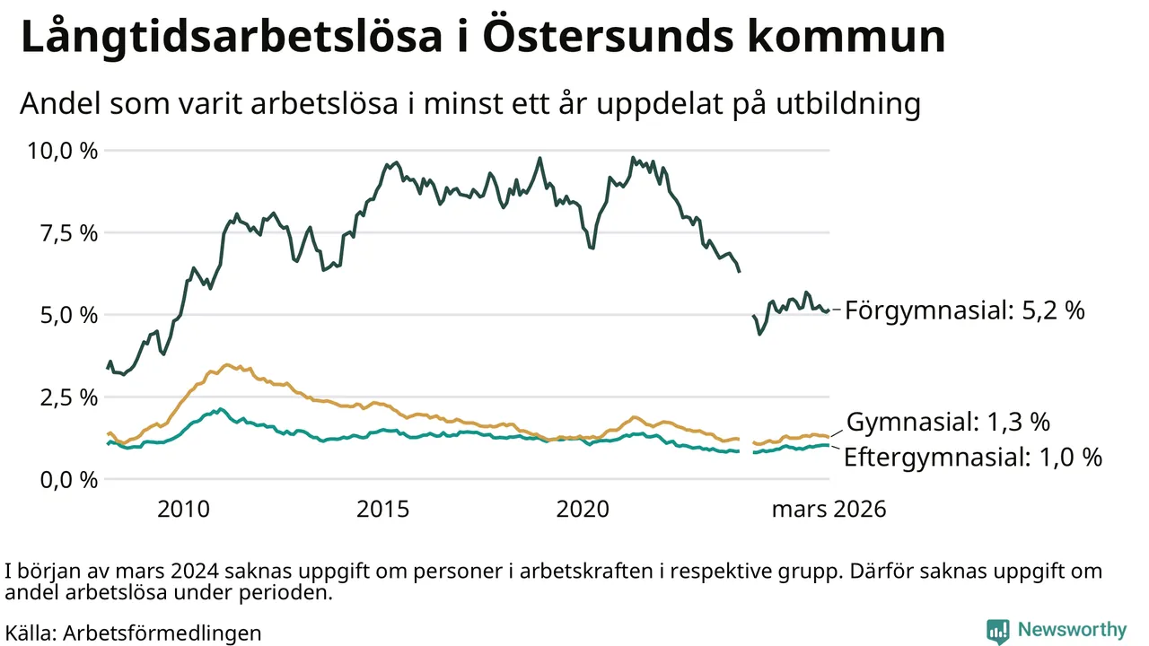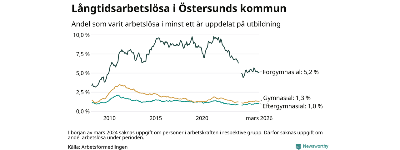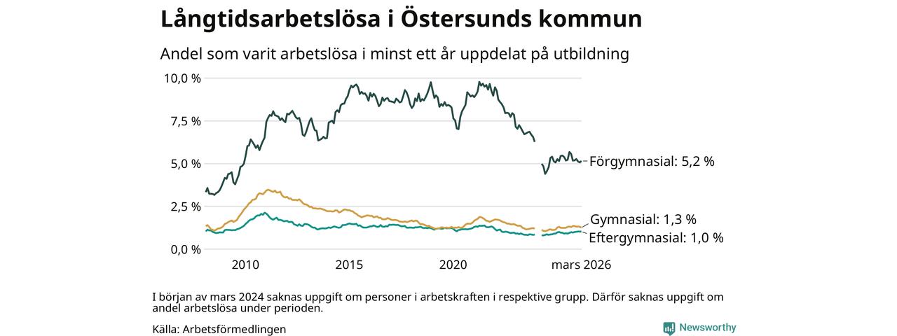 Långtidsarbetslöshet i Östersund i mars 2026