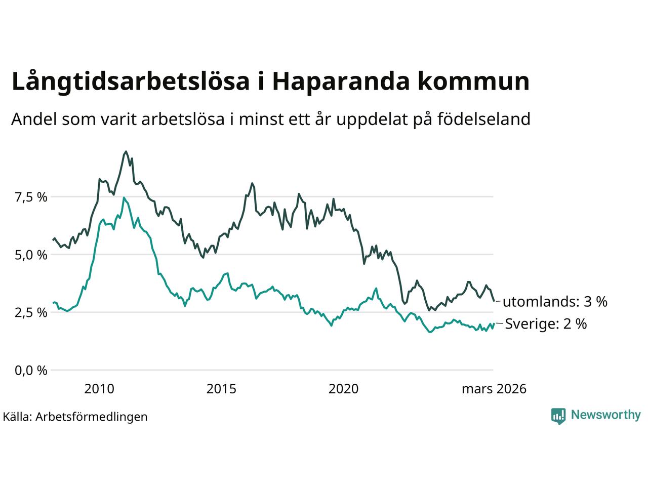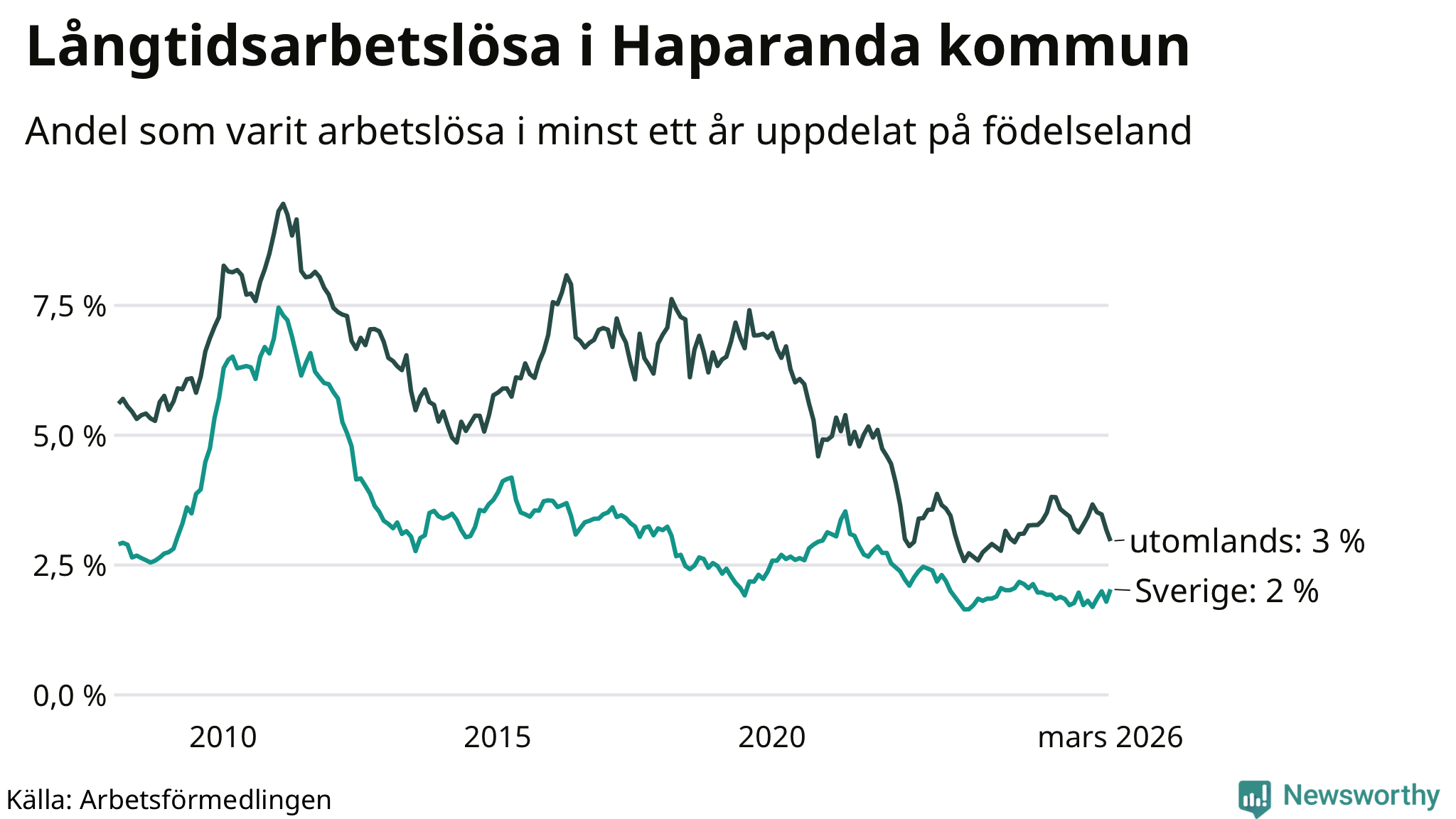 Graf: Andel arbetslösa uppdelat på födelseland i Haparanda