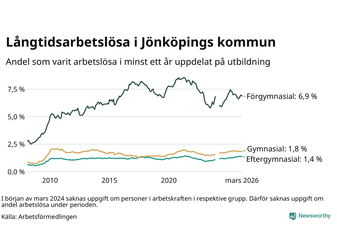 Bland dem utan gymnasieutbildning6,9 %7,0 %7,8 %