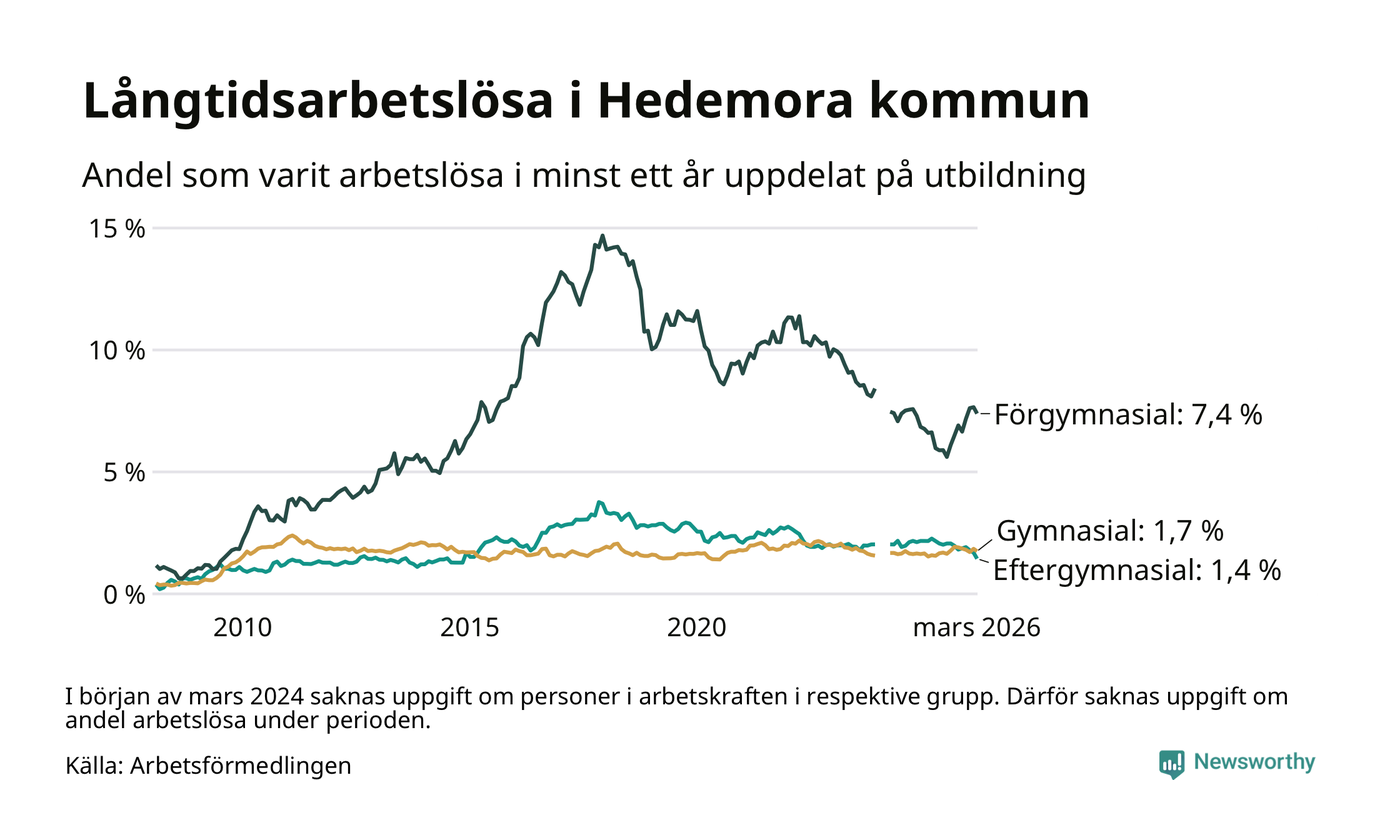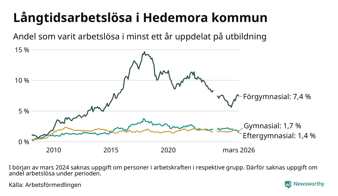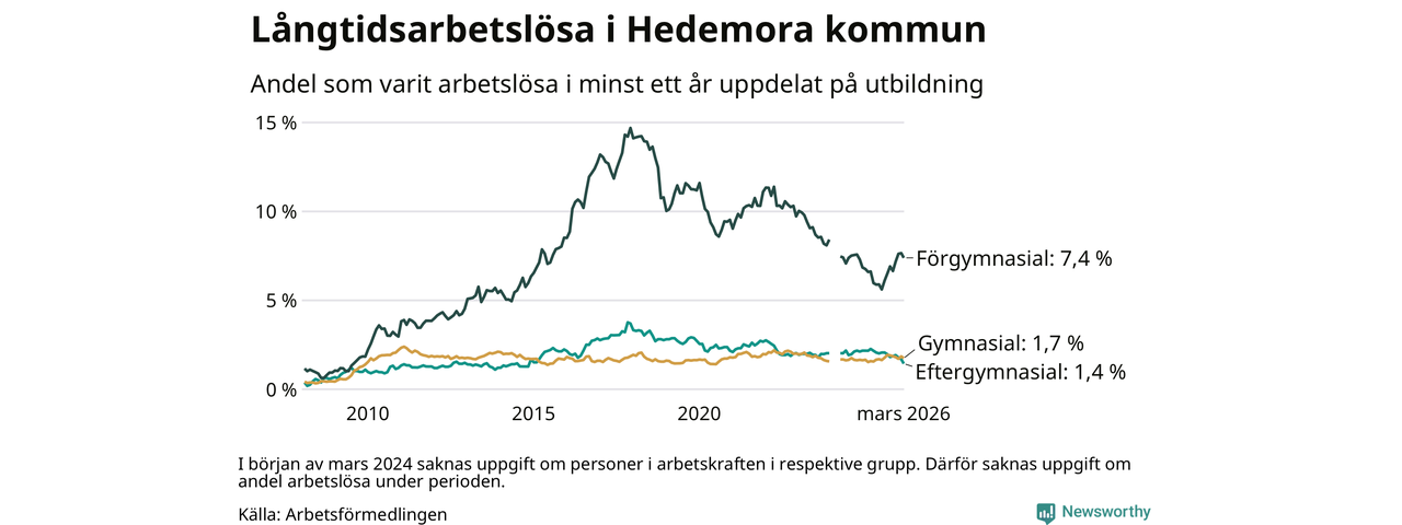Långtidsarbetslöshet i Hedemora i mars 2026