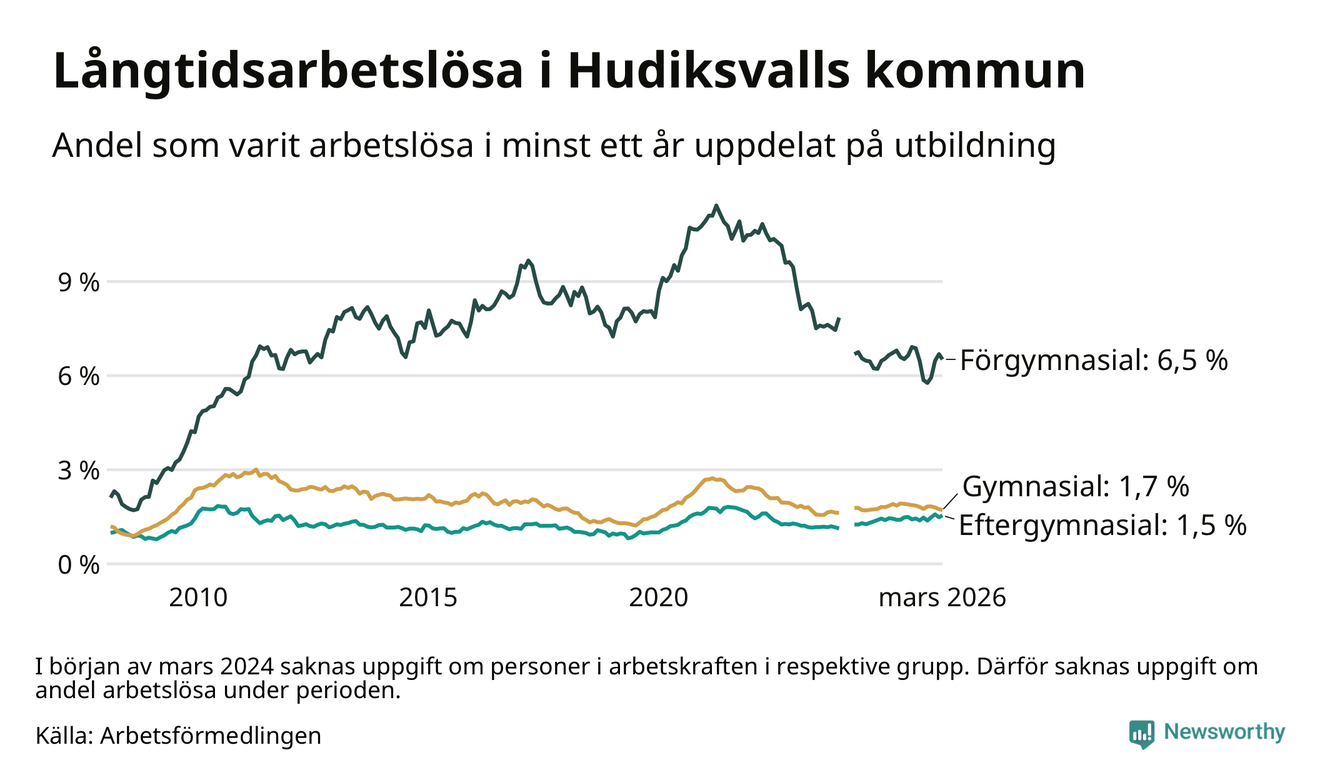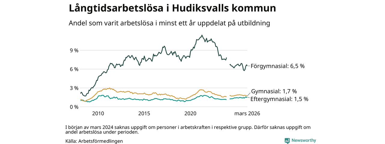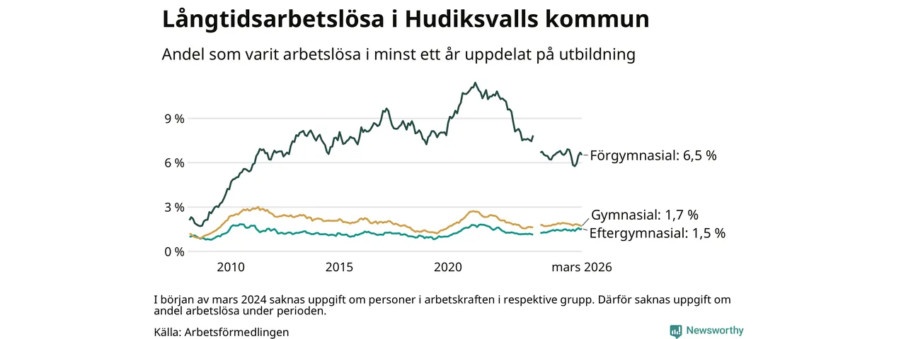 Långtidsarbetslöshet i Hudiksvall i mars 2026
