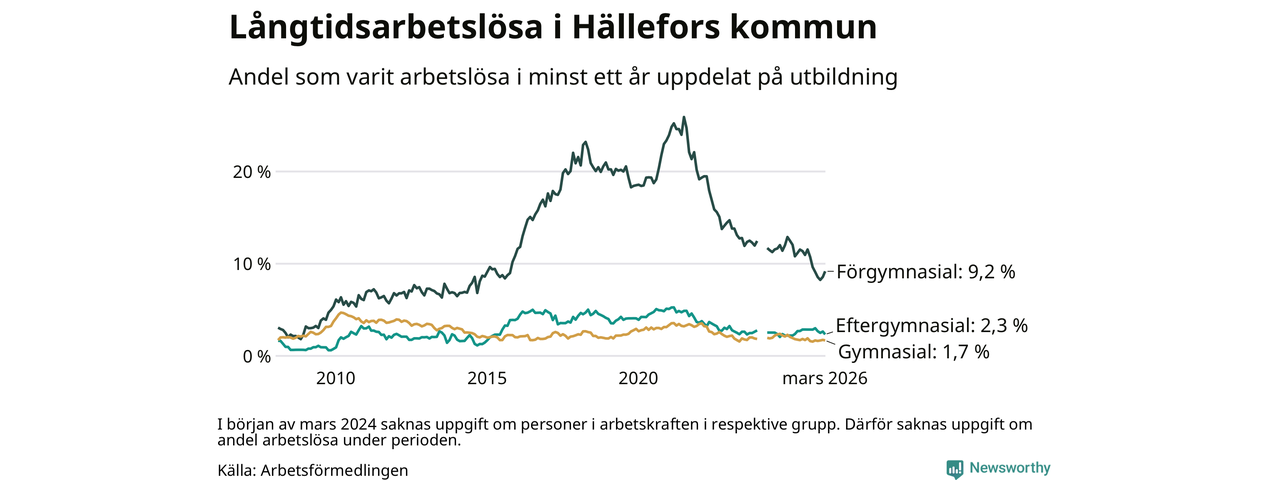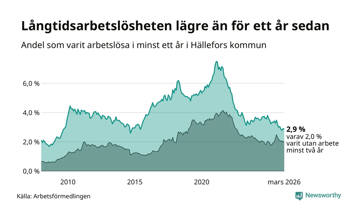 Långtidsarbetslöshet i Hällefors i mars 2026