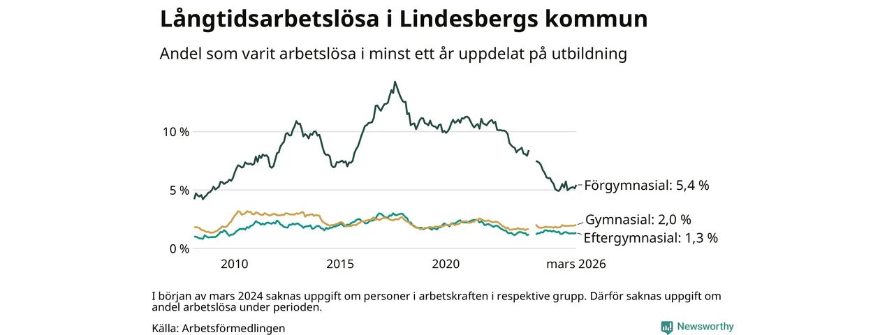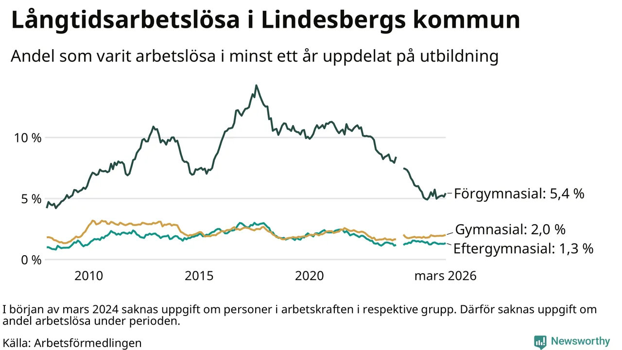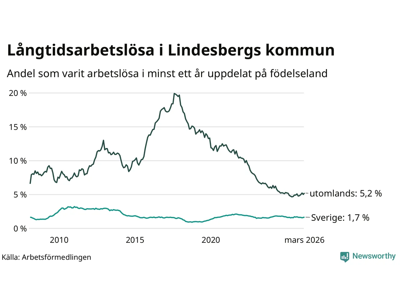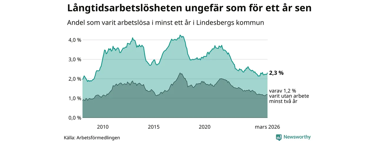 Långtidsarbetslöshet i Lindesberg i mars 2026
