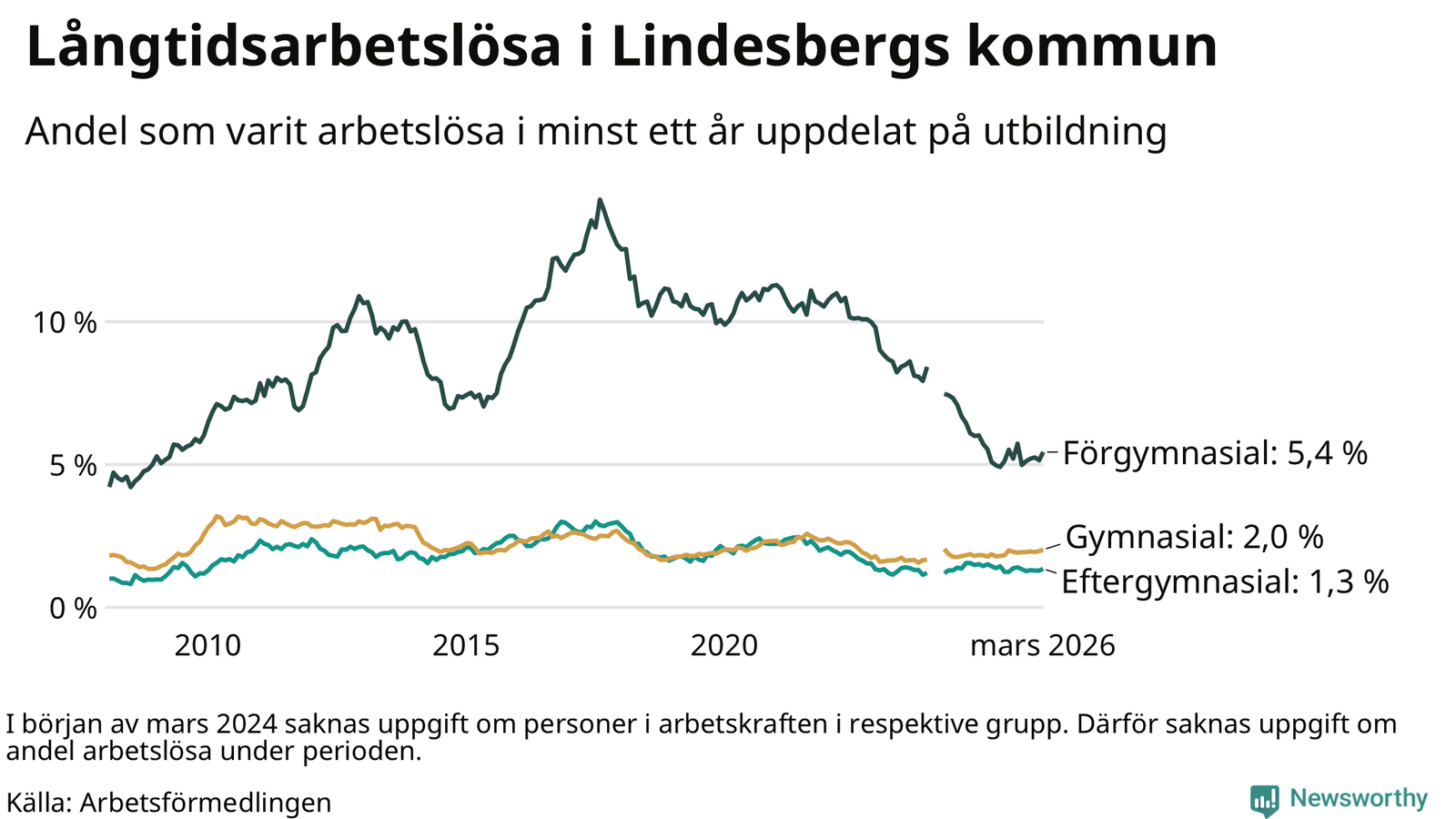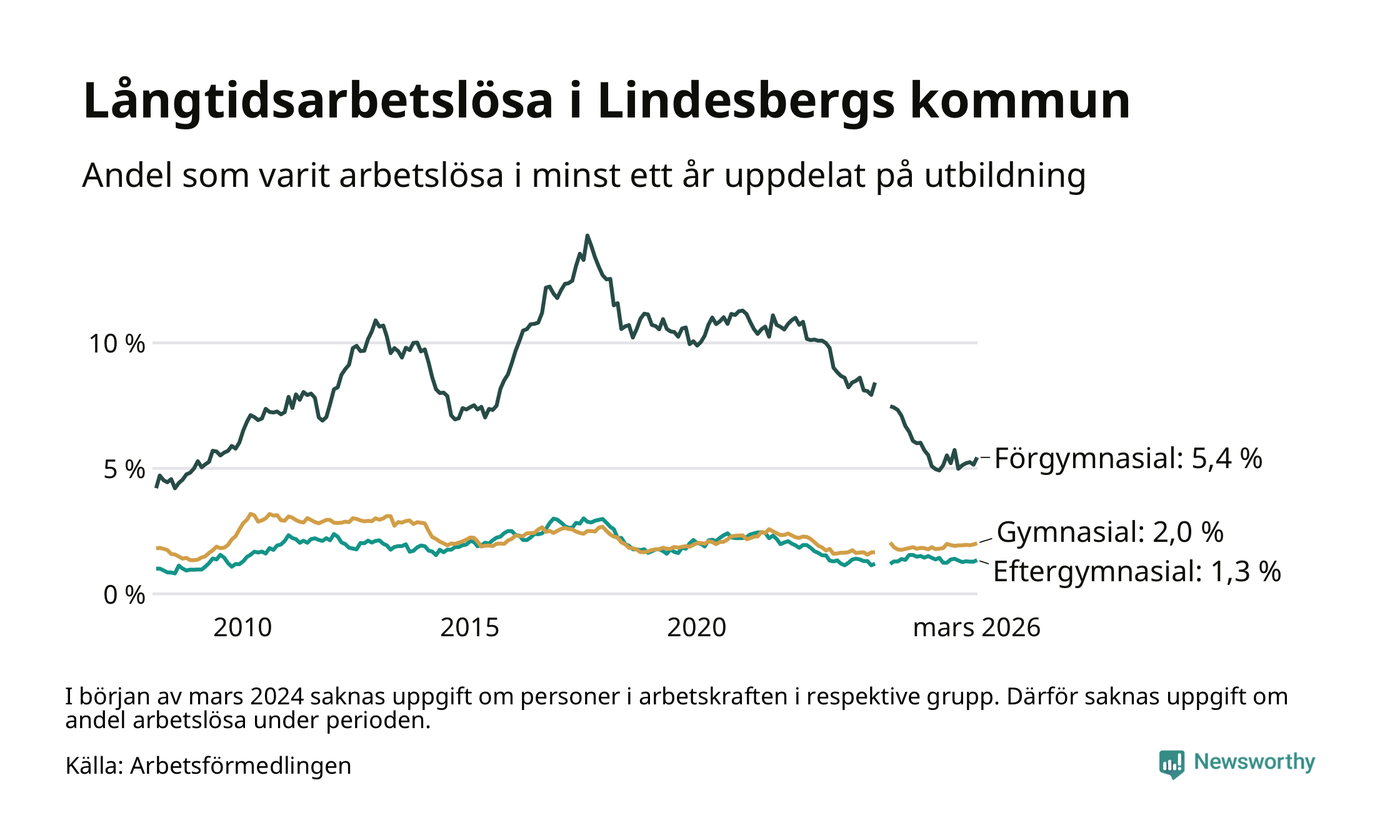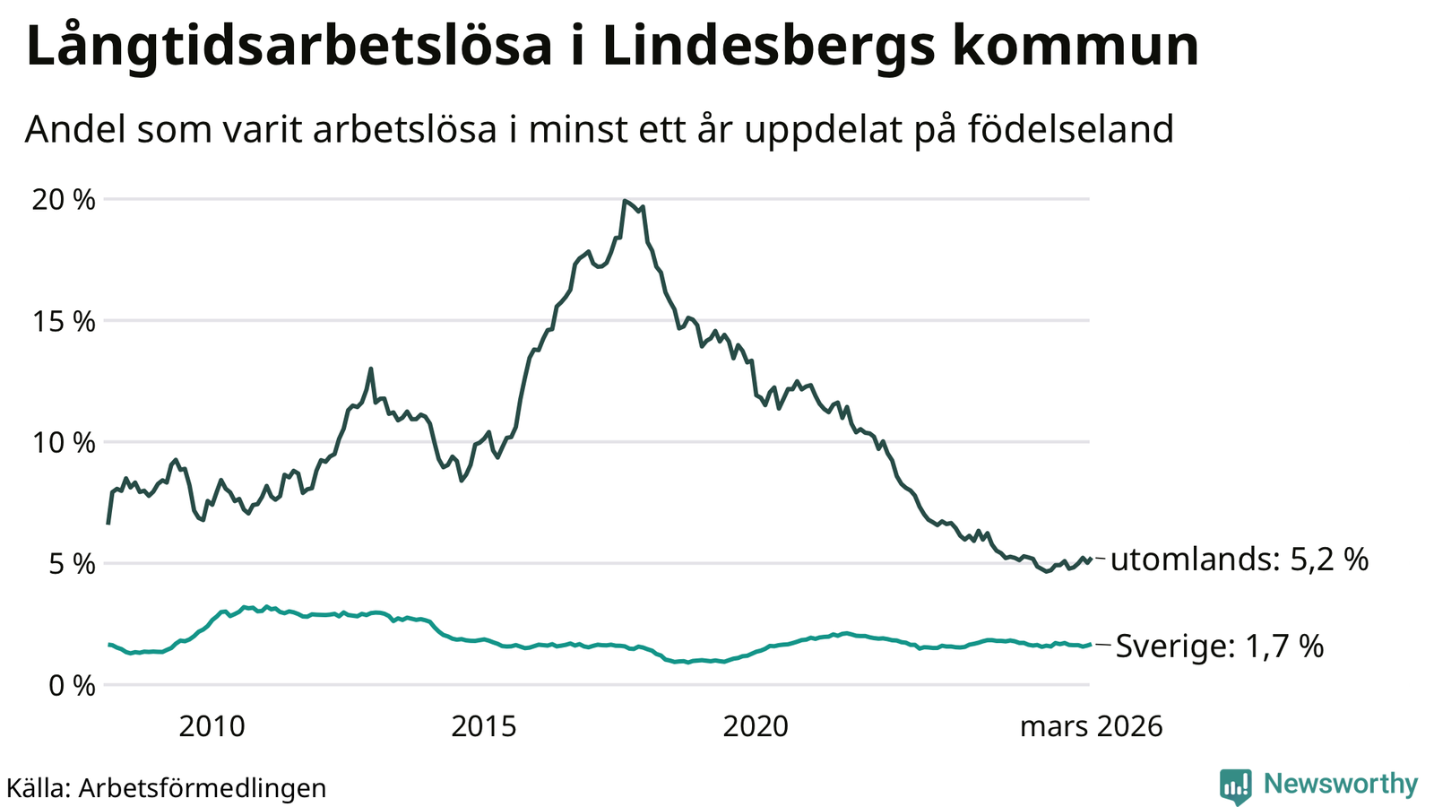 Långtidsarbetslöshet i Lindesberg i mars 2026