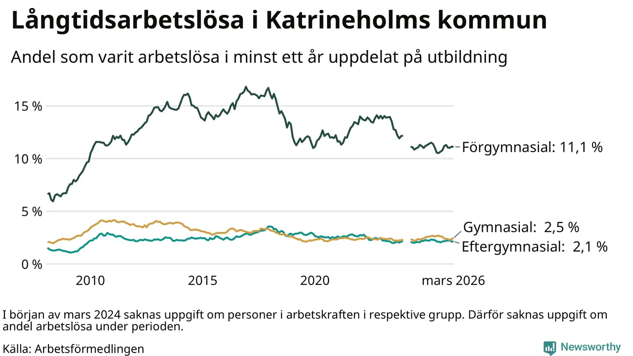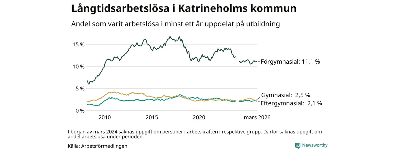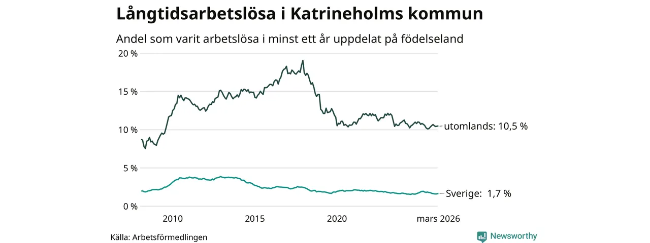Långtidsarbetslöshet i Katrineholm i mars 2026