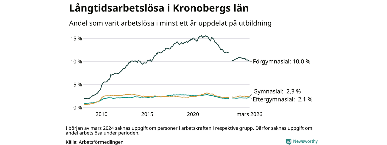 Kronoberg: Lägsta långtids­arbets­lösheten sedan december 2023