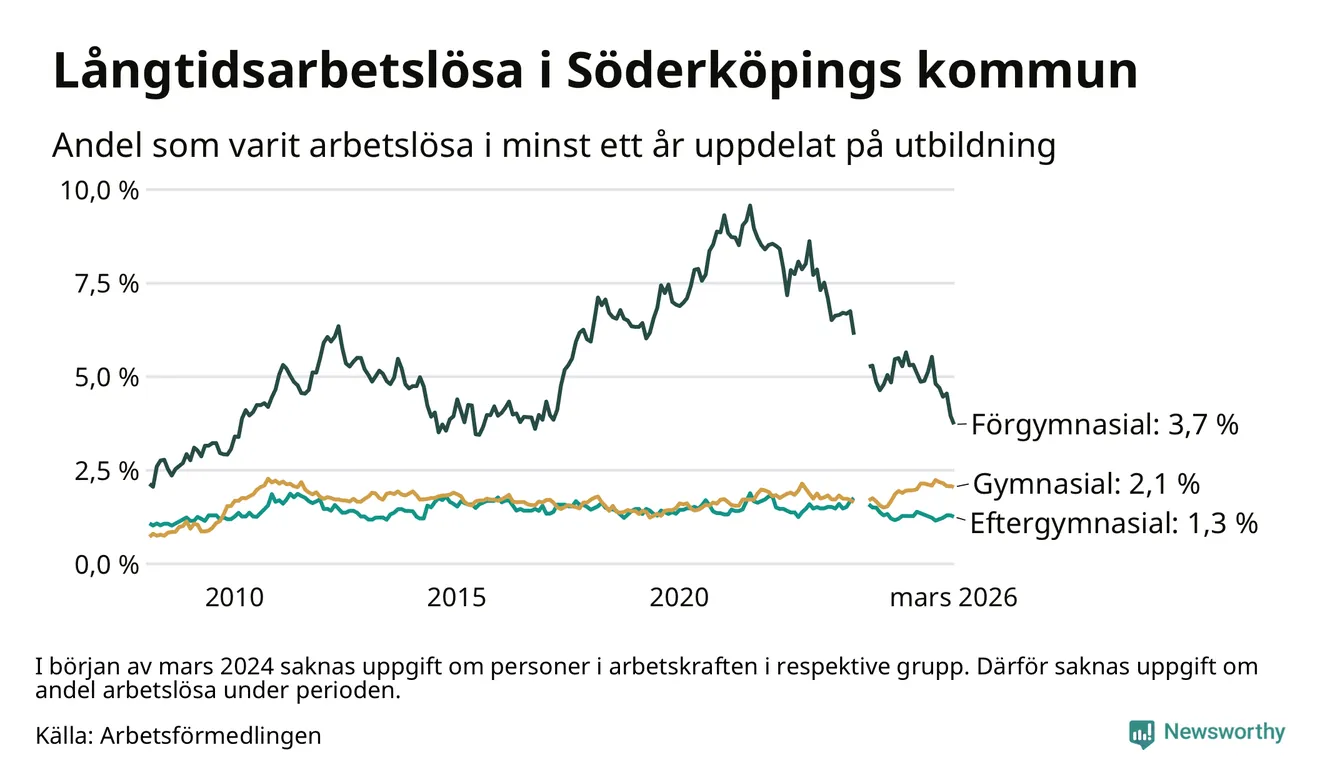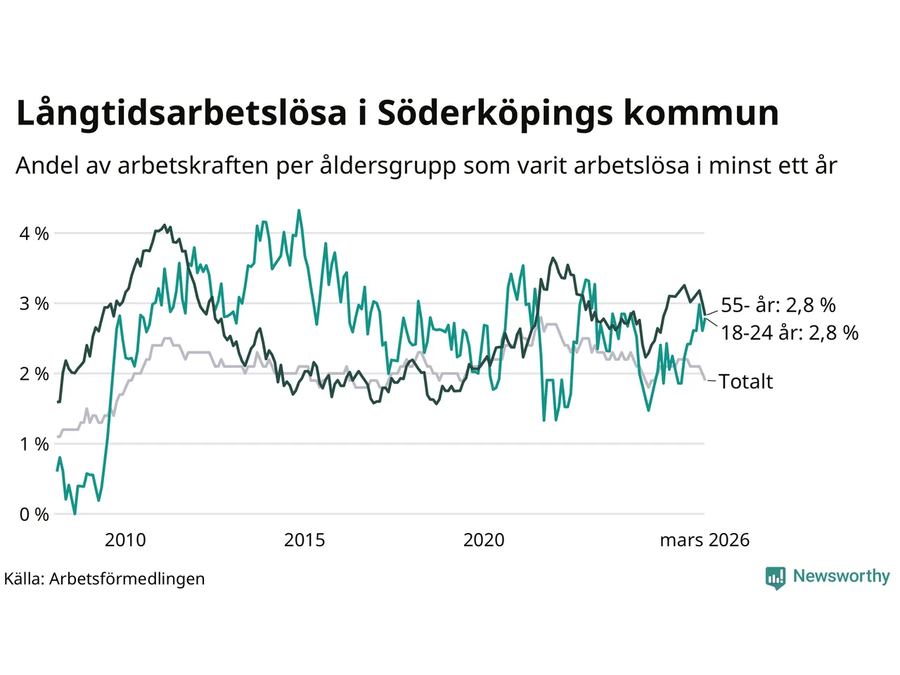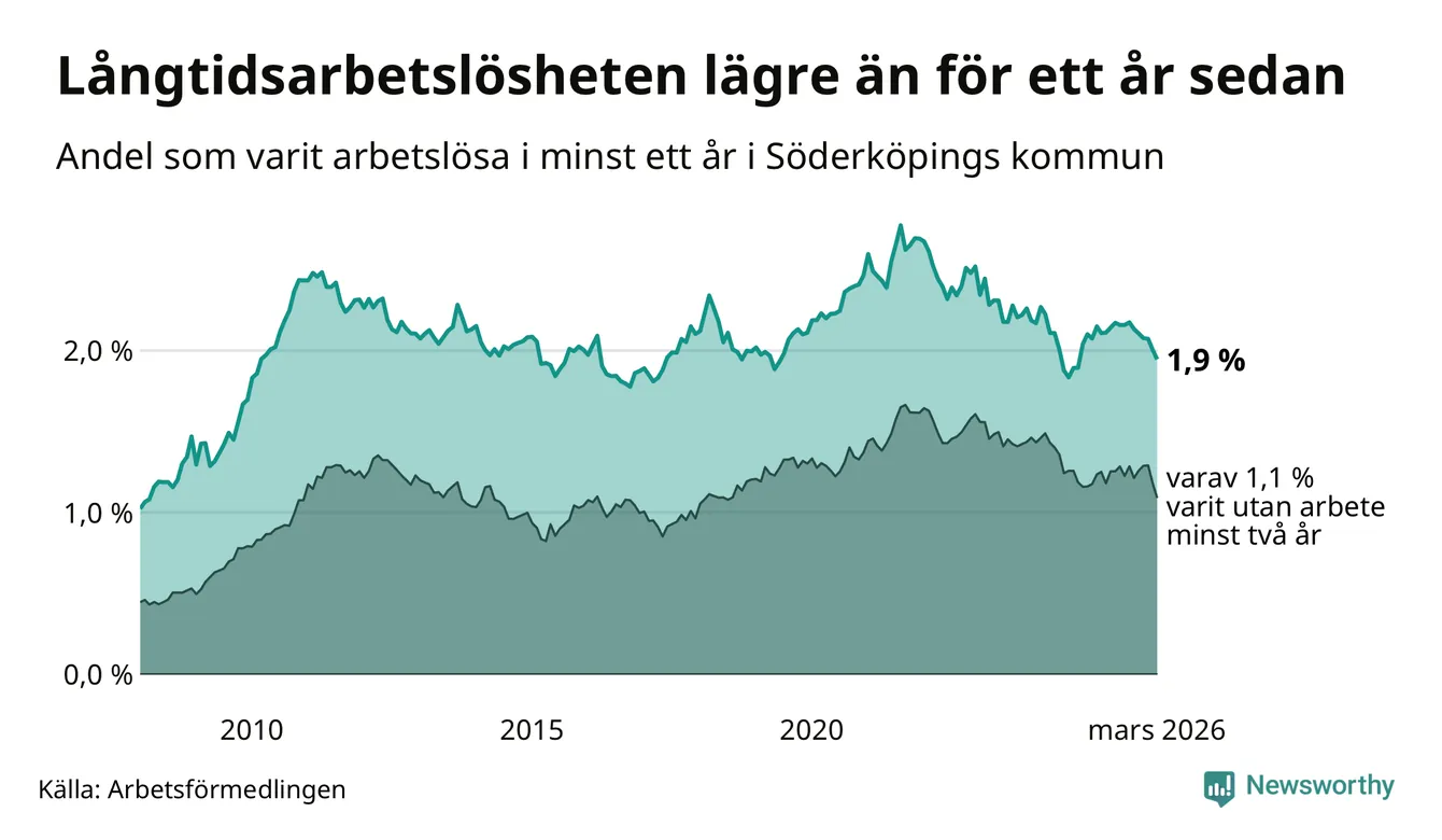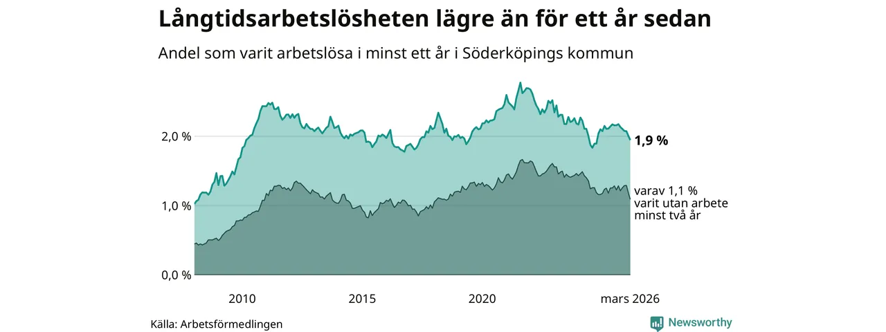 Långtidsarbetslöshet i Söderköping i mars 2026