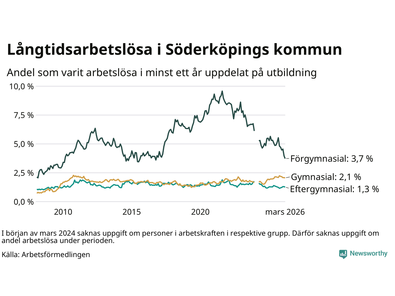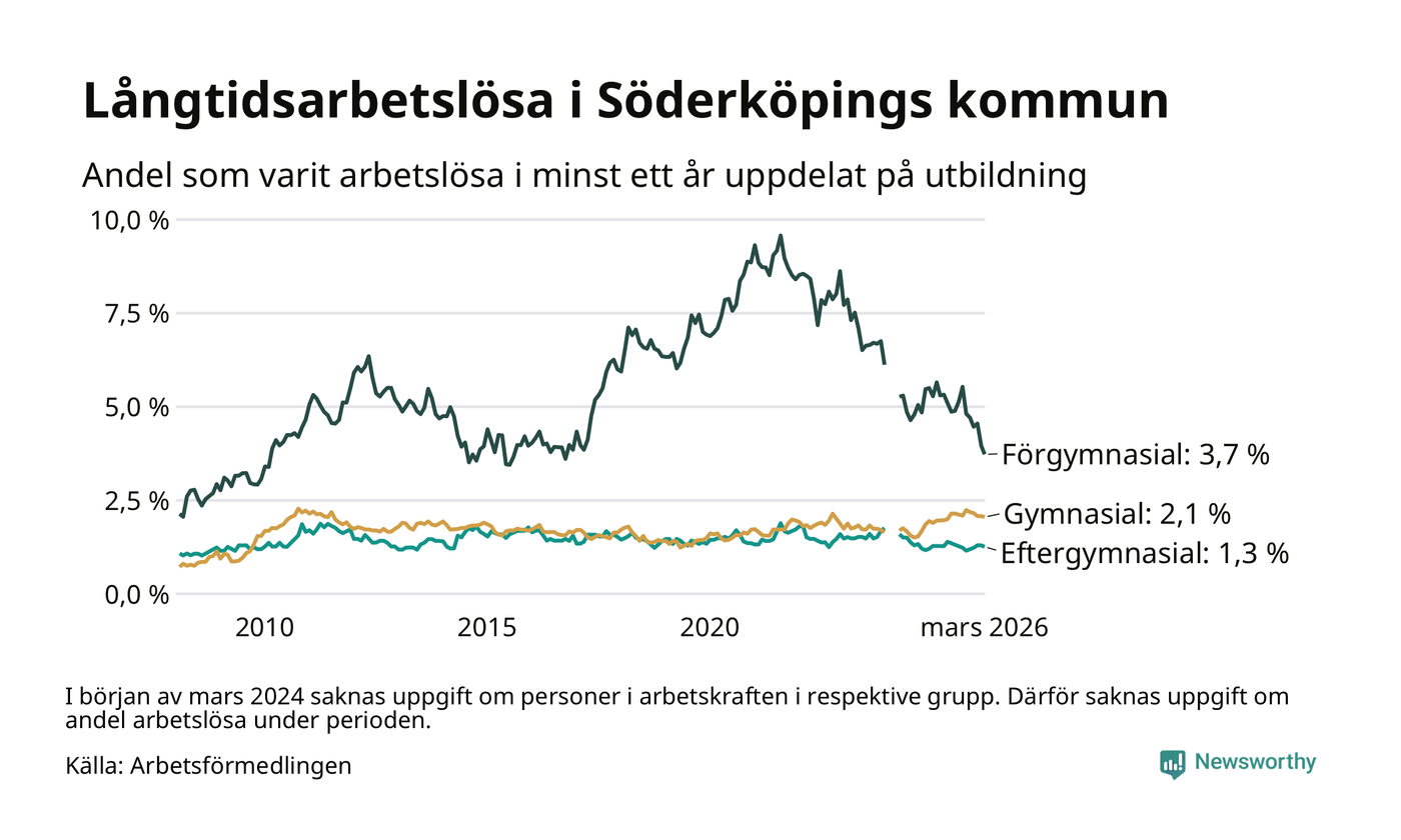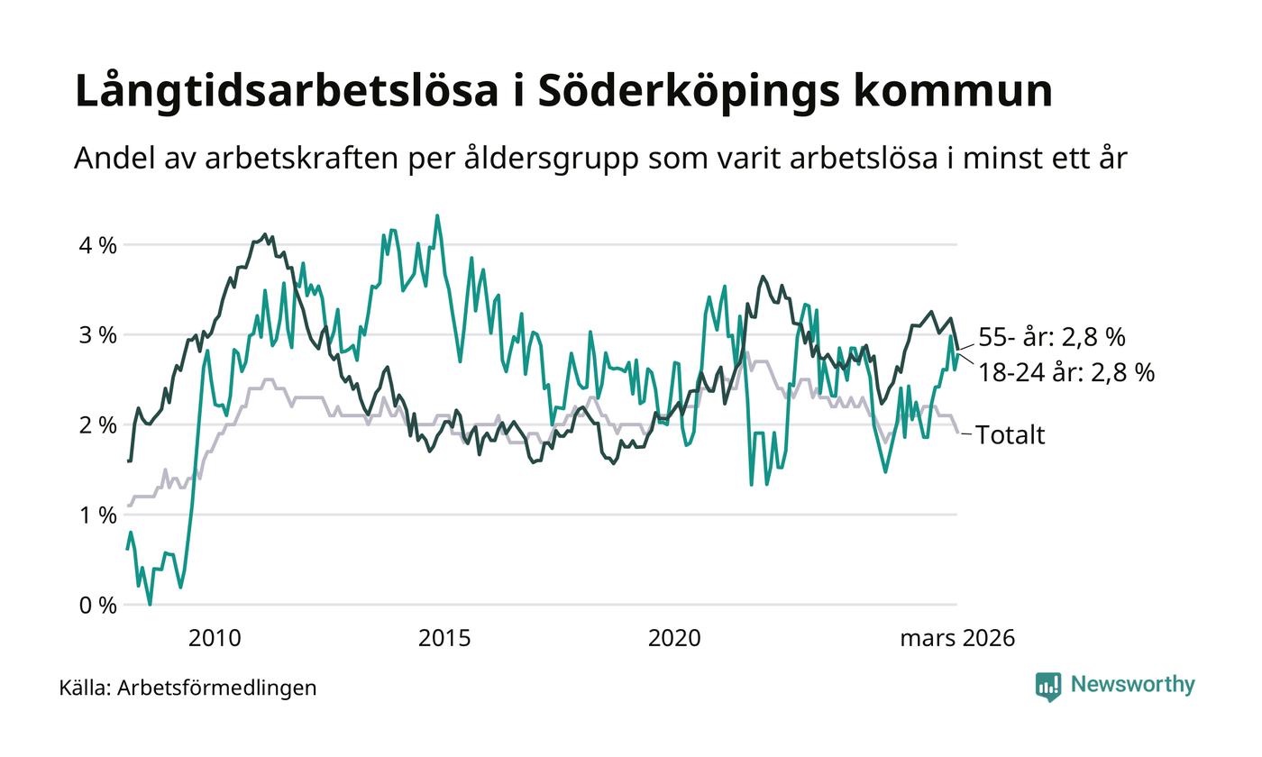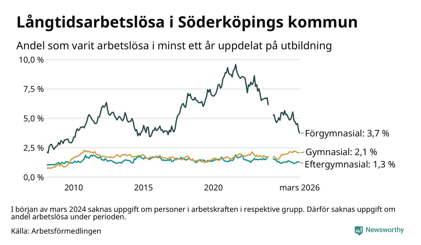 Långtidsarbetslöshet i Söderköping i mars 2026