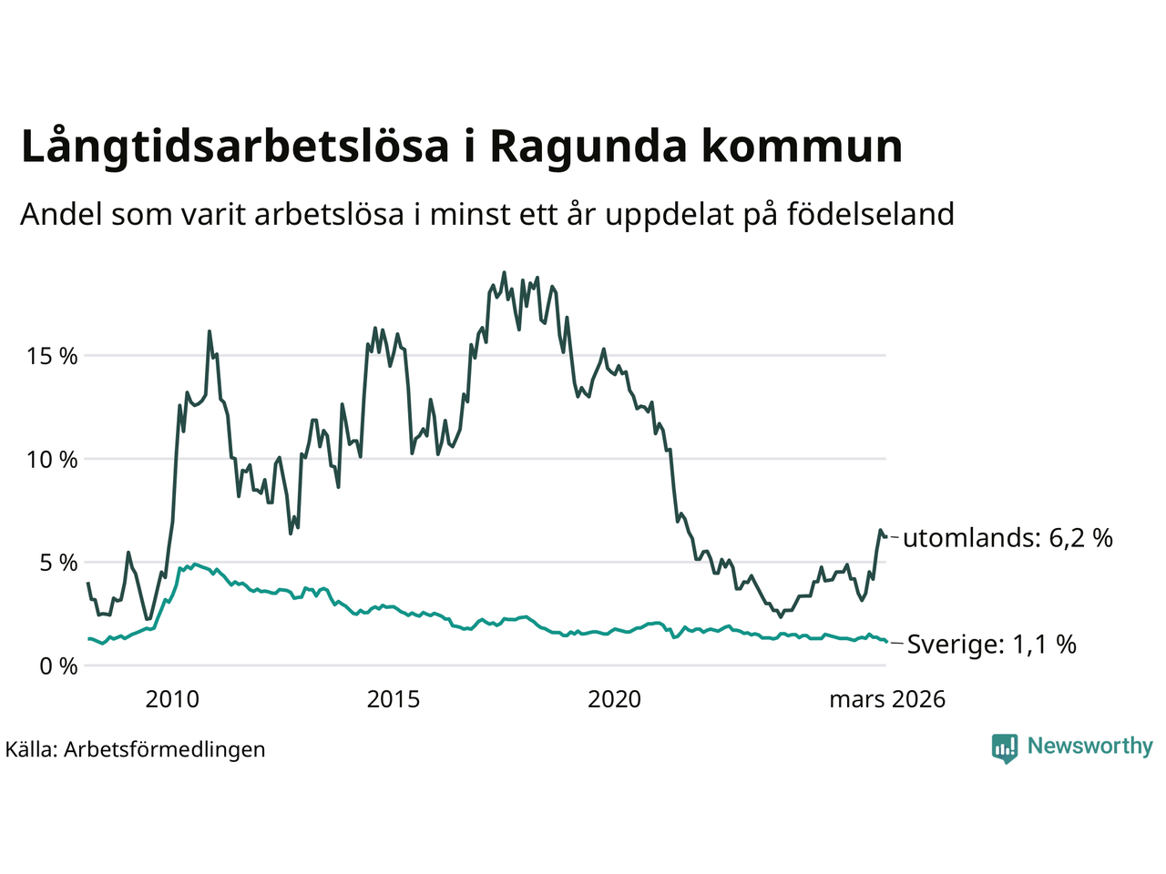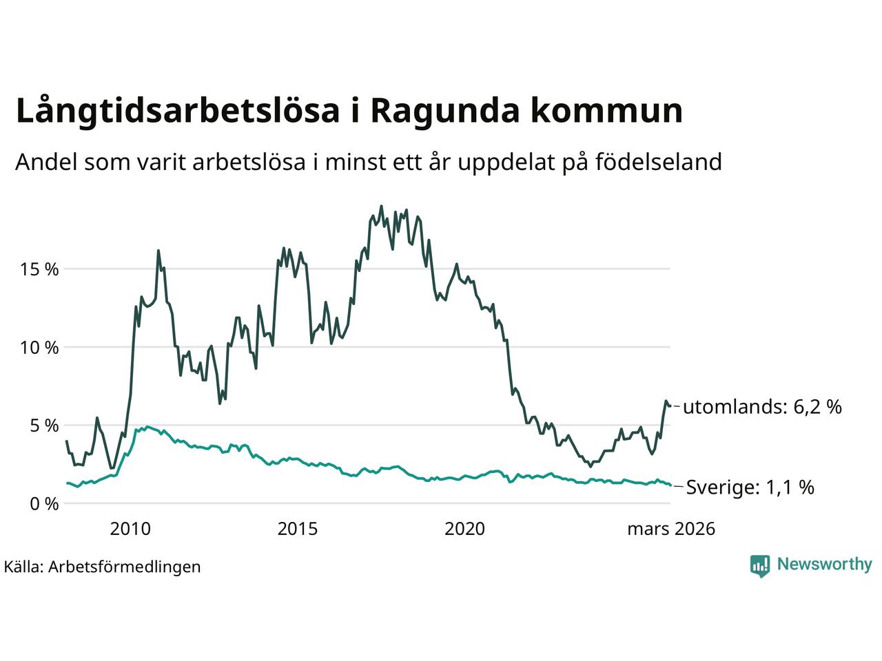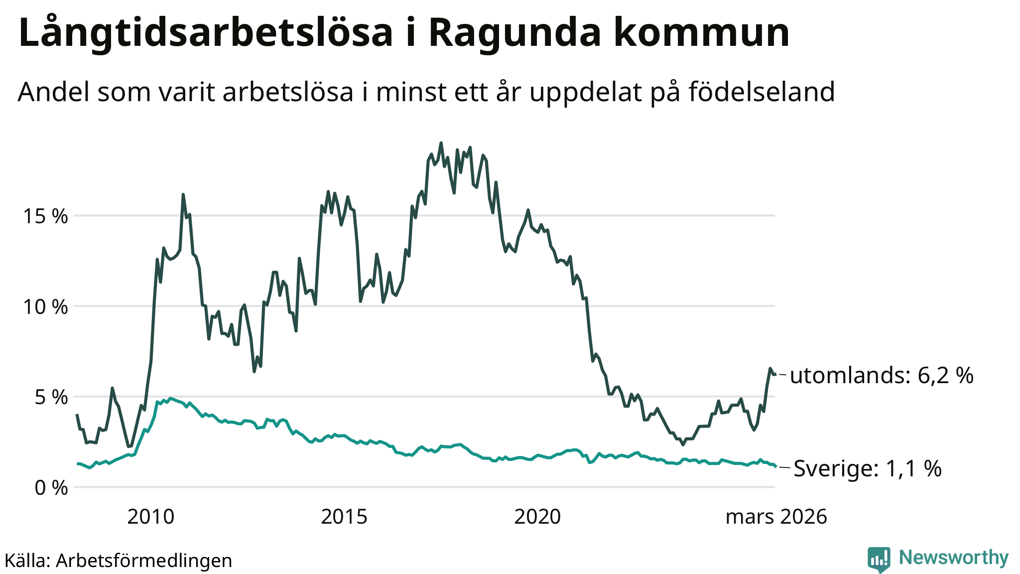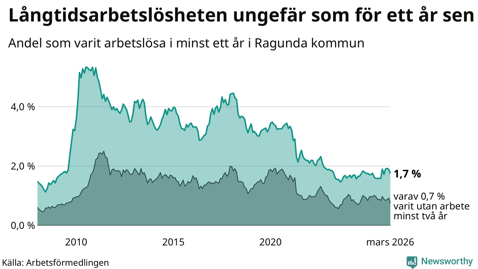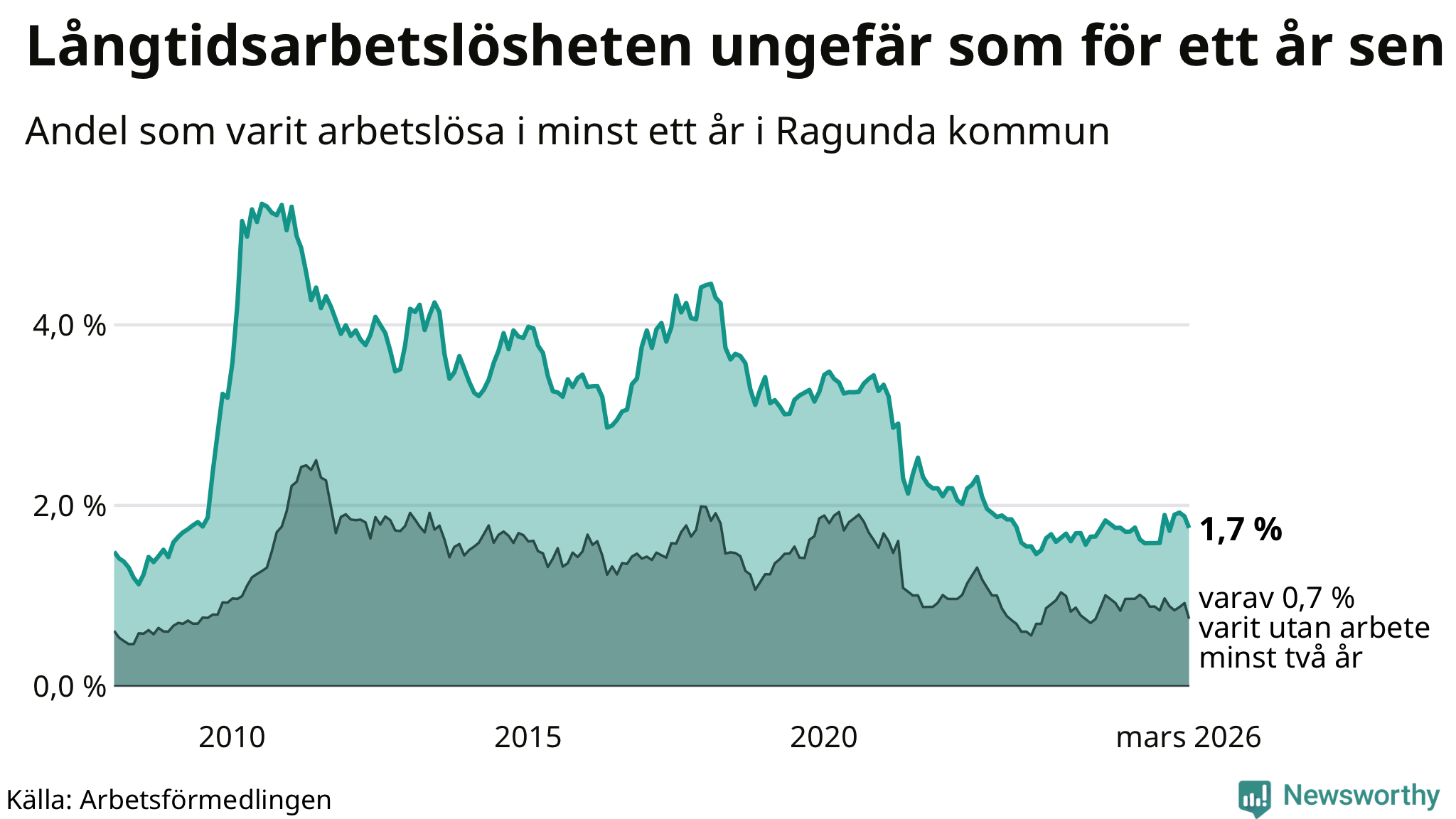 | Andel arbetslösa i minst två år | 0,7 % | 0,7 % | 1,6 % |