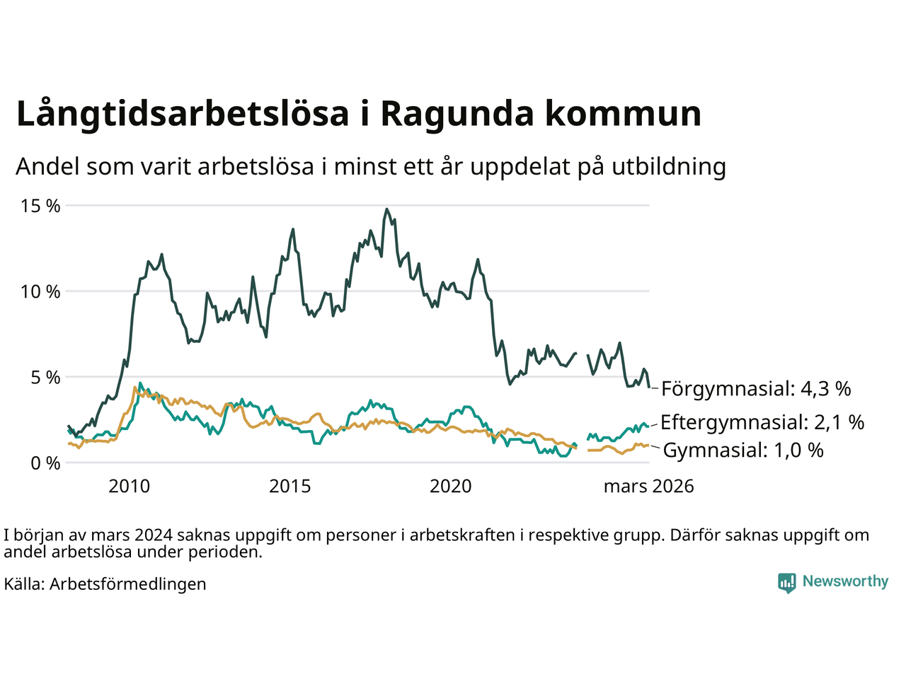 | Bland dem utan gymnasieutbildning | 4,3 % | 4,4 % | 7,8 % |