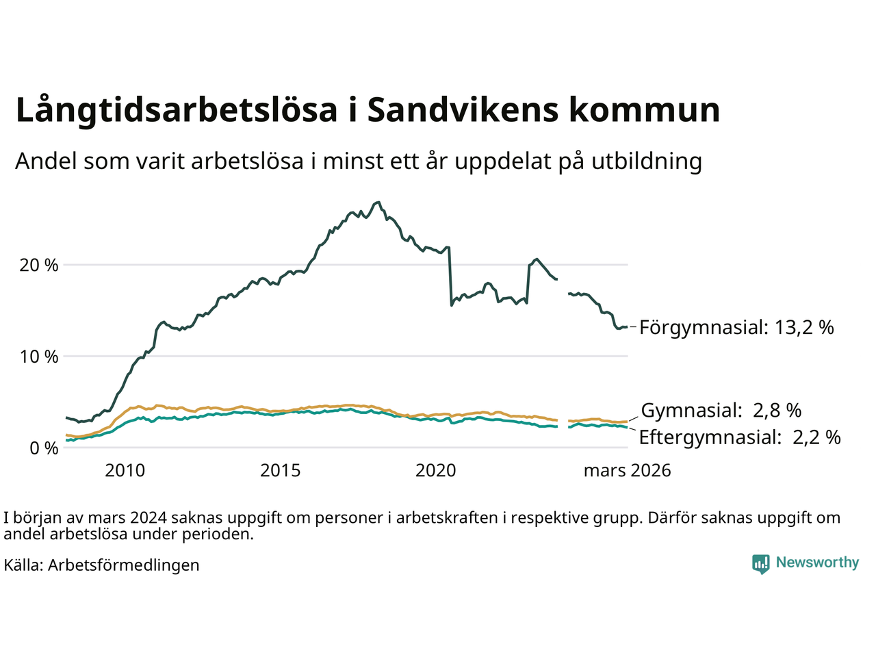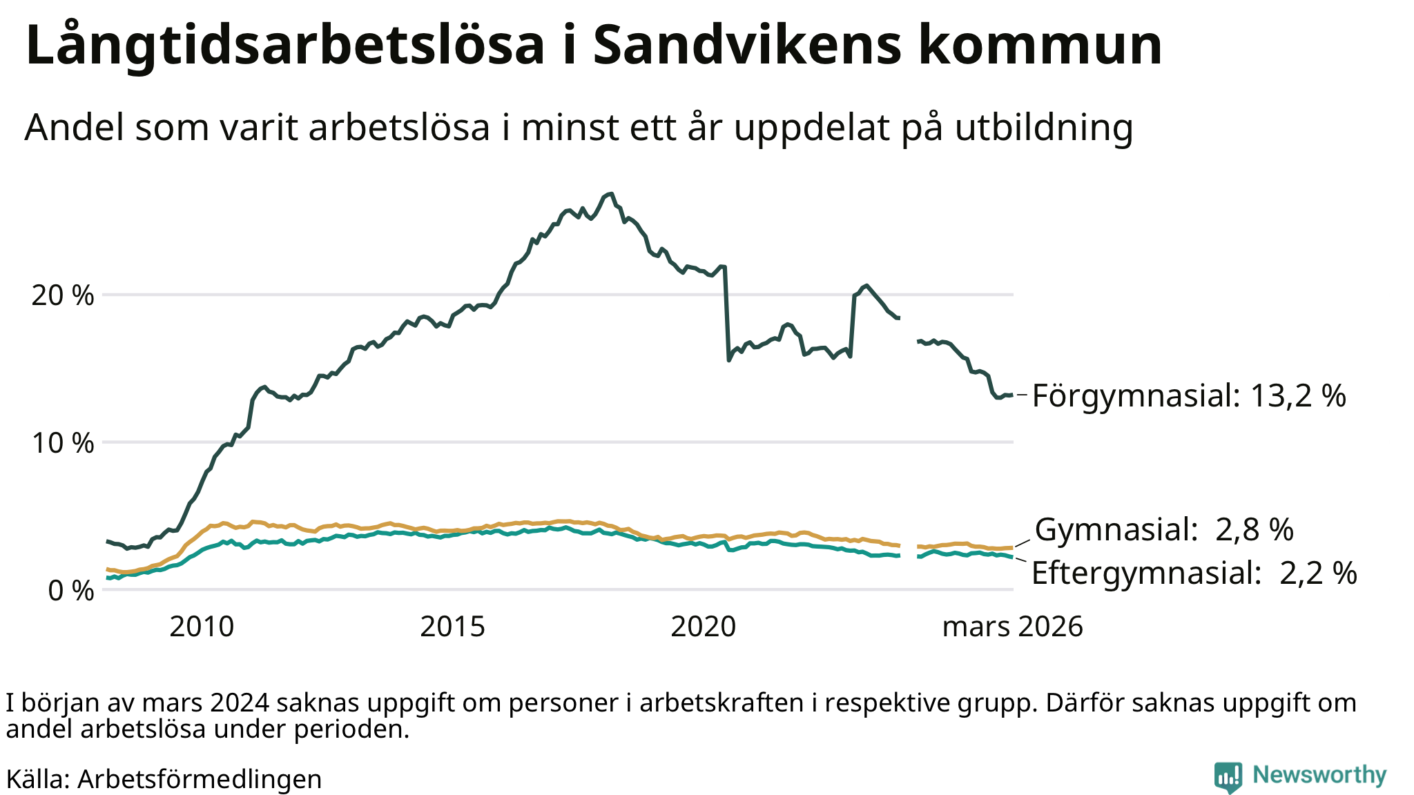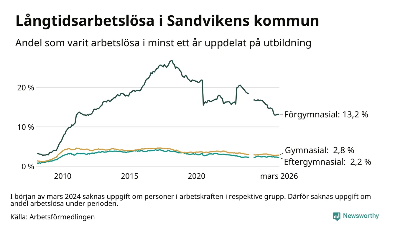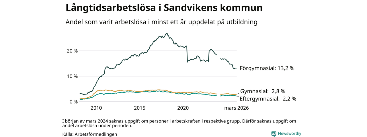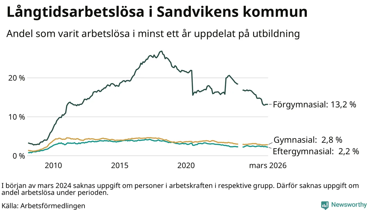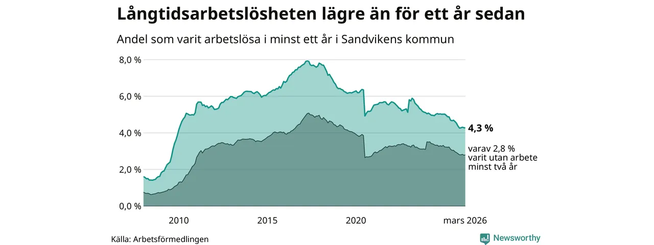 Långtidsarbetslöshet i Sandviken i mars 2026