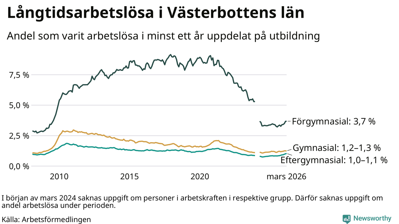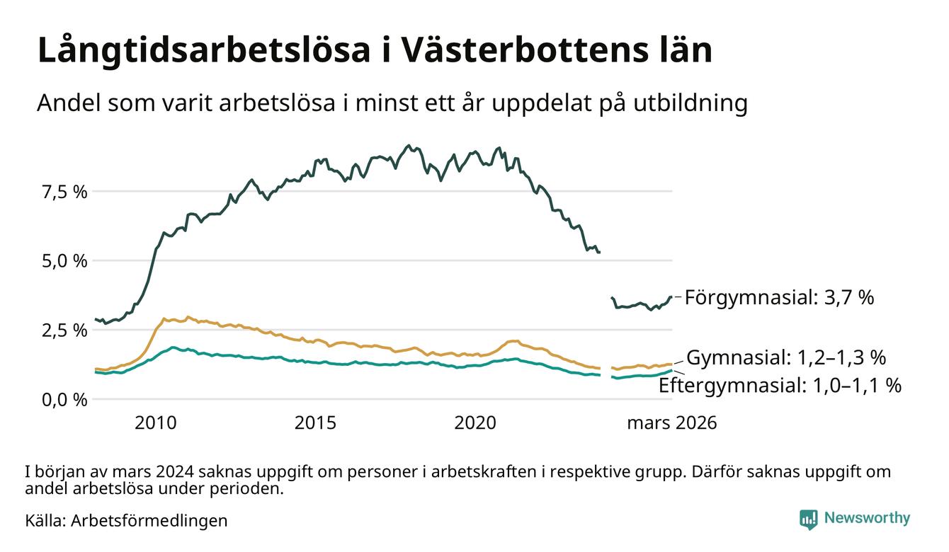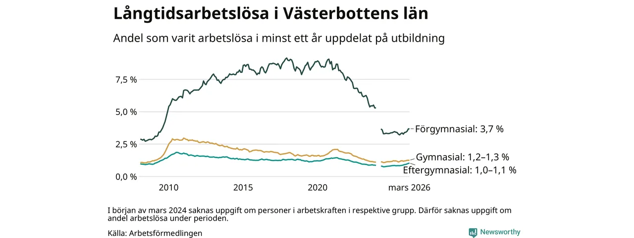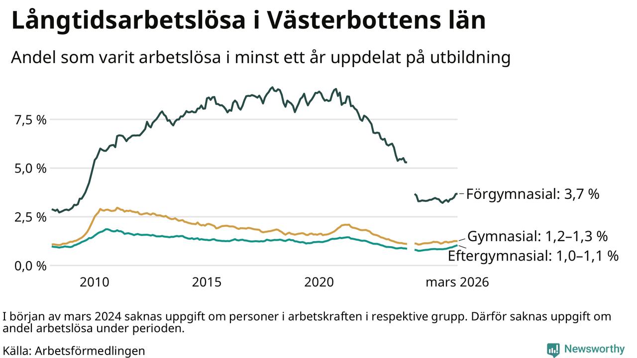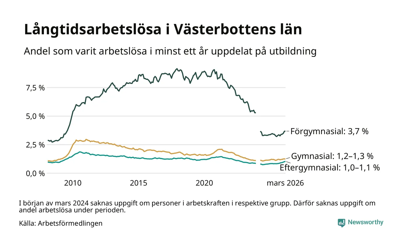 Så många är långtids­arbetslösa i Västerbotten