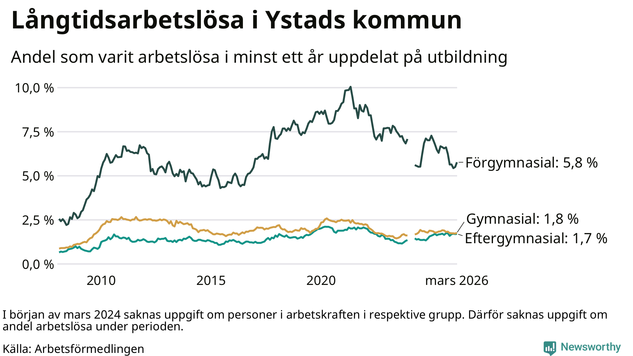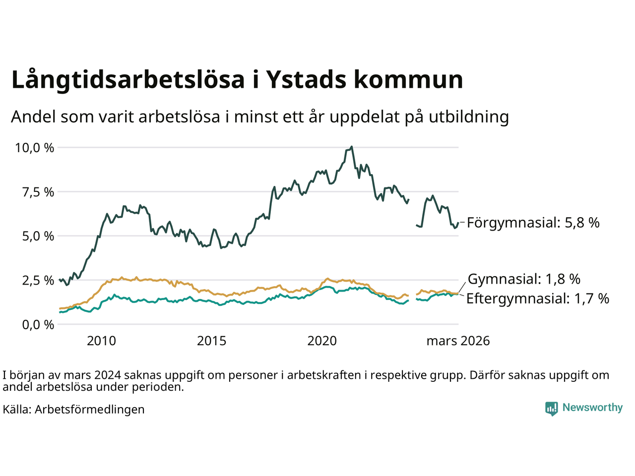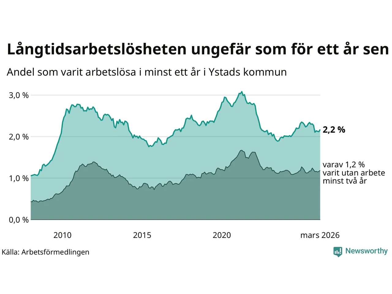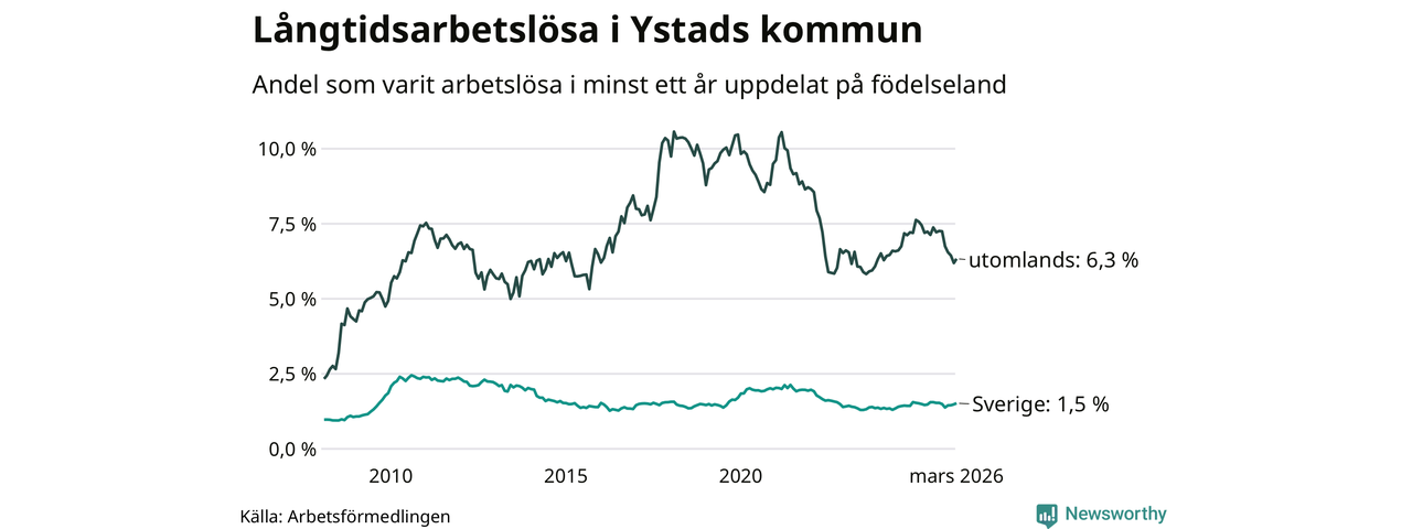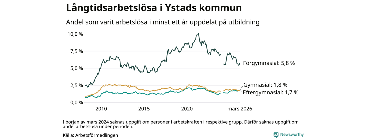 Långtidsarbetslöshet i Ystad i mars 2026