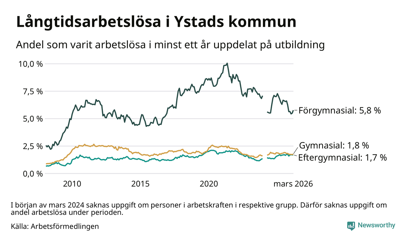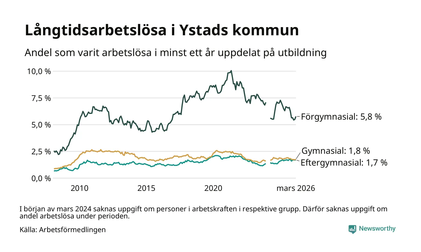 Så många är långtids­arbetslösa i Ystad