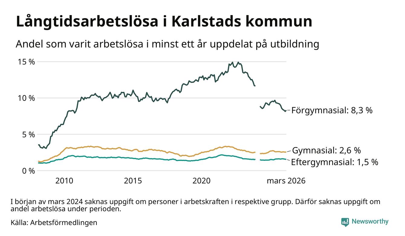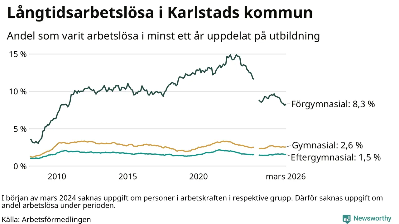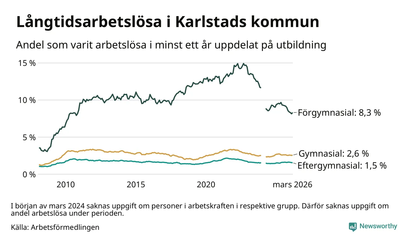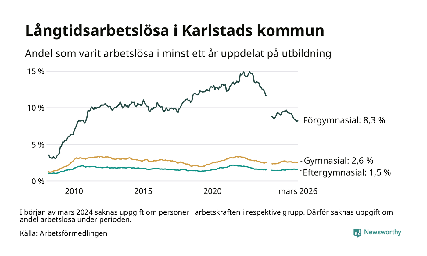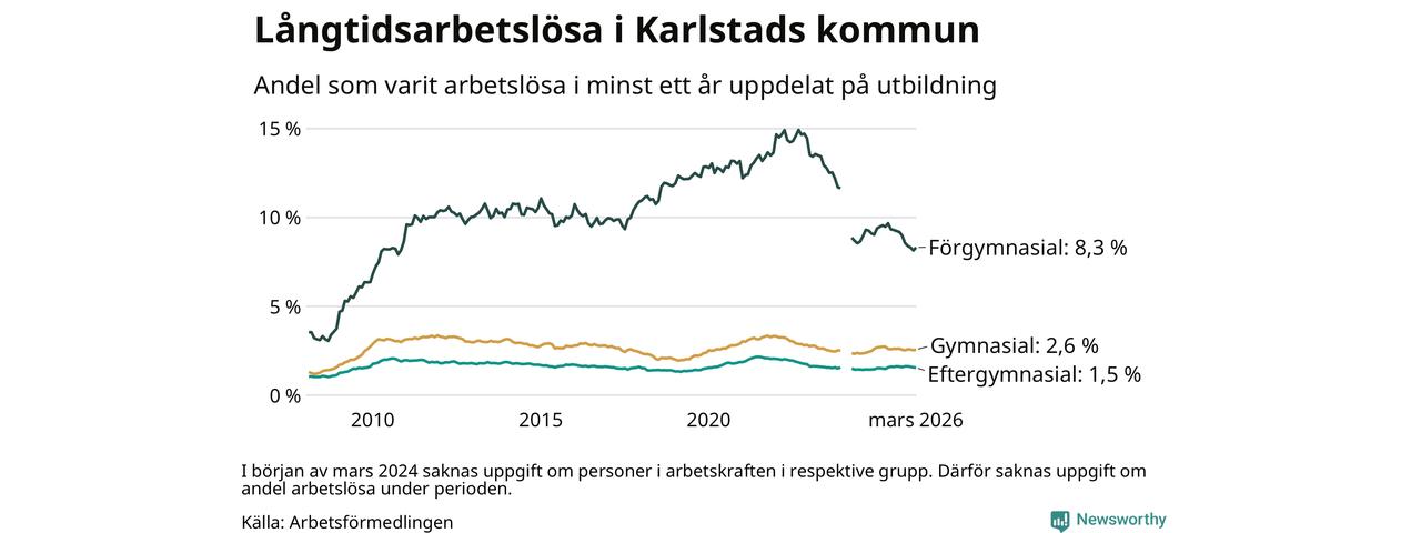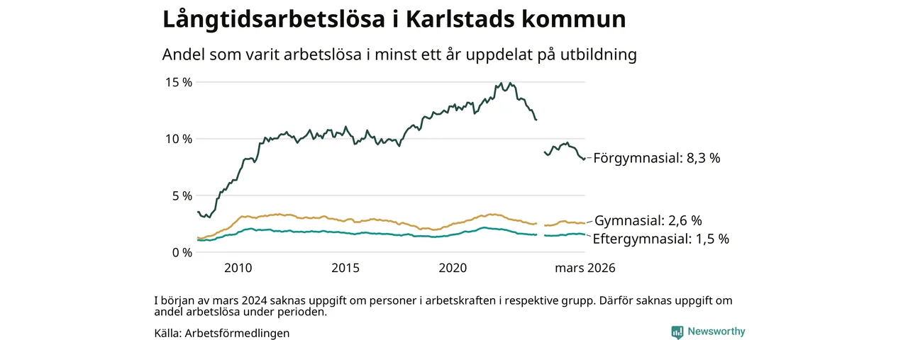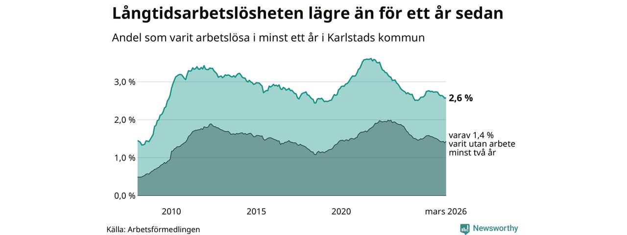 Långtidsarbetslöshet i Karlstad i mars 2026