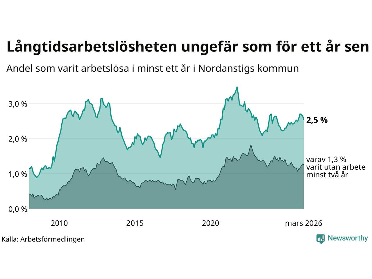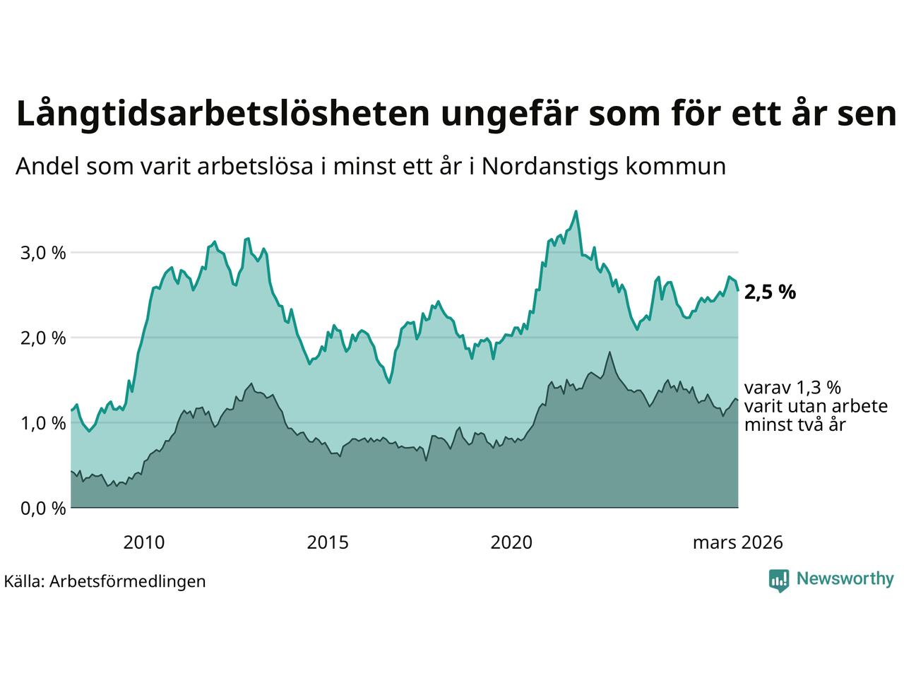 Långtidsarbetslöshet i Nordanstig i mars 2026