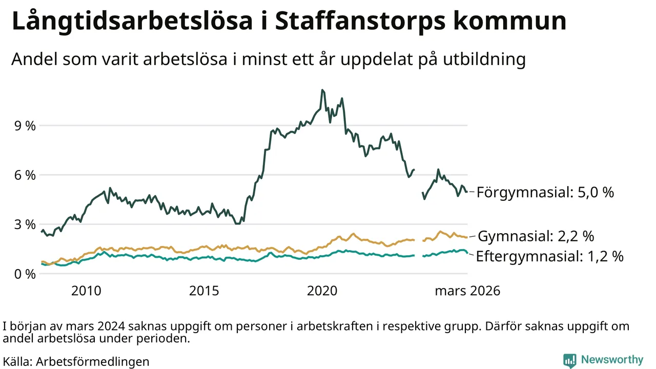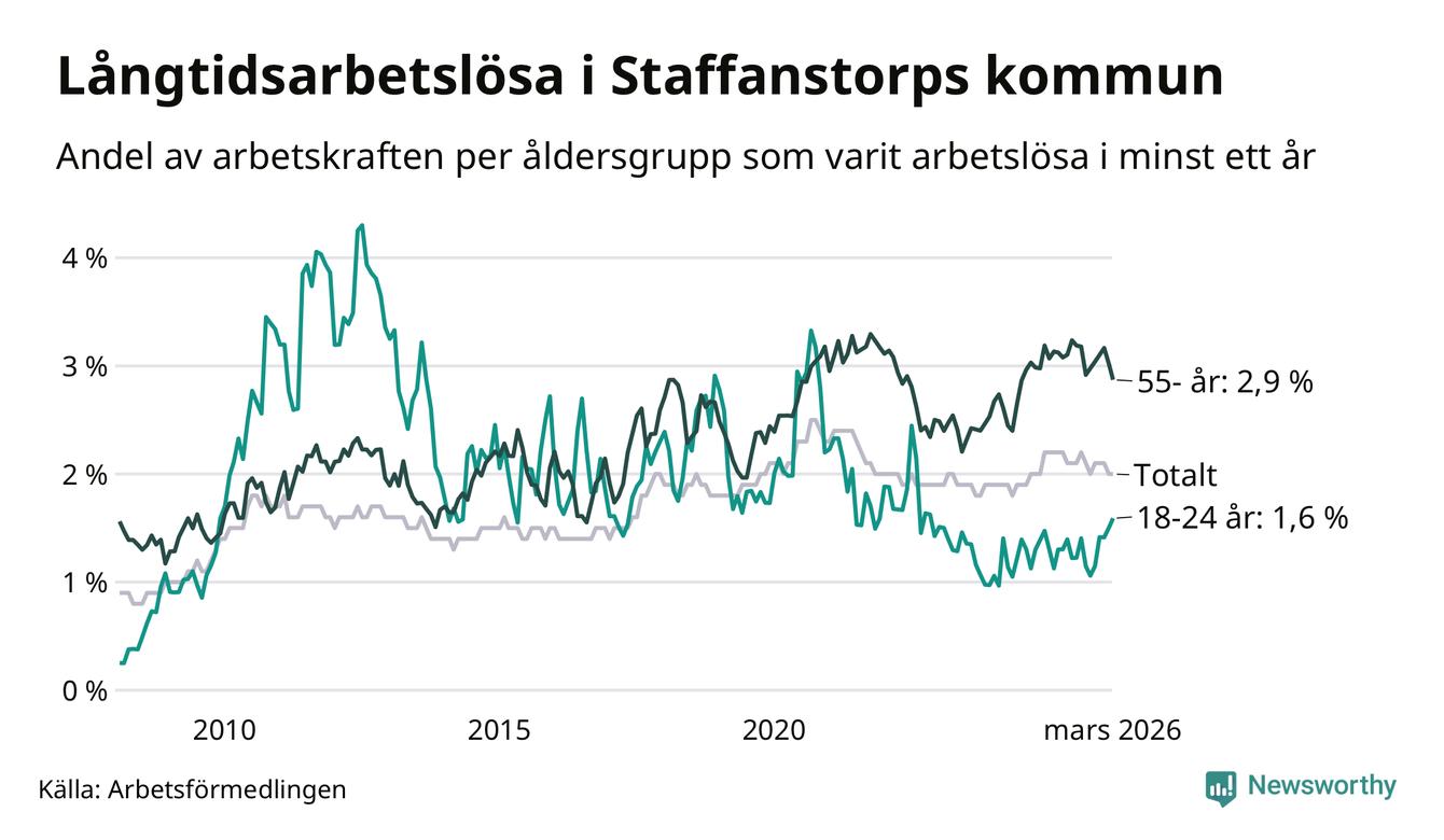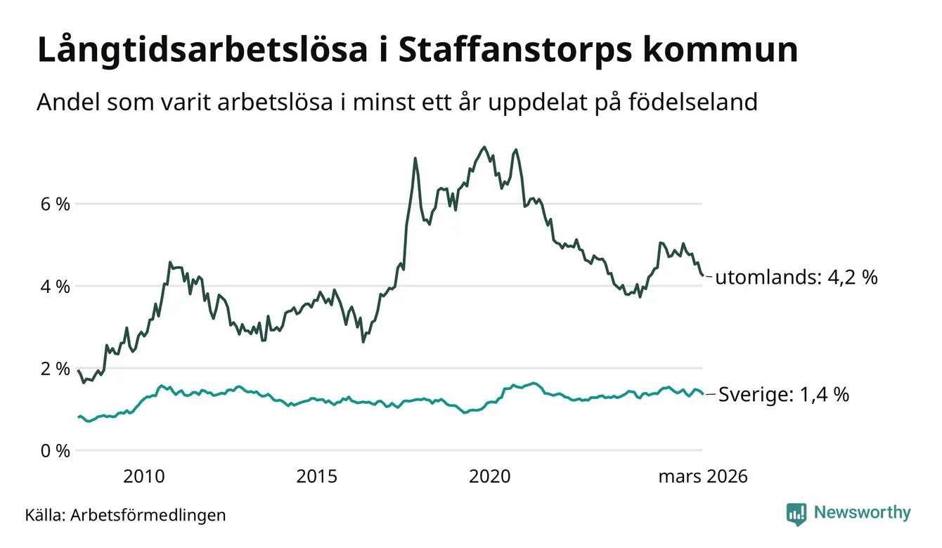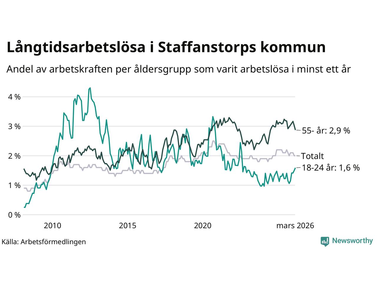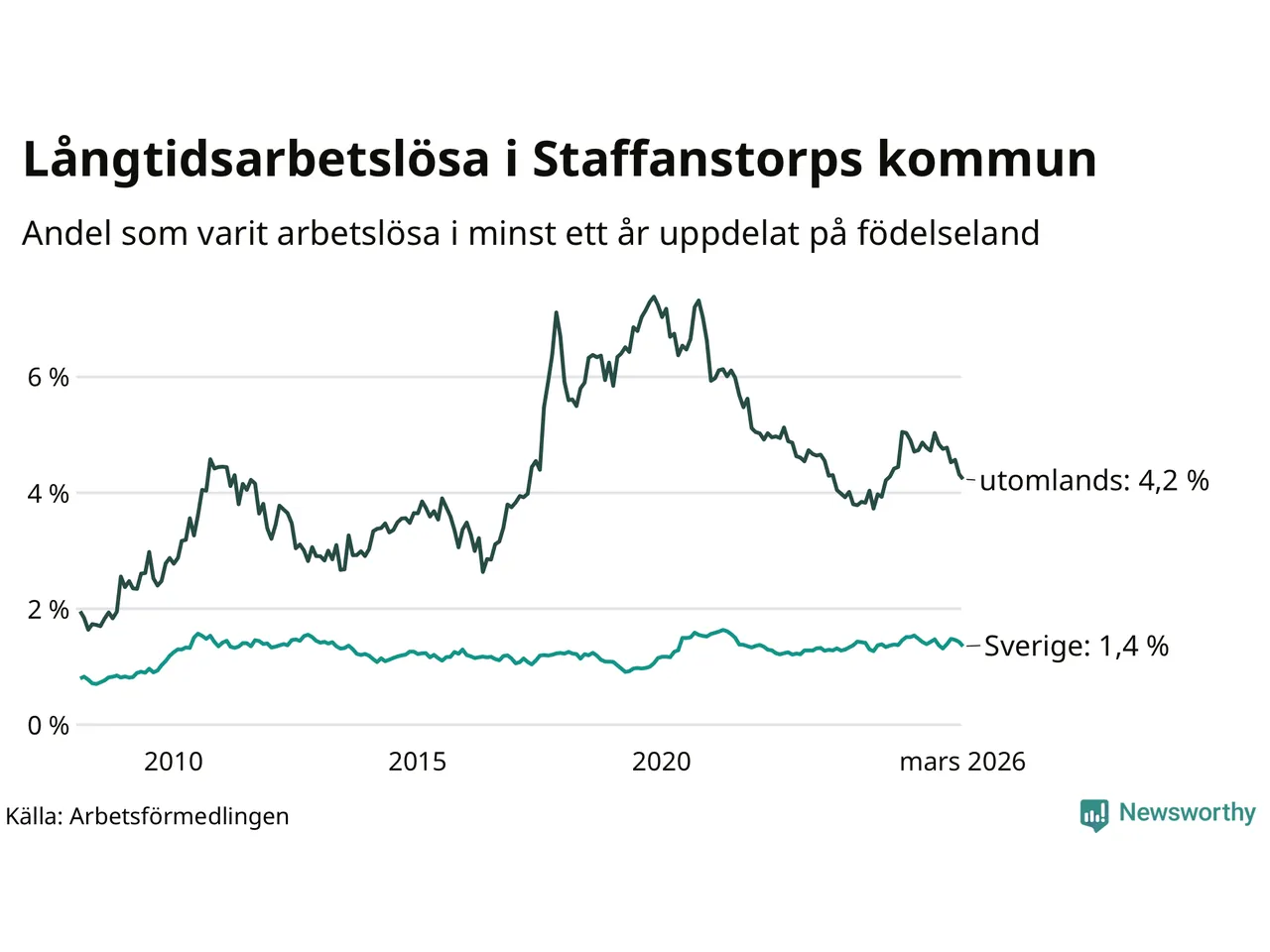 Långtidsarbetslöshet i Staffanstorp i mars 2026