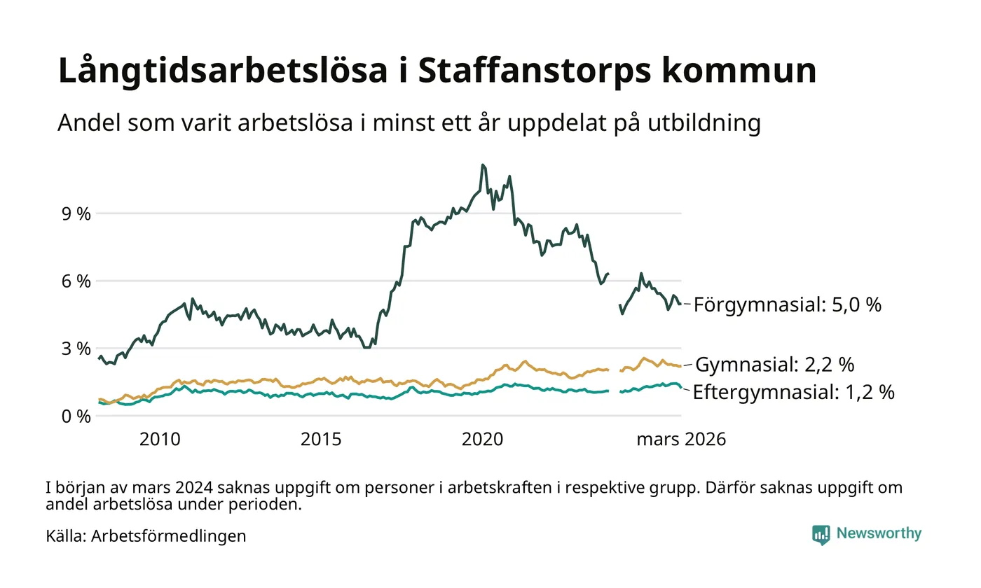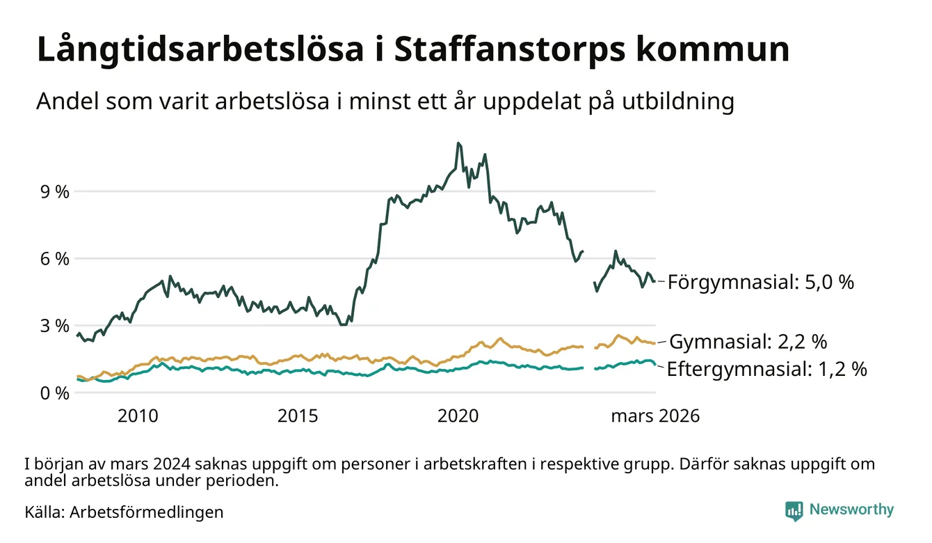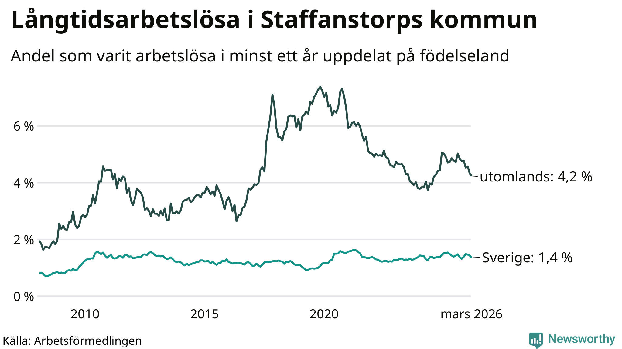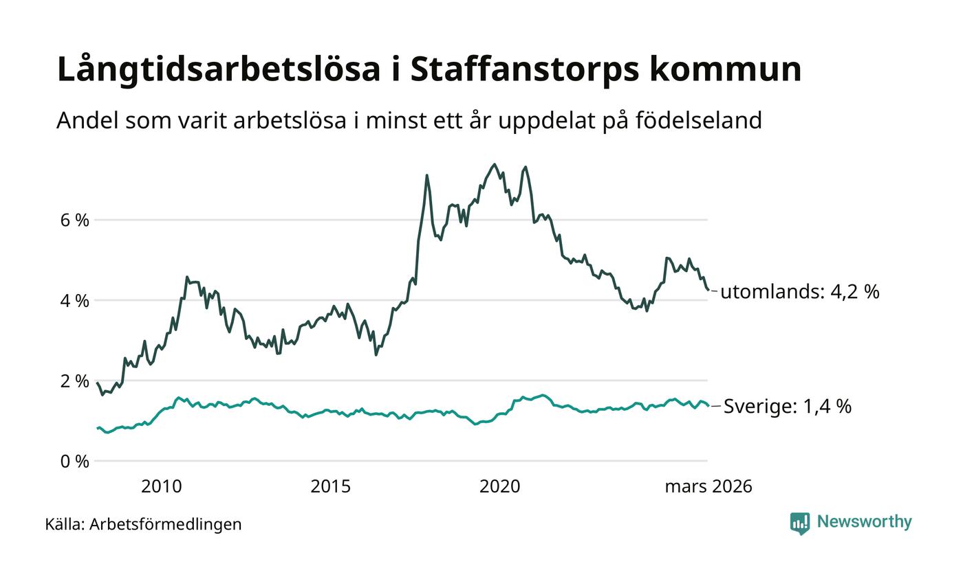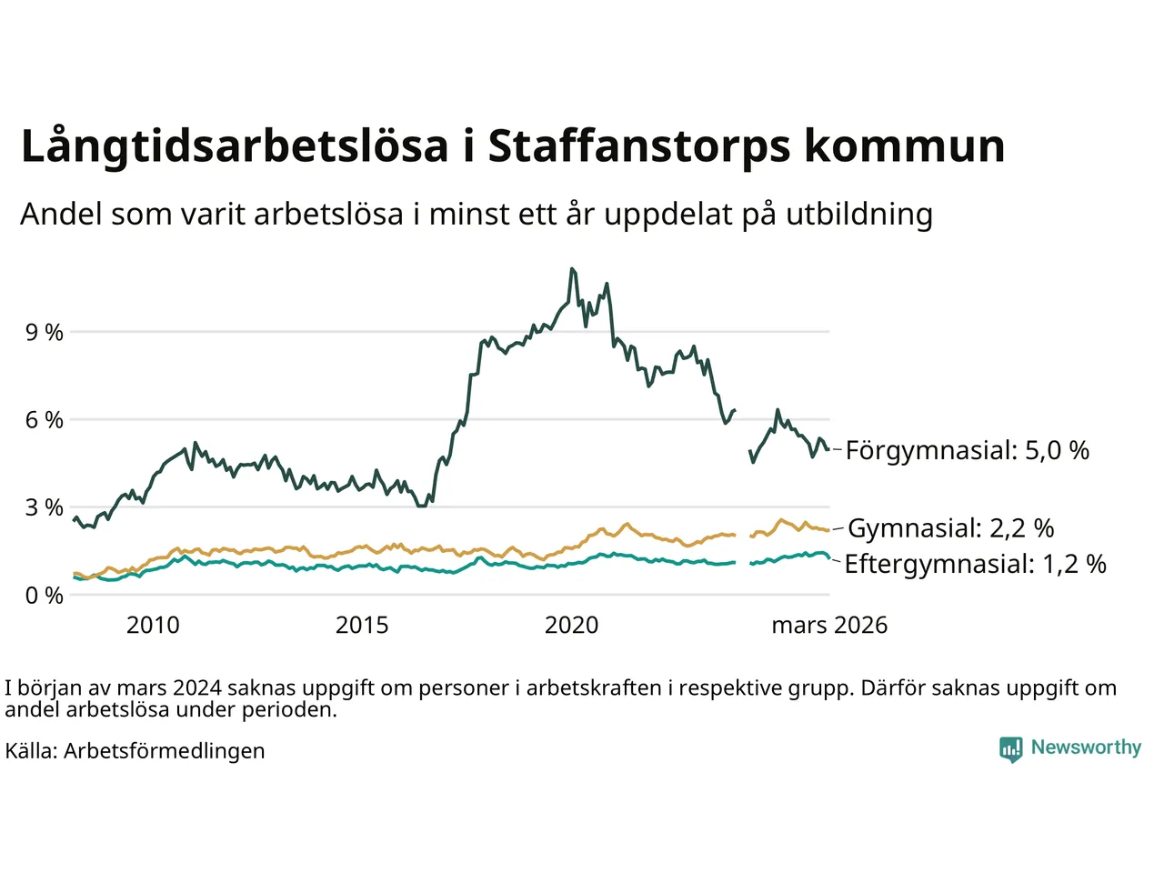 Långtidsarbetslöshet i Staffanstorp i mars 2026