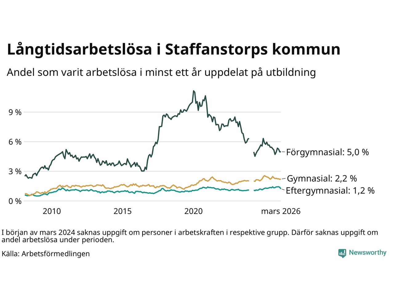 Graf: Andel arbetslösa i Staffanstorp som varit utan arbete i minst 12 månader