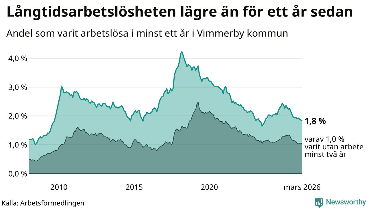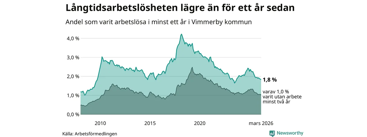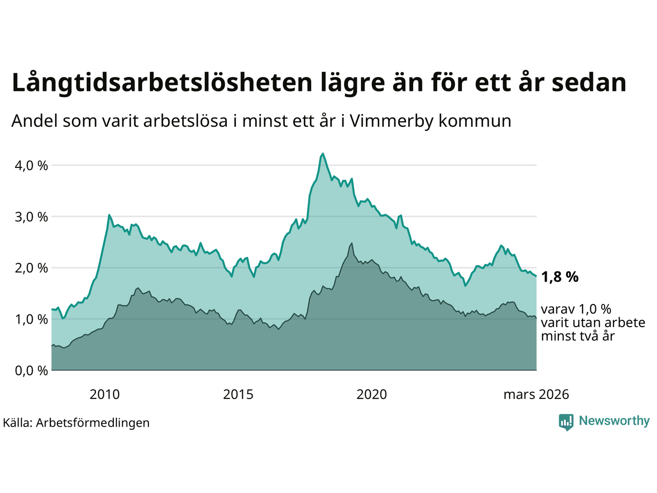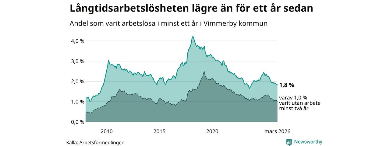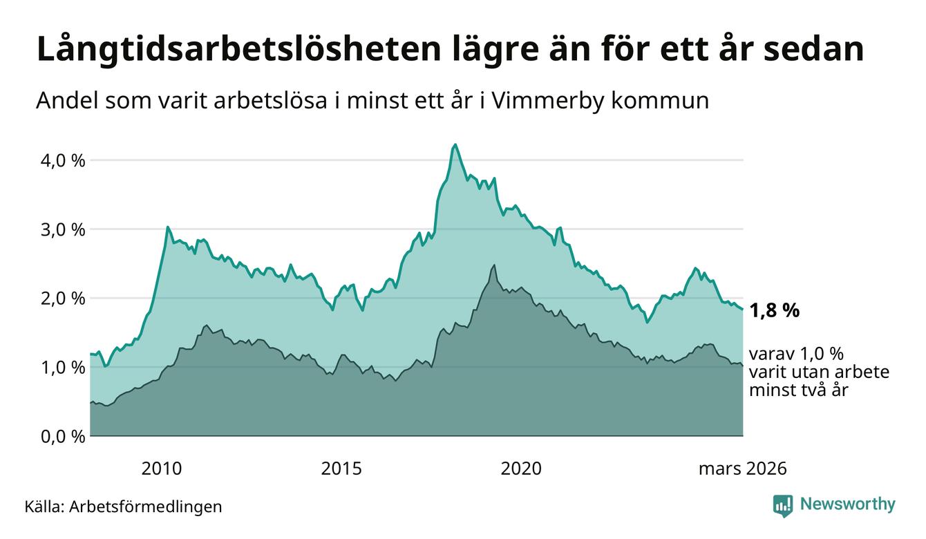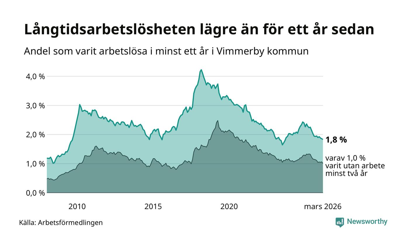 Inte sedan september 2023 har andelen långtidsarbetslösa varit så låg i Vimmerby. Det visar Arbetsförmedlingens senaste månadsstatistik.