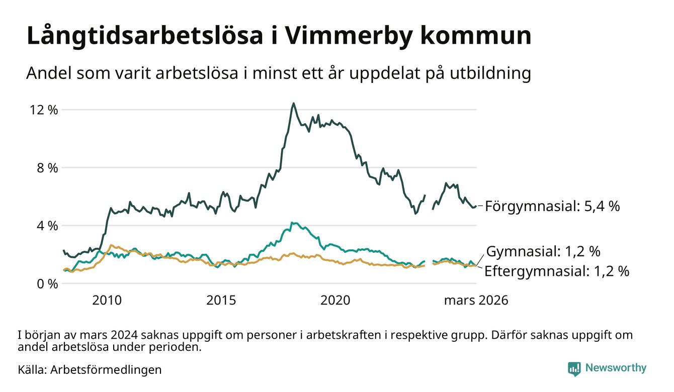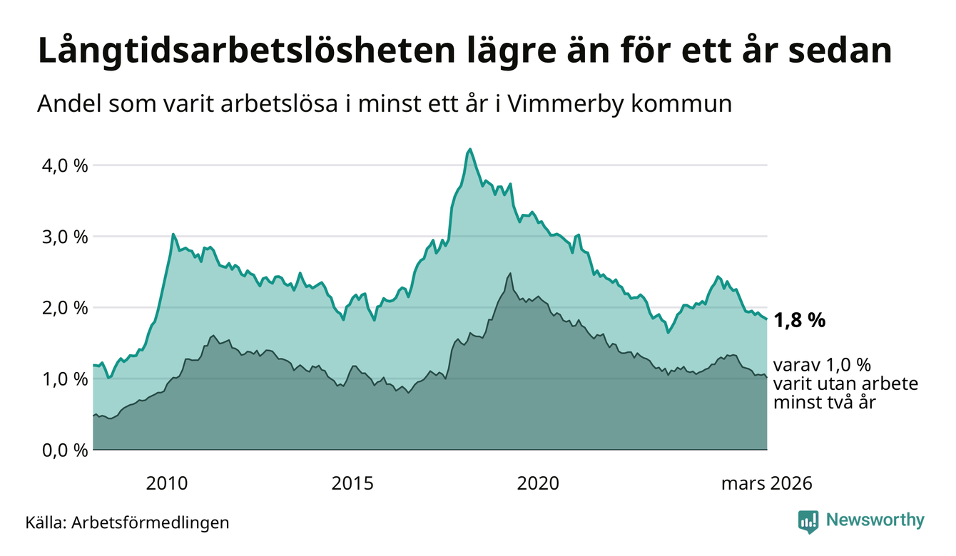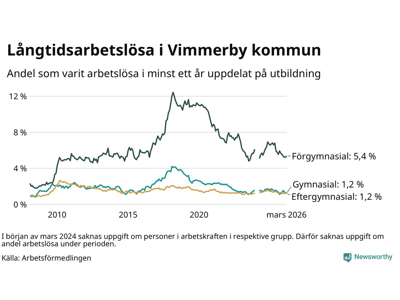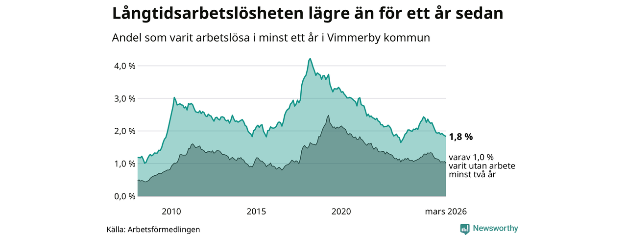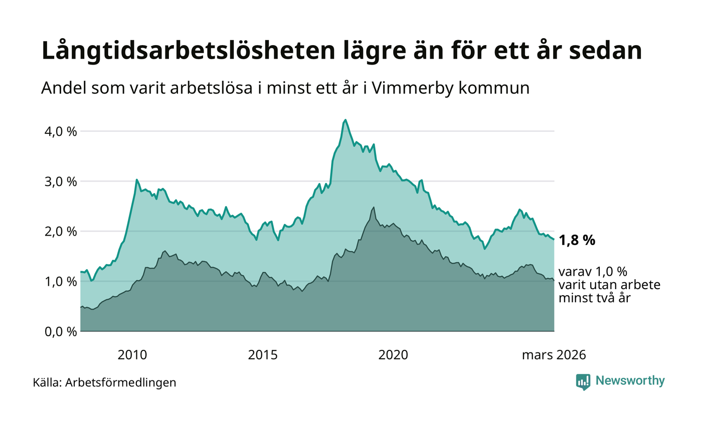 Inte sedan september 2023 har andelen långtidsarbetslösa varit så låg i Vimmerby. Det visar Arbetsförmedlingens senaste månadsstatistik.