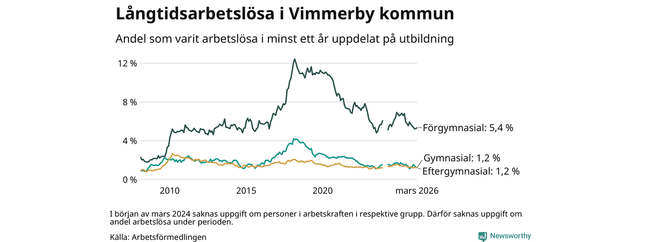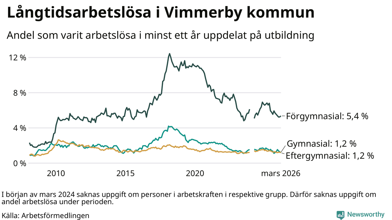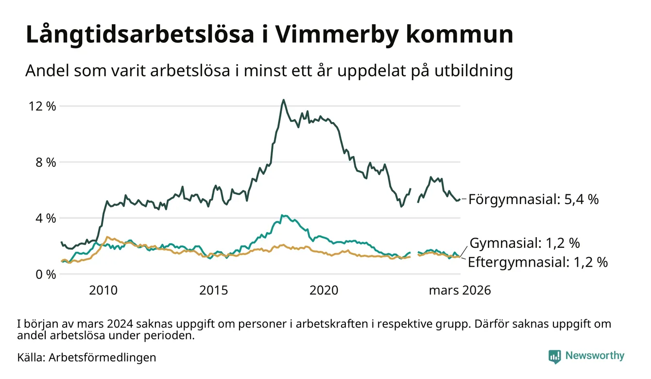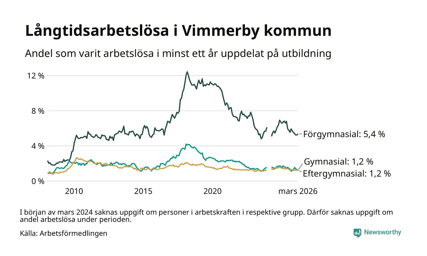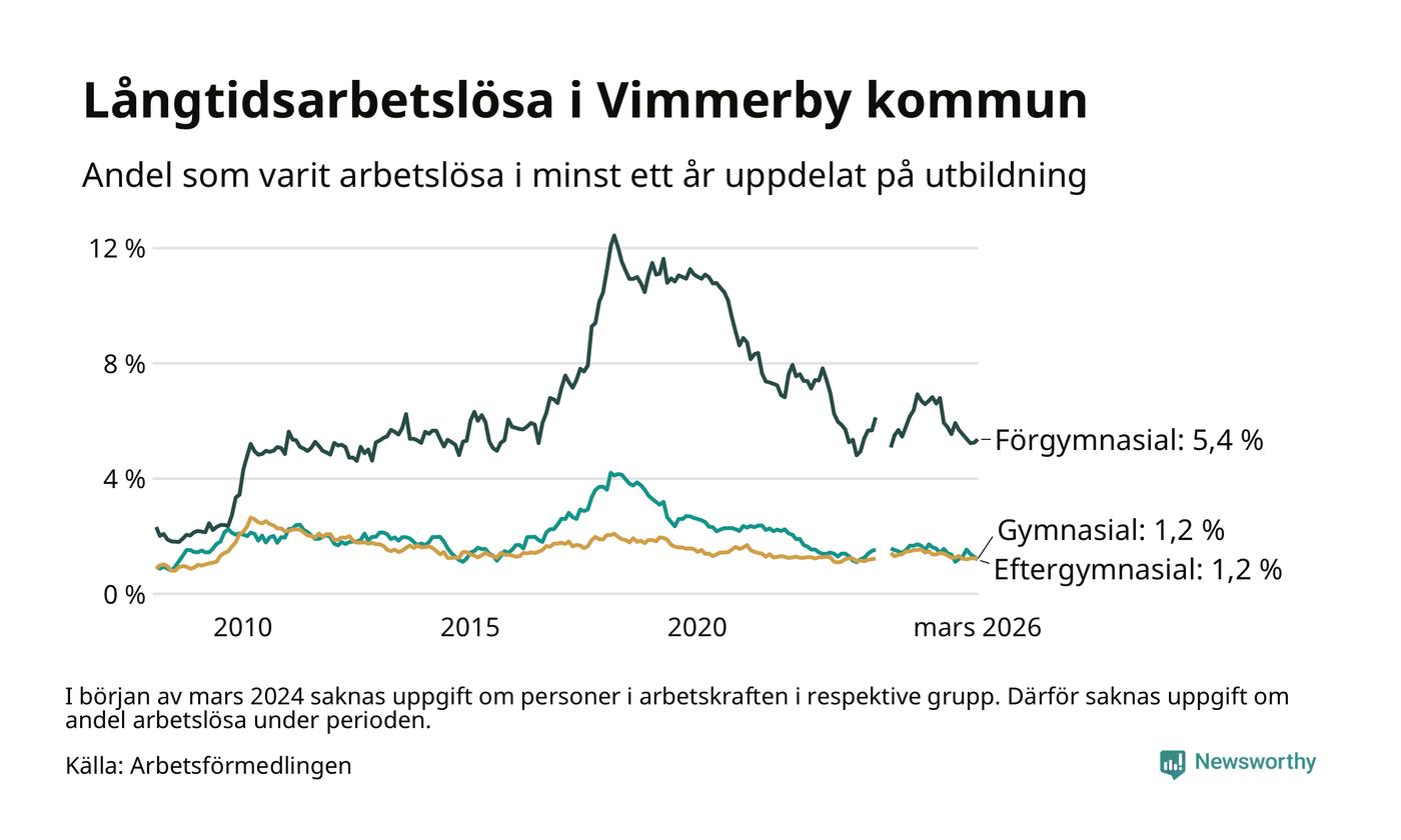 Inte sedan september 2023 har andelen långtidsarbetslösa varit så låg i Vimmerby. Det visar Arbetsförmedlingens senaste månadsstatistik.
