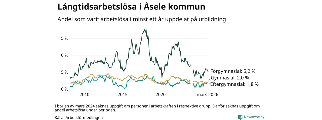 Långtidsarbetslöshet i Åsele i mars 2026