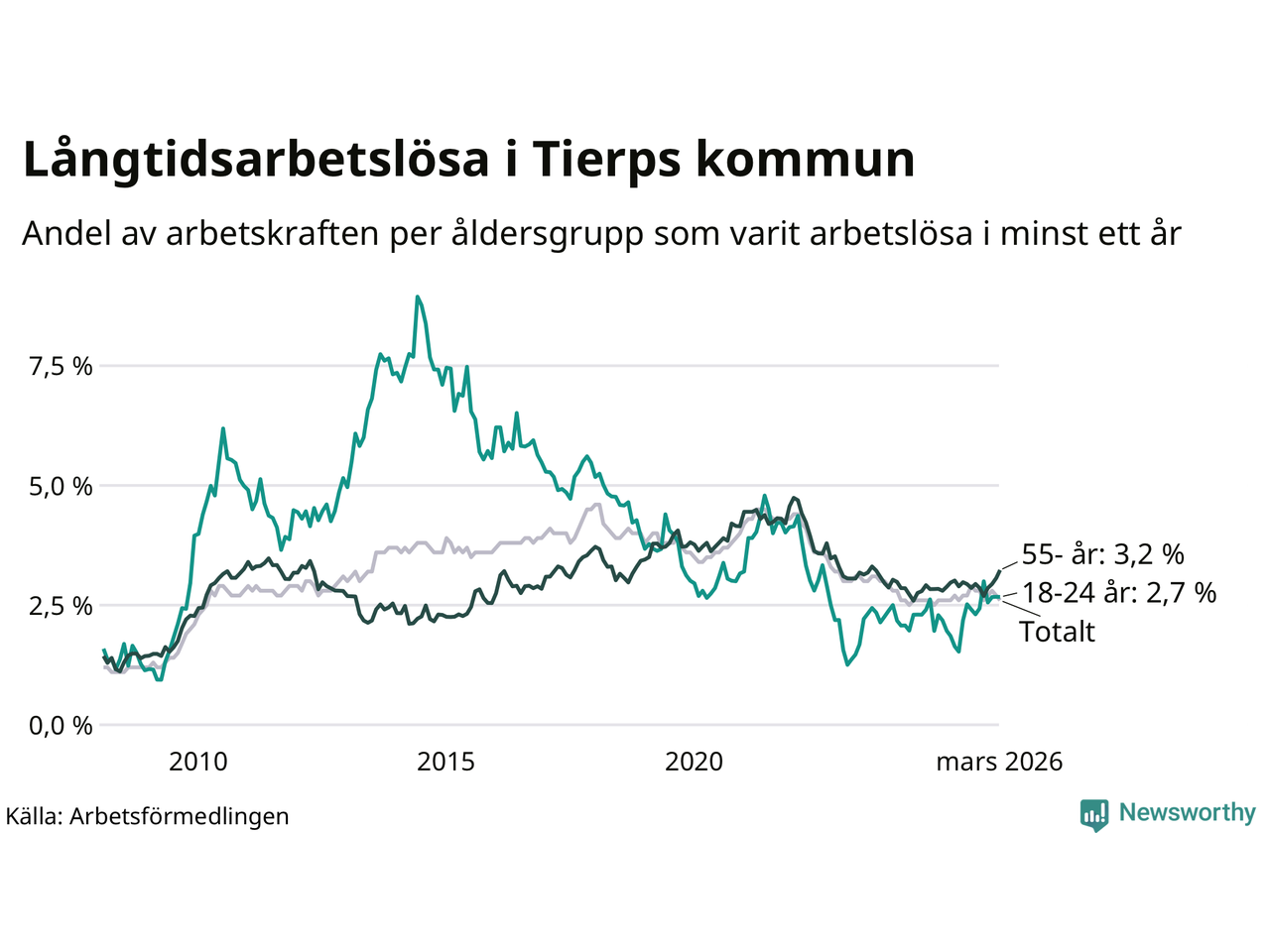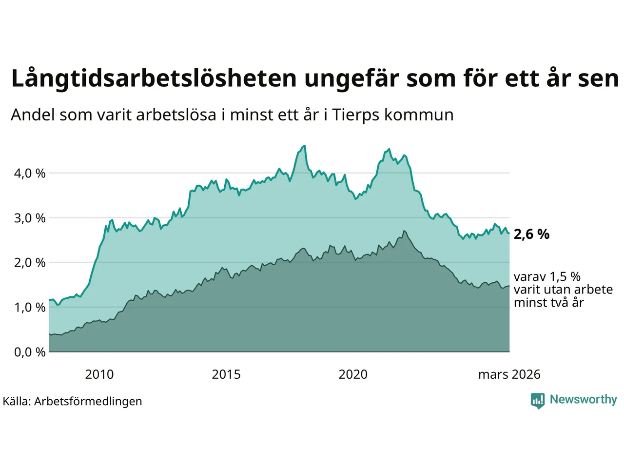 | Andel arbetslösa i minst ett år | 2,6 % | 2,4 % | 2,9 % |