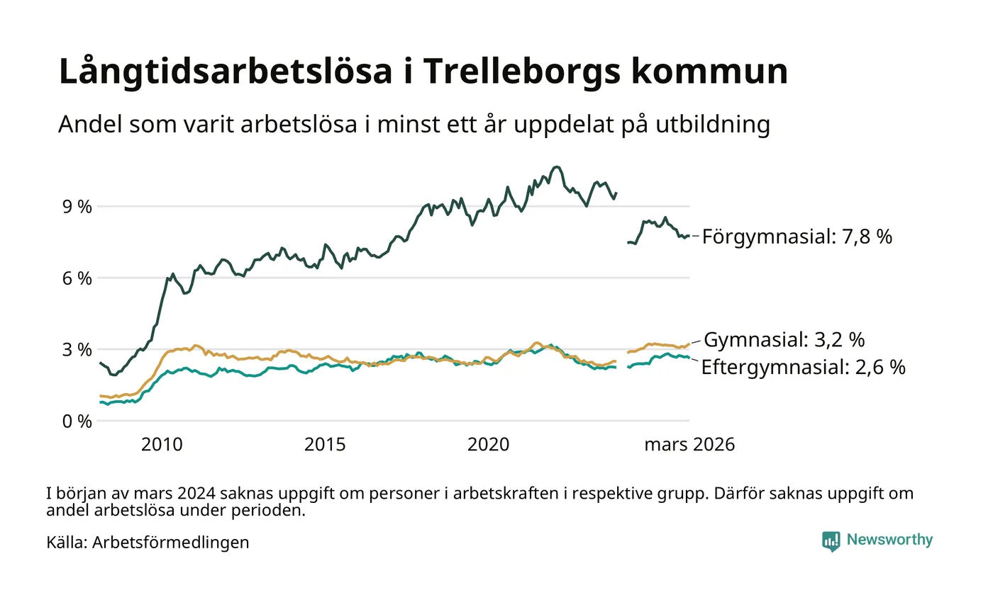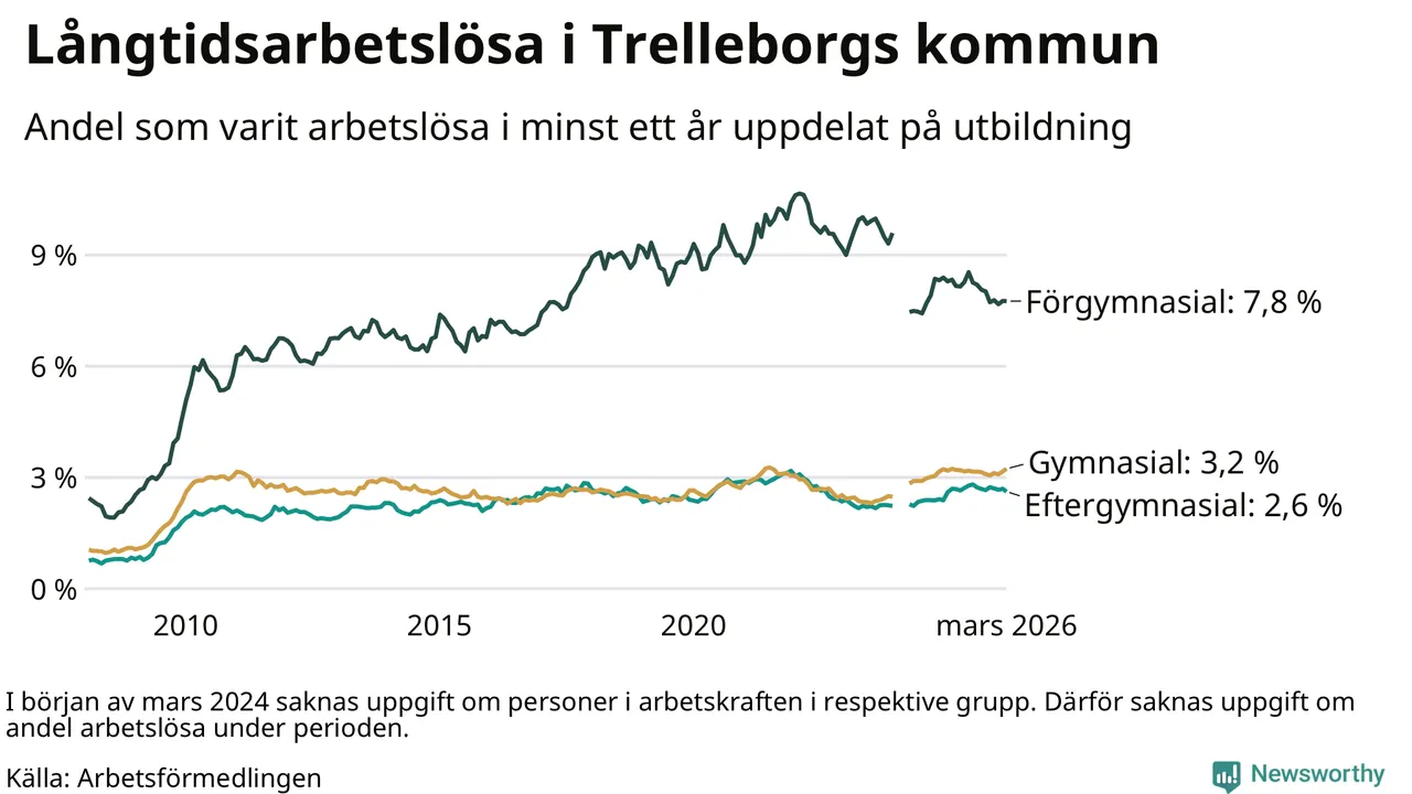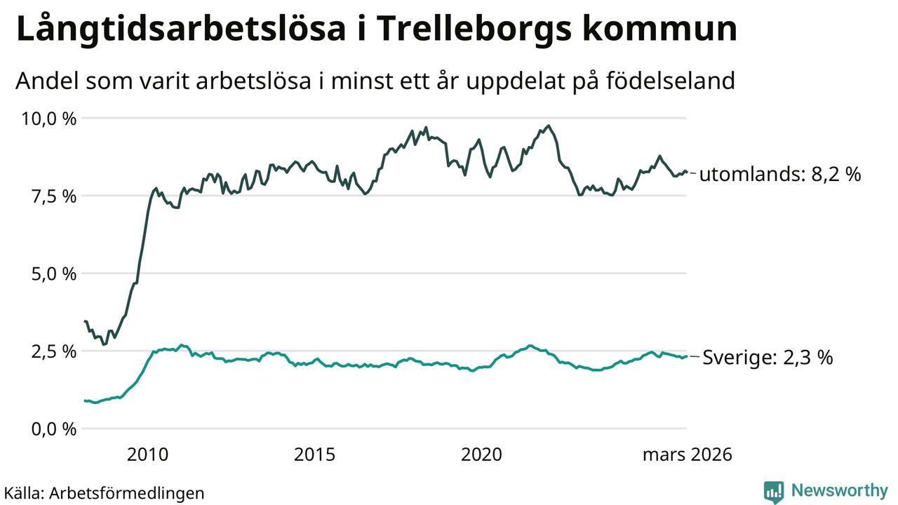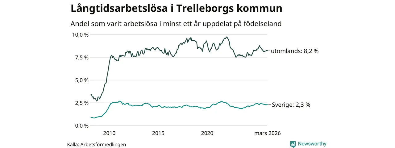 Långtidsarbetslöshet i Trelleborg i mars 2026