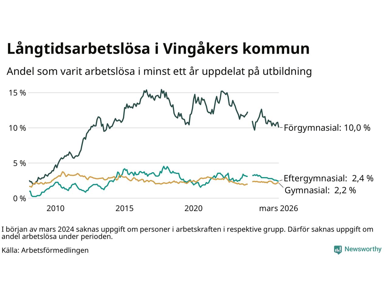 | Andel arbetslösa i minst två år | 2,2 % | 2,4 % | 1,6 % |