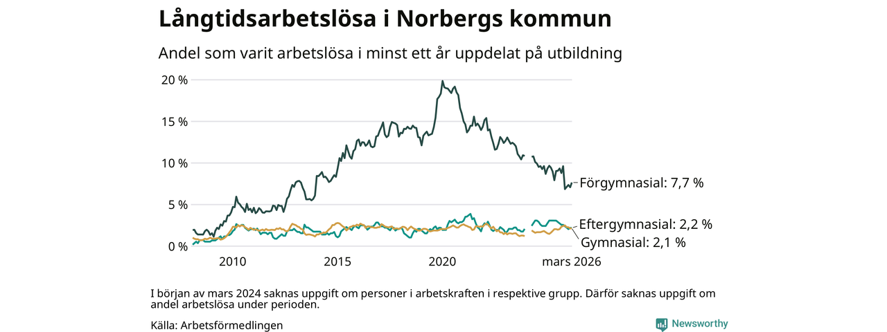 Långtidsarbetslöshet i Norberg i mars 2026