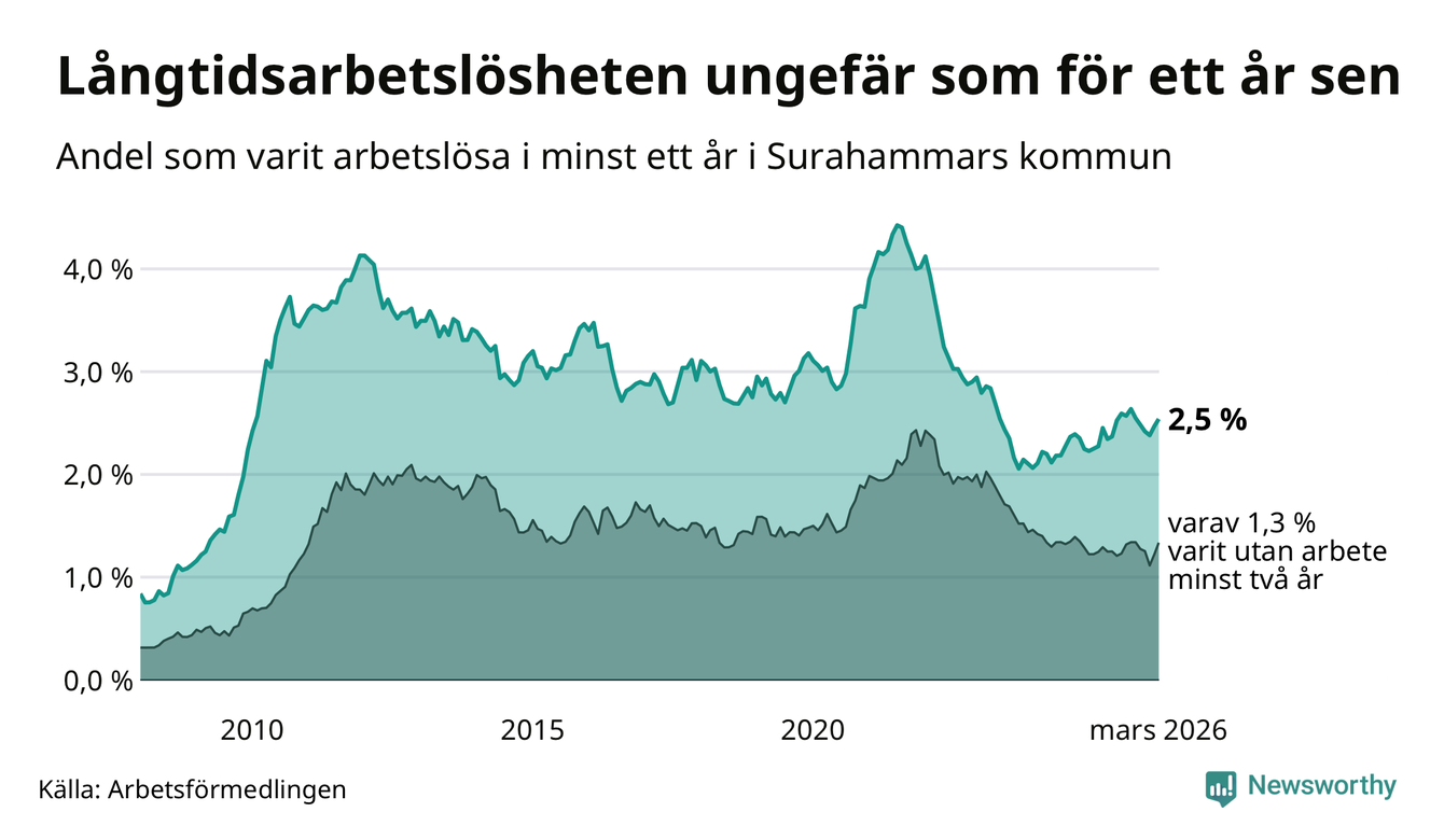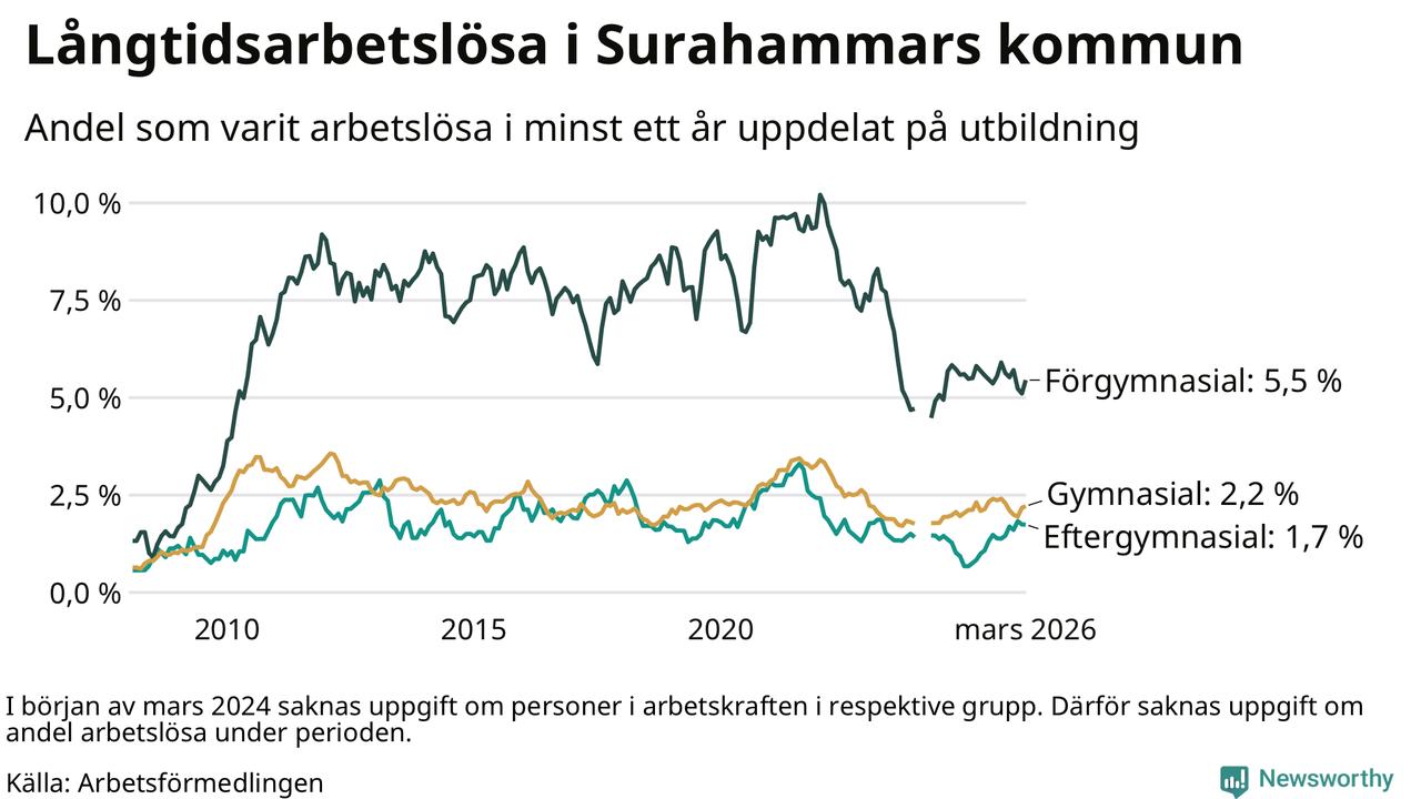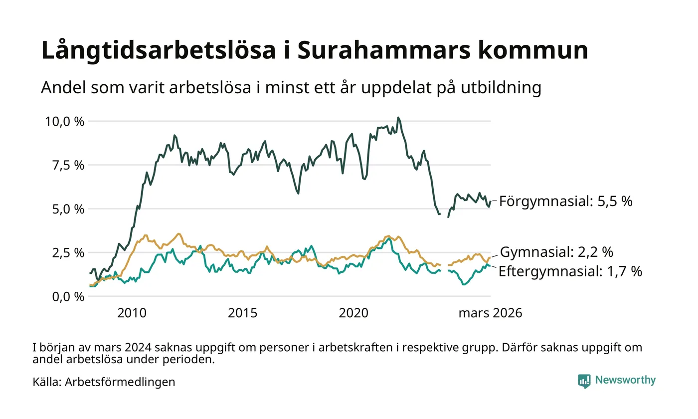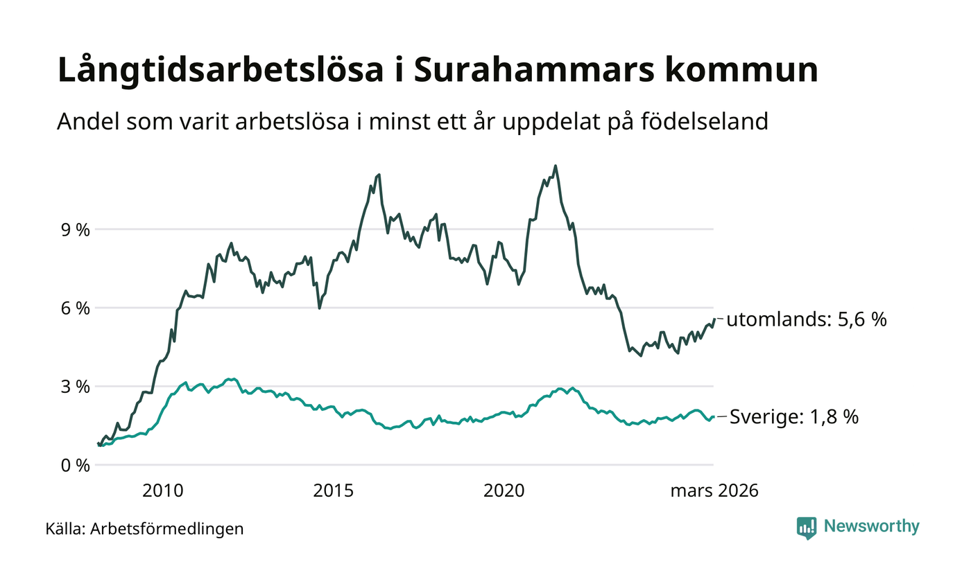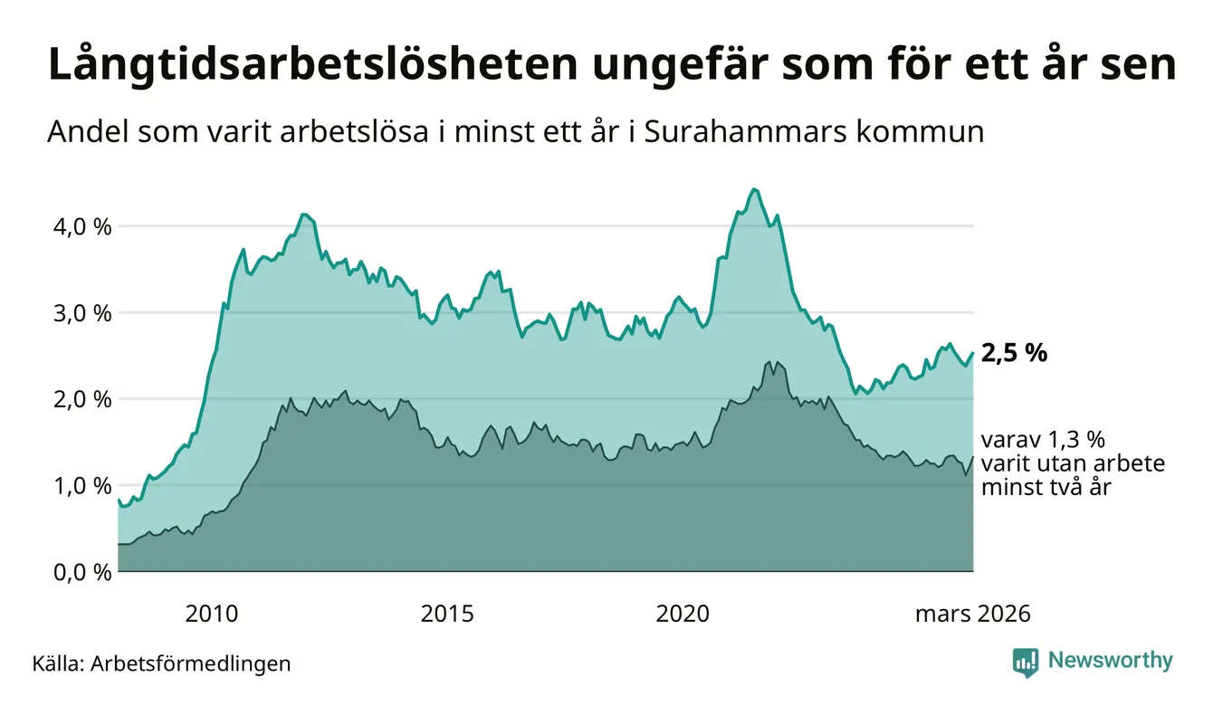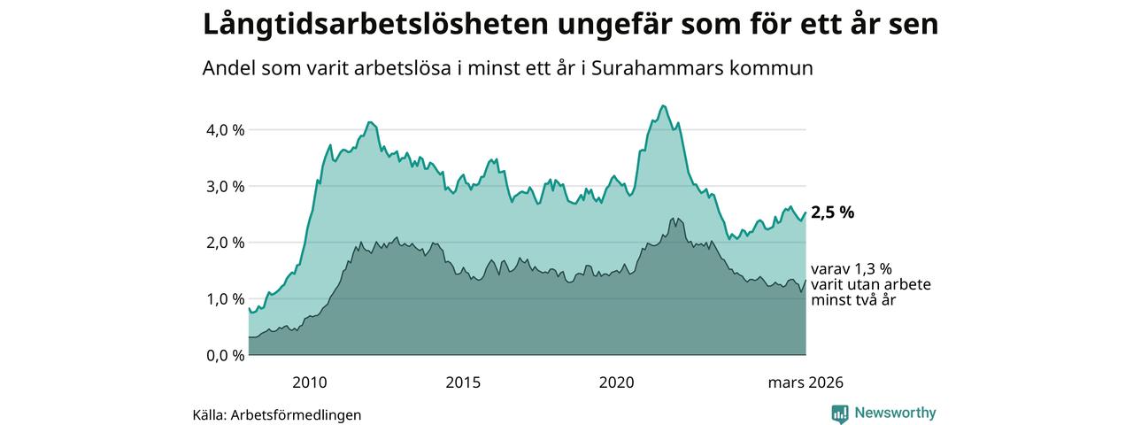 Långtidsarbetslöshet i Surahammar i mars 2026