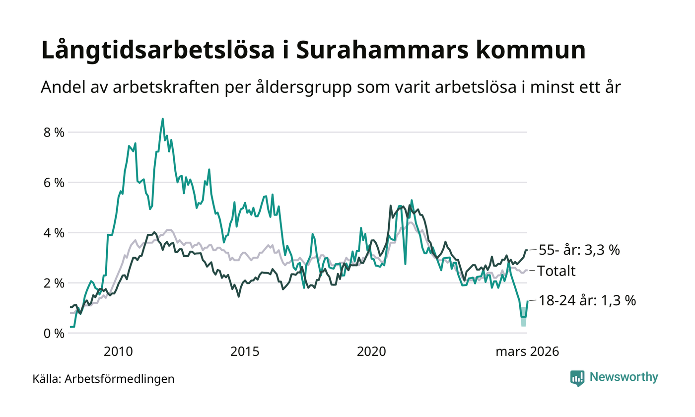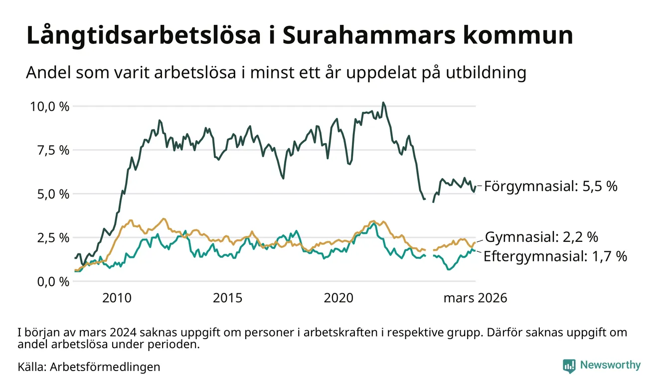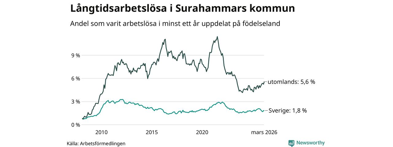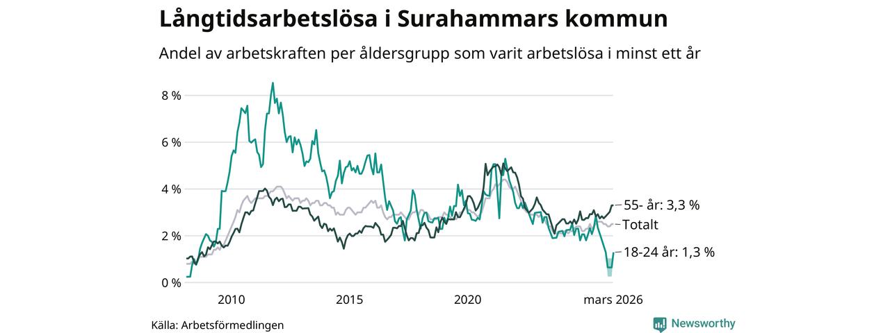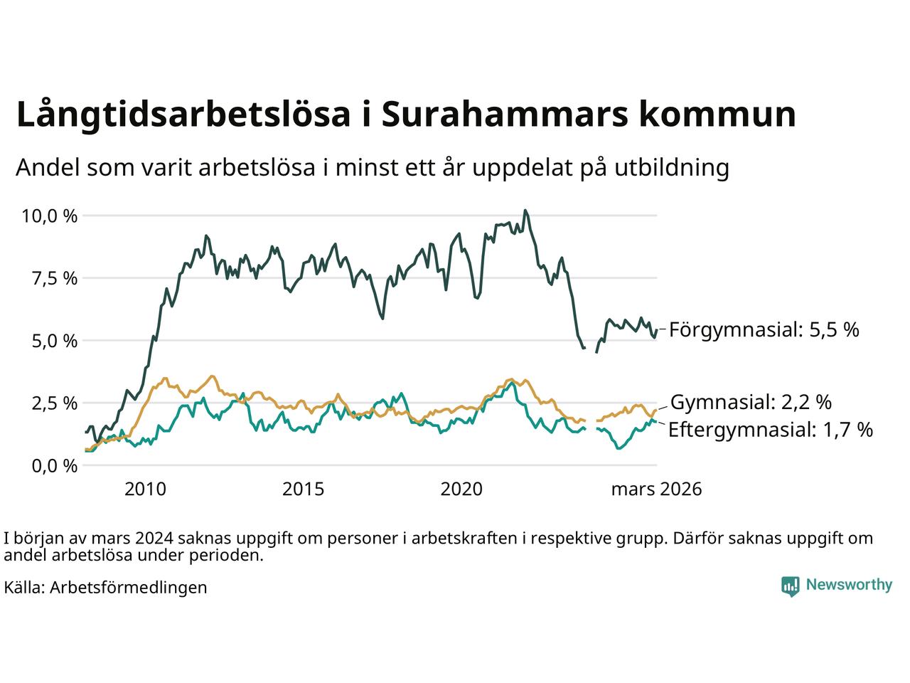 Långtidsarbetslöshet i Surahammar i mars 2026