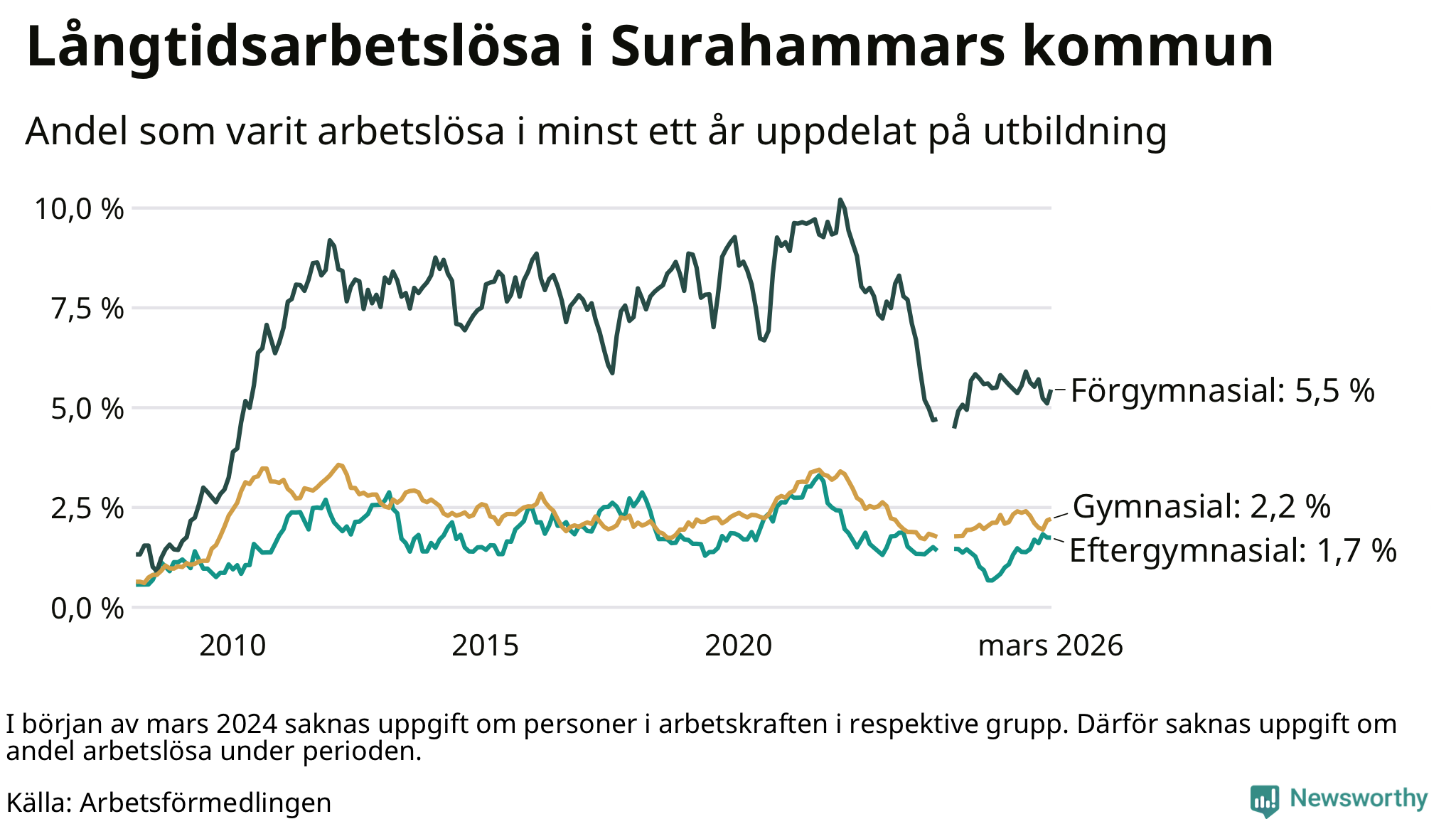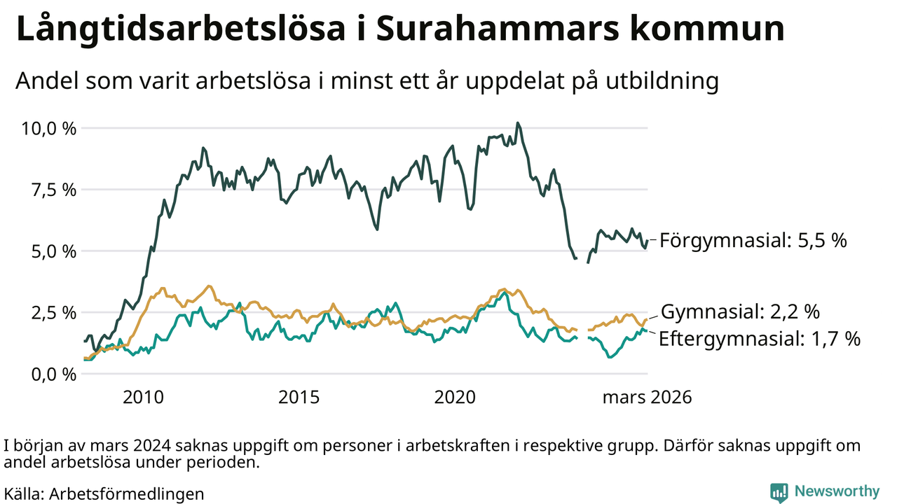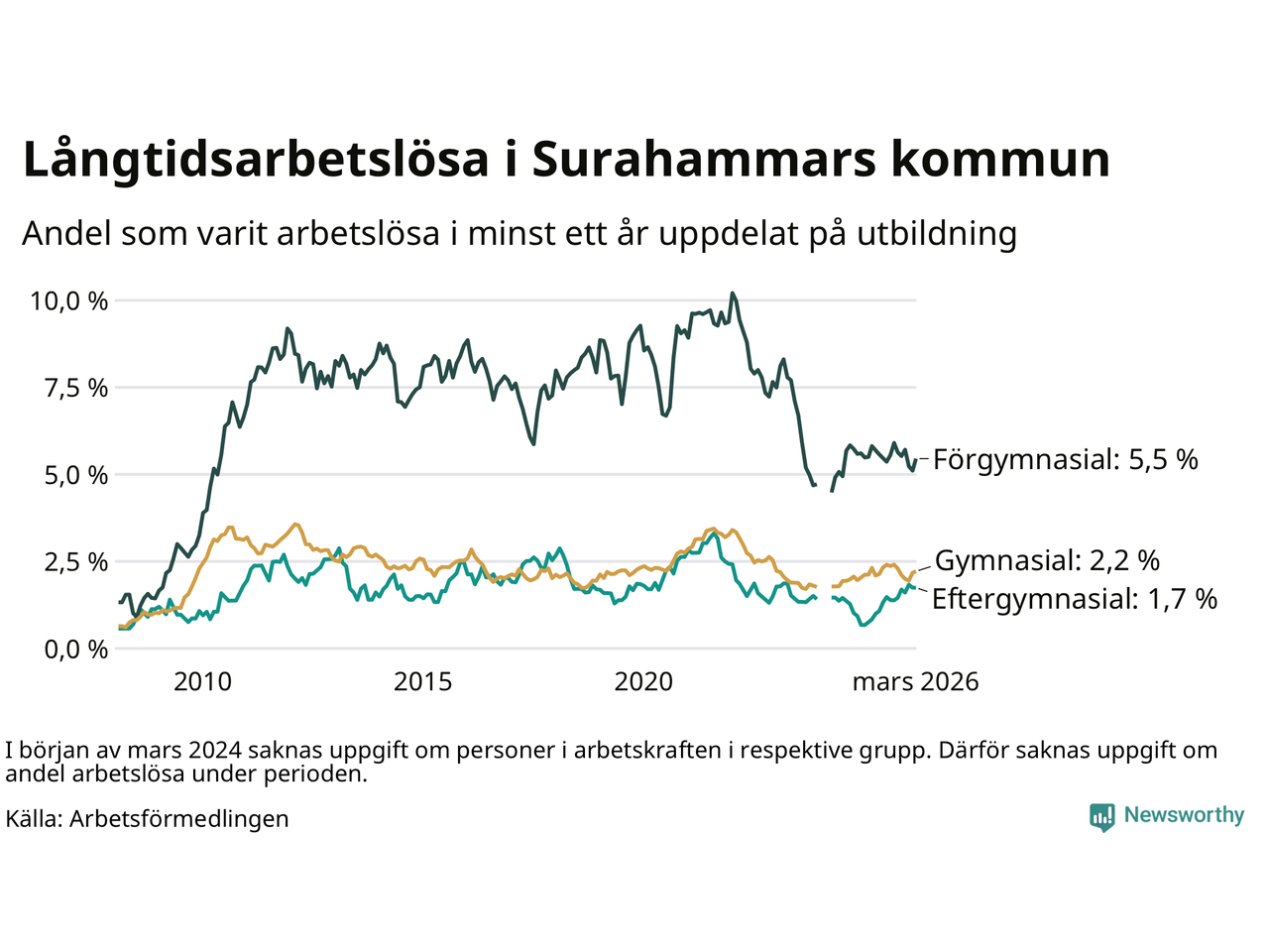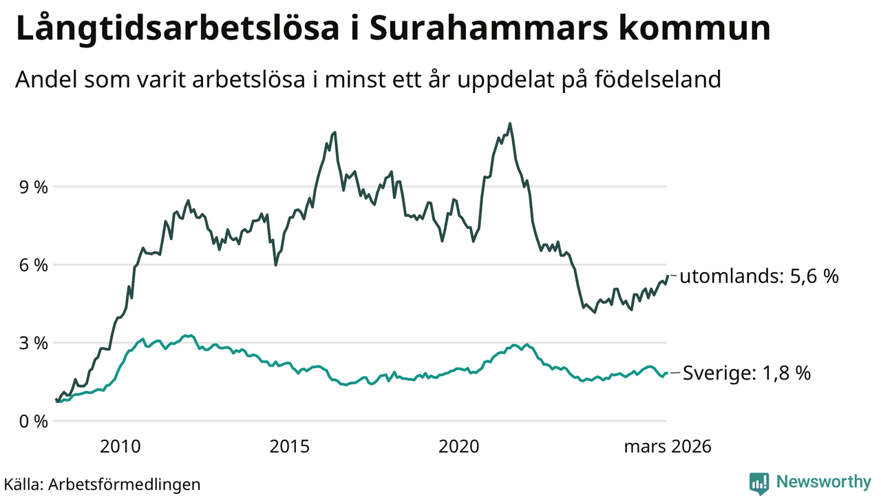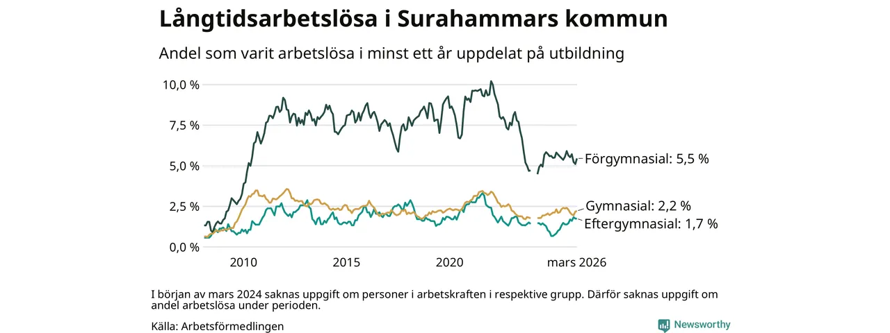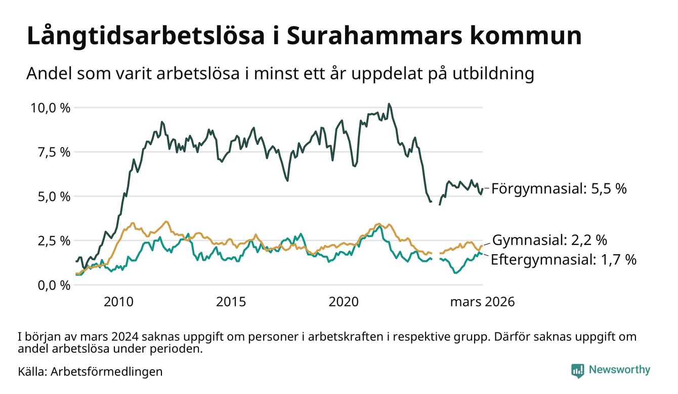 Långtidsarbetslöshet i Surahammar i mars 2026