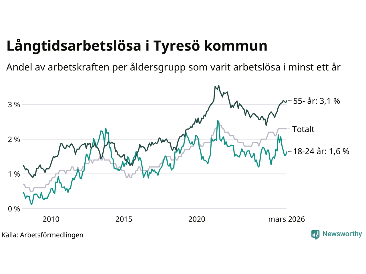 | Andel arbetslösa i minst ett år | 2,3 % | 2,9 % | 2,9 % |