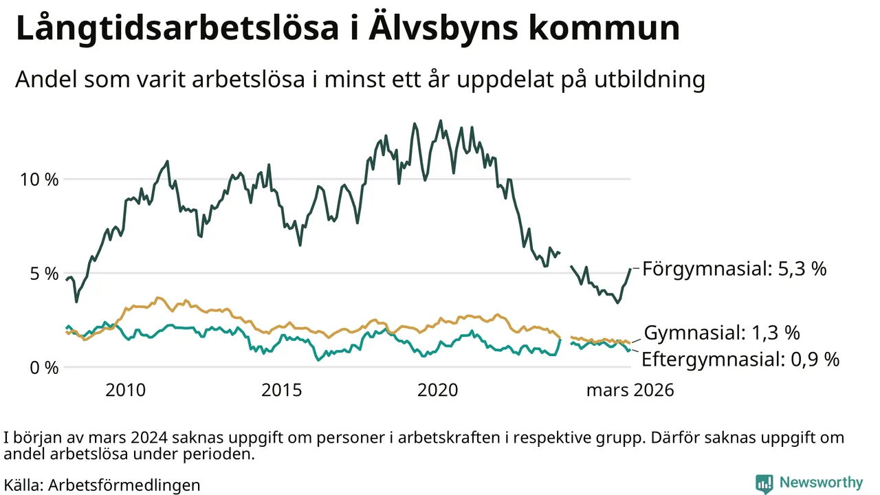 Långtidsarbetslöshet i Älvsbyn i mars 2026