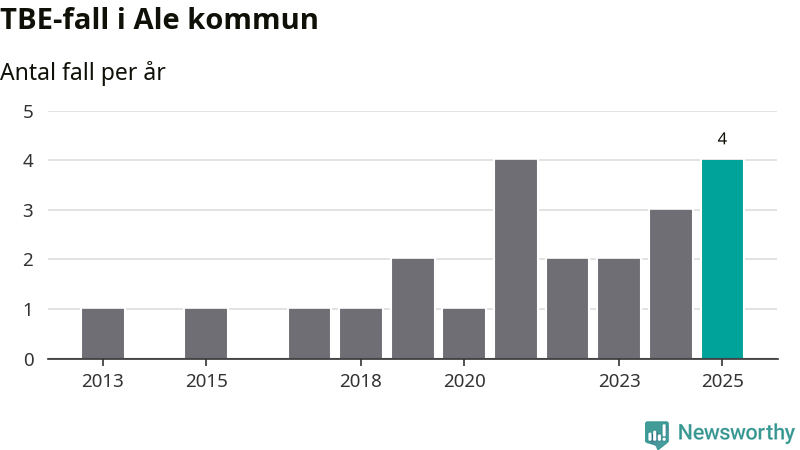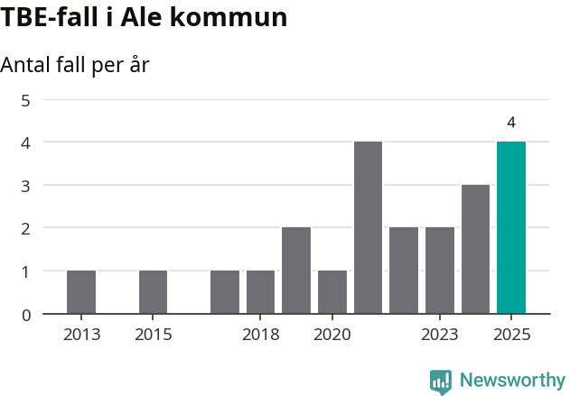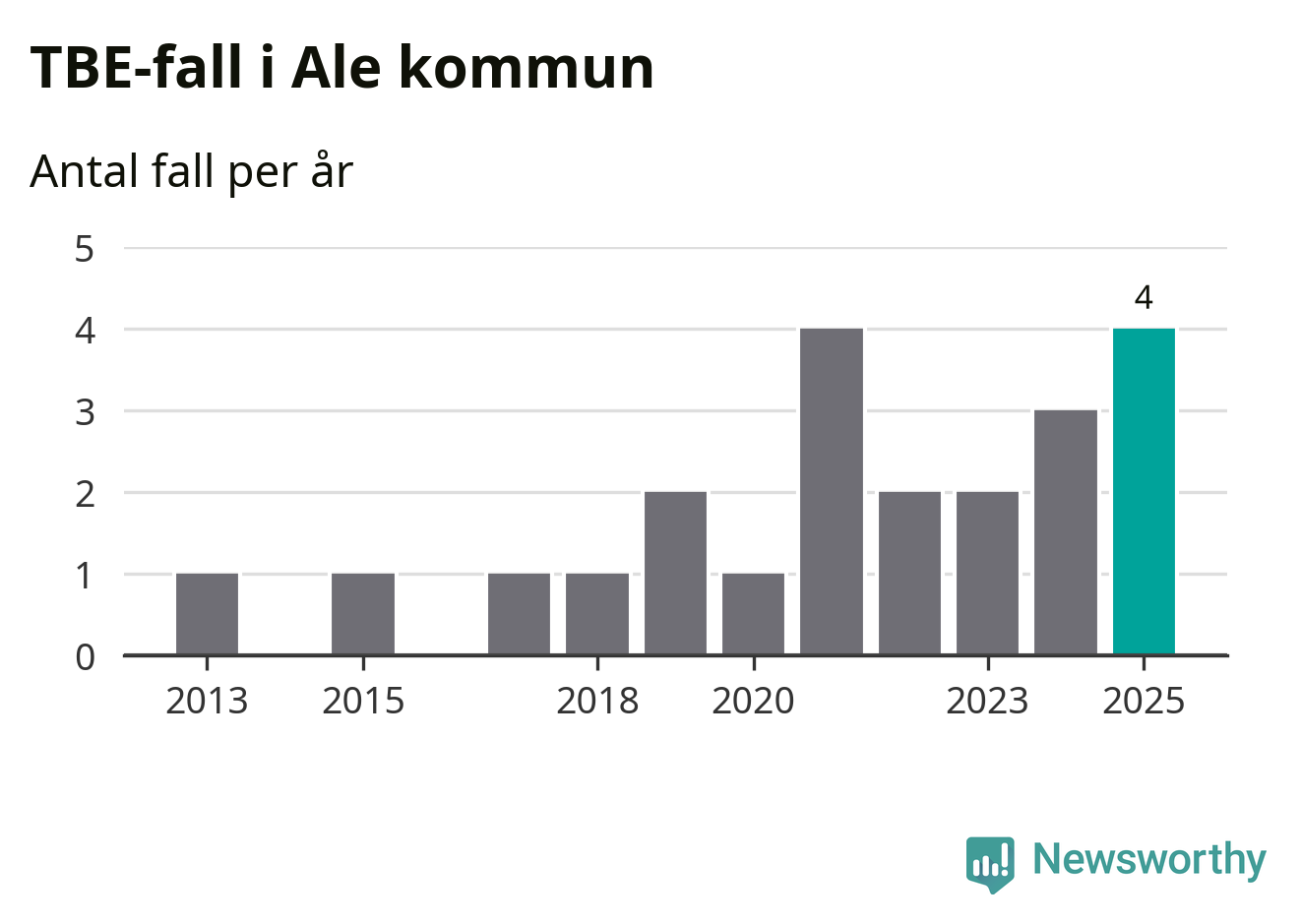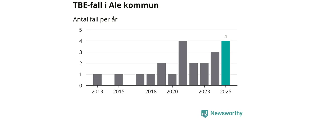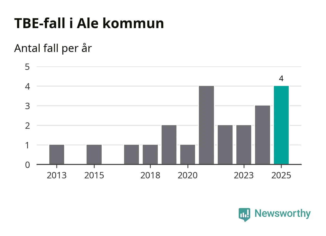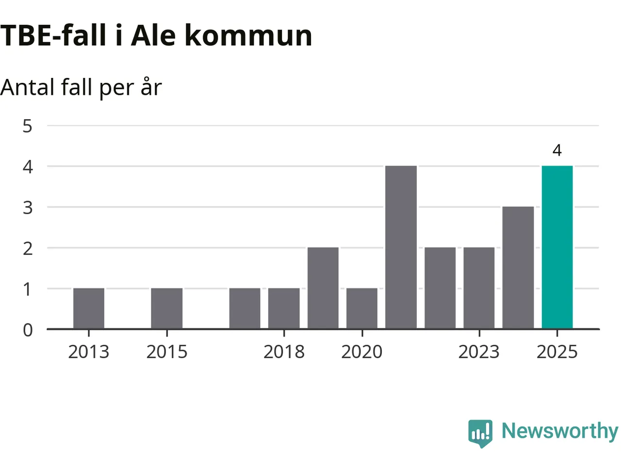 Under 2025 tillkom sju nya kommuner på den listan. Ale kommun räknas till kommunerna med förhöjd förekomst av TBE. Det gör även resten av Västra Götalands län.