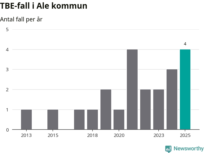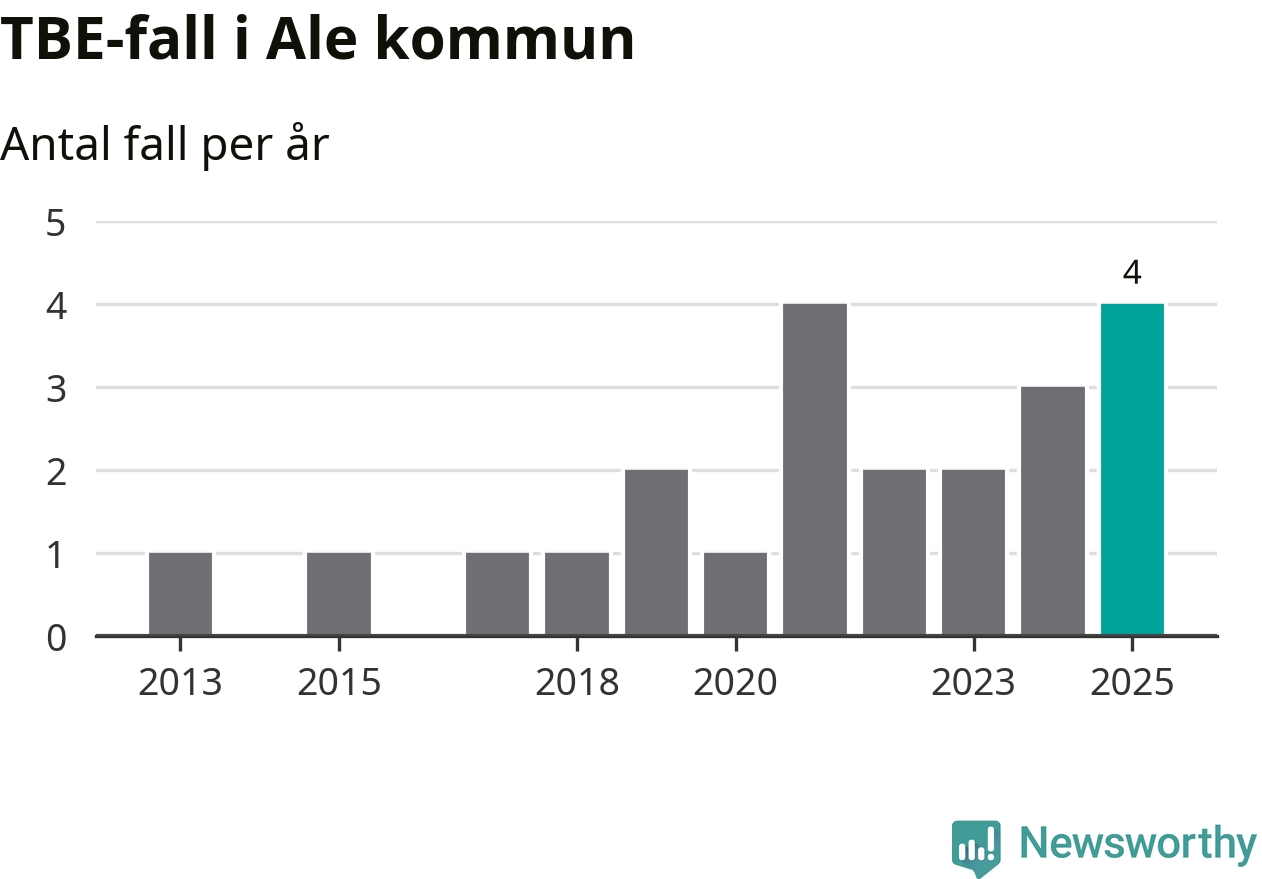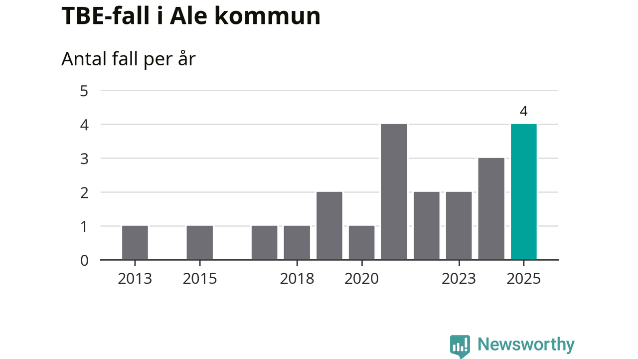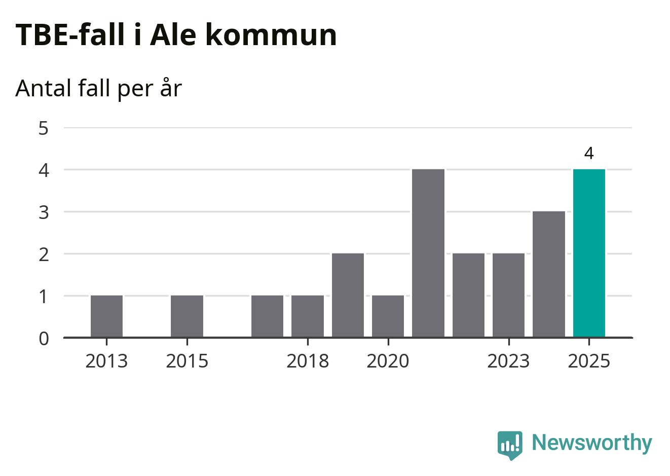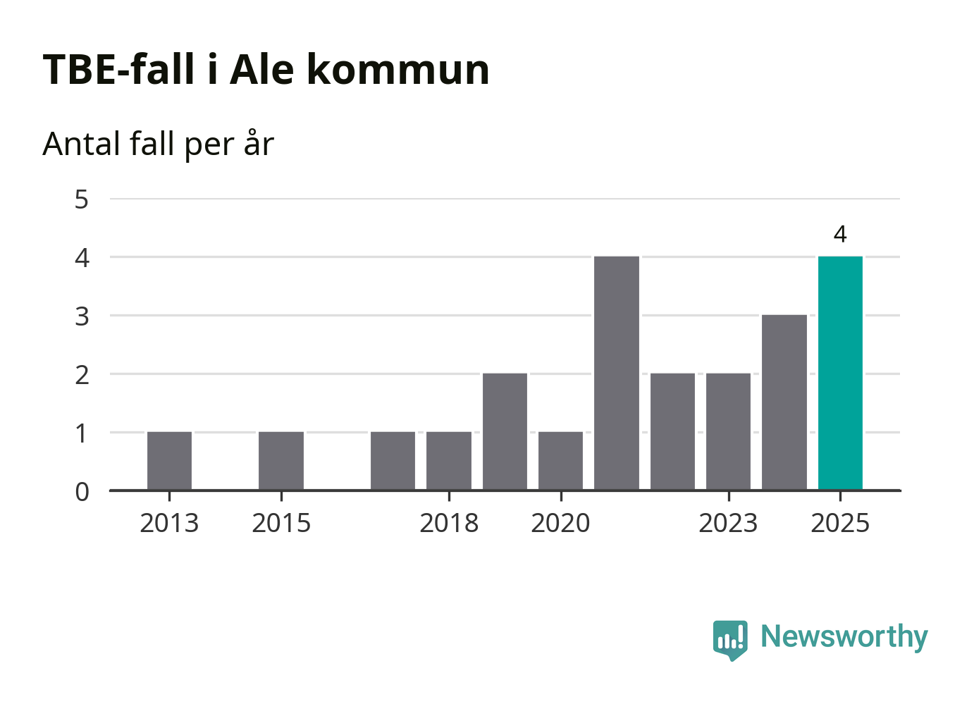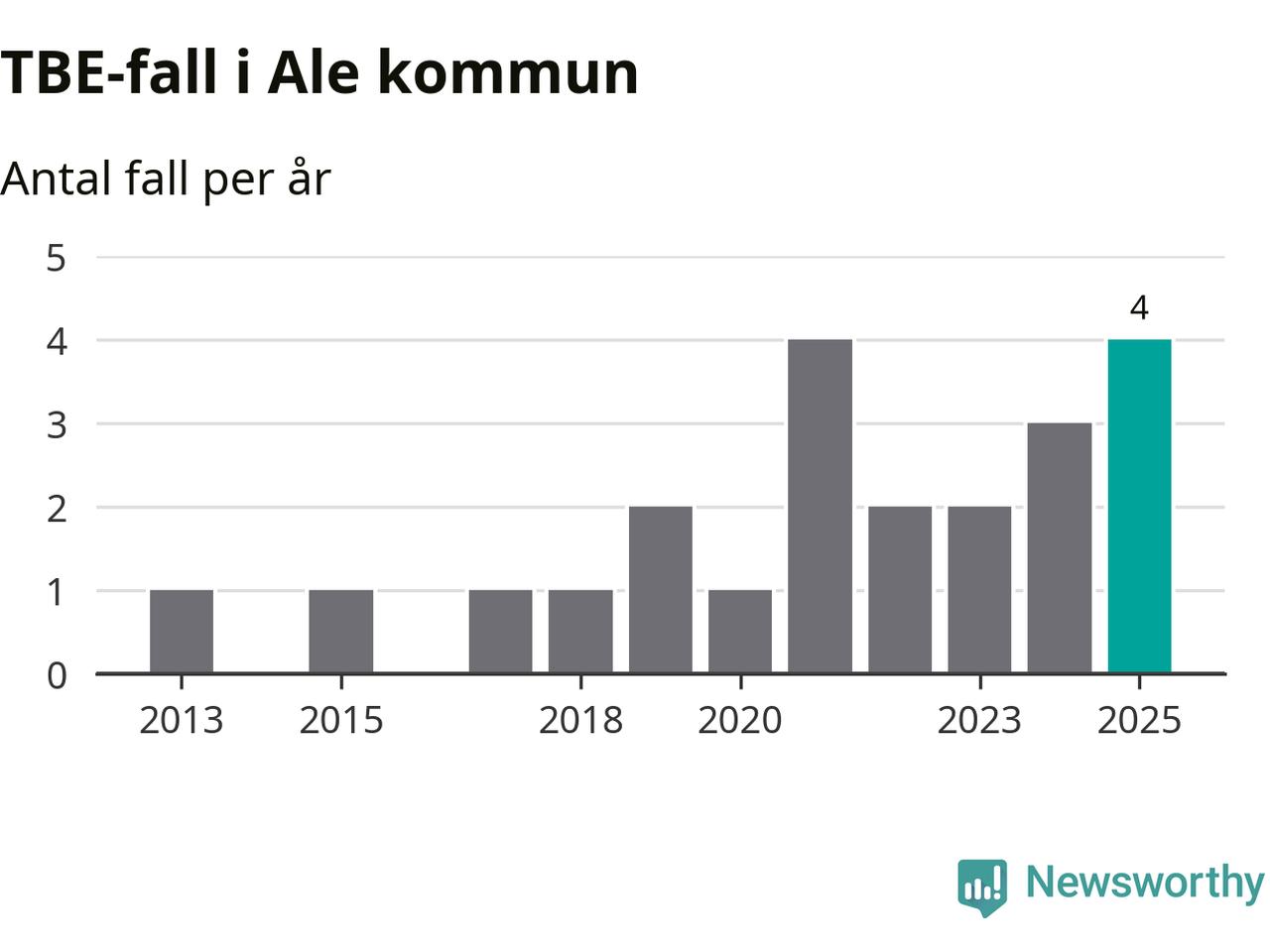I Ale kommun rapporterades totalt fyra smittfall. Det är den högsta siffran sedan 2021, då samma antal fall rapporterades i kommunen.