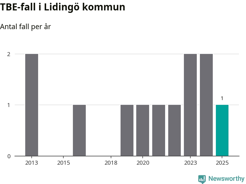 I Lidingö kommun rapporterades totalt ett smittfall. Det är en minskning sedan året innan då sjukdomssiffran låg på två rapporterade fall.